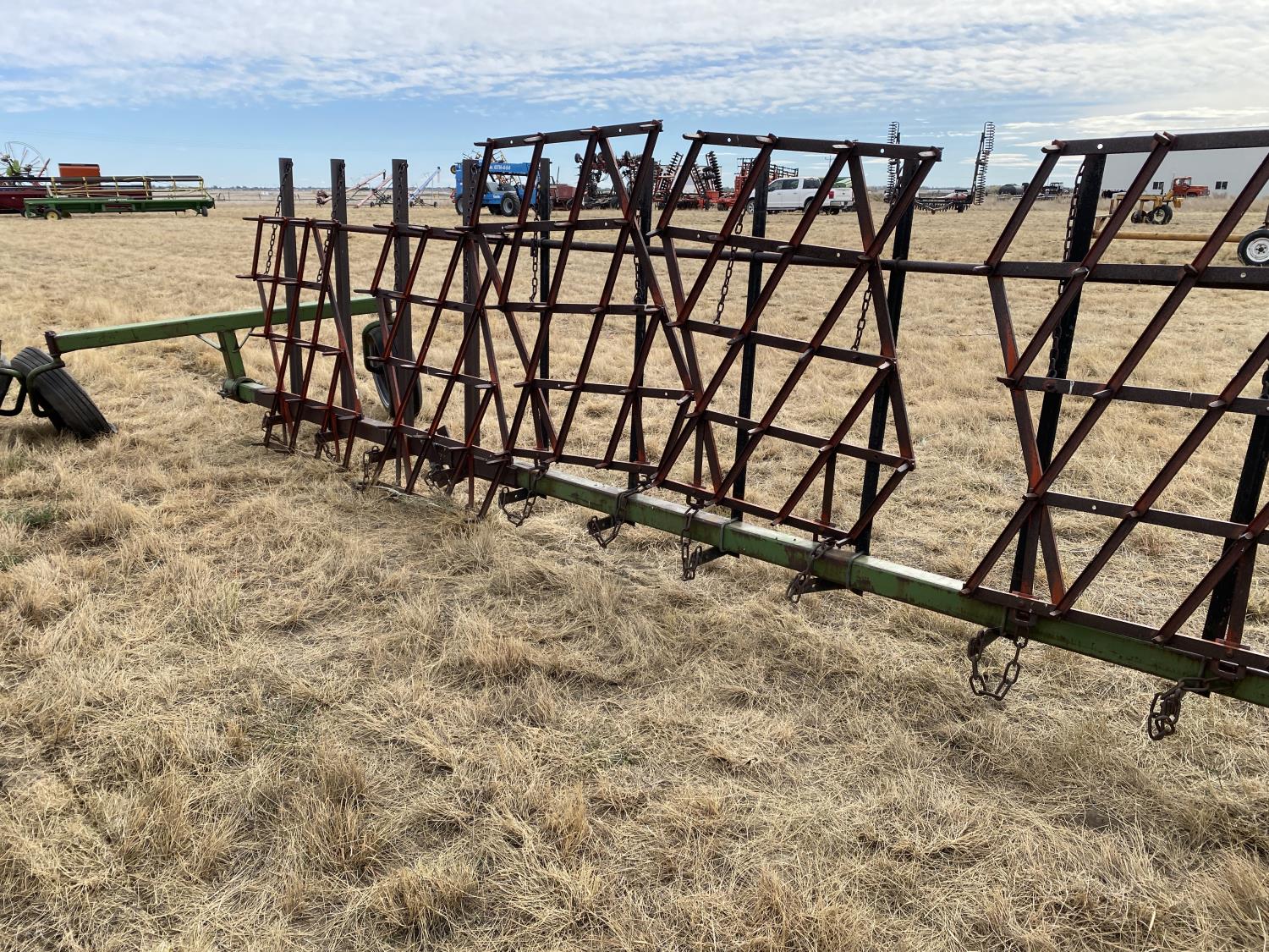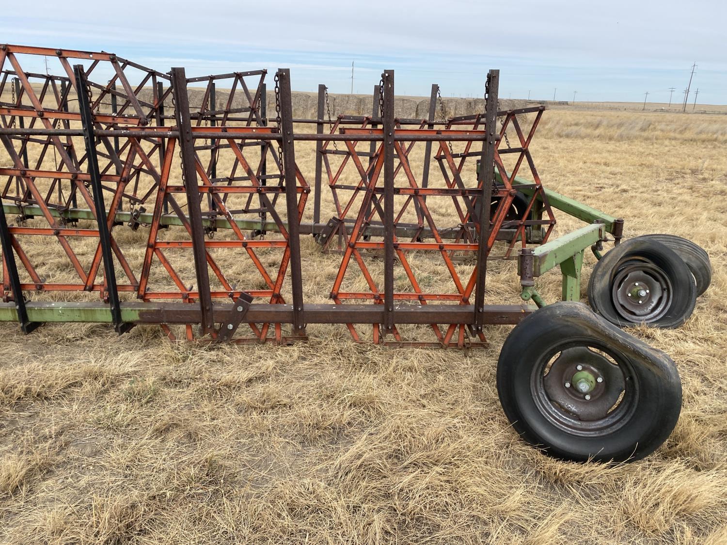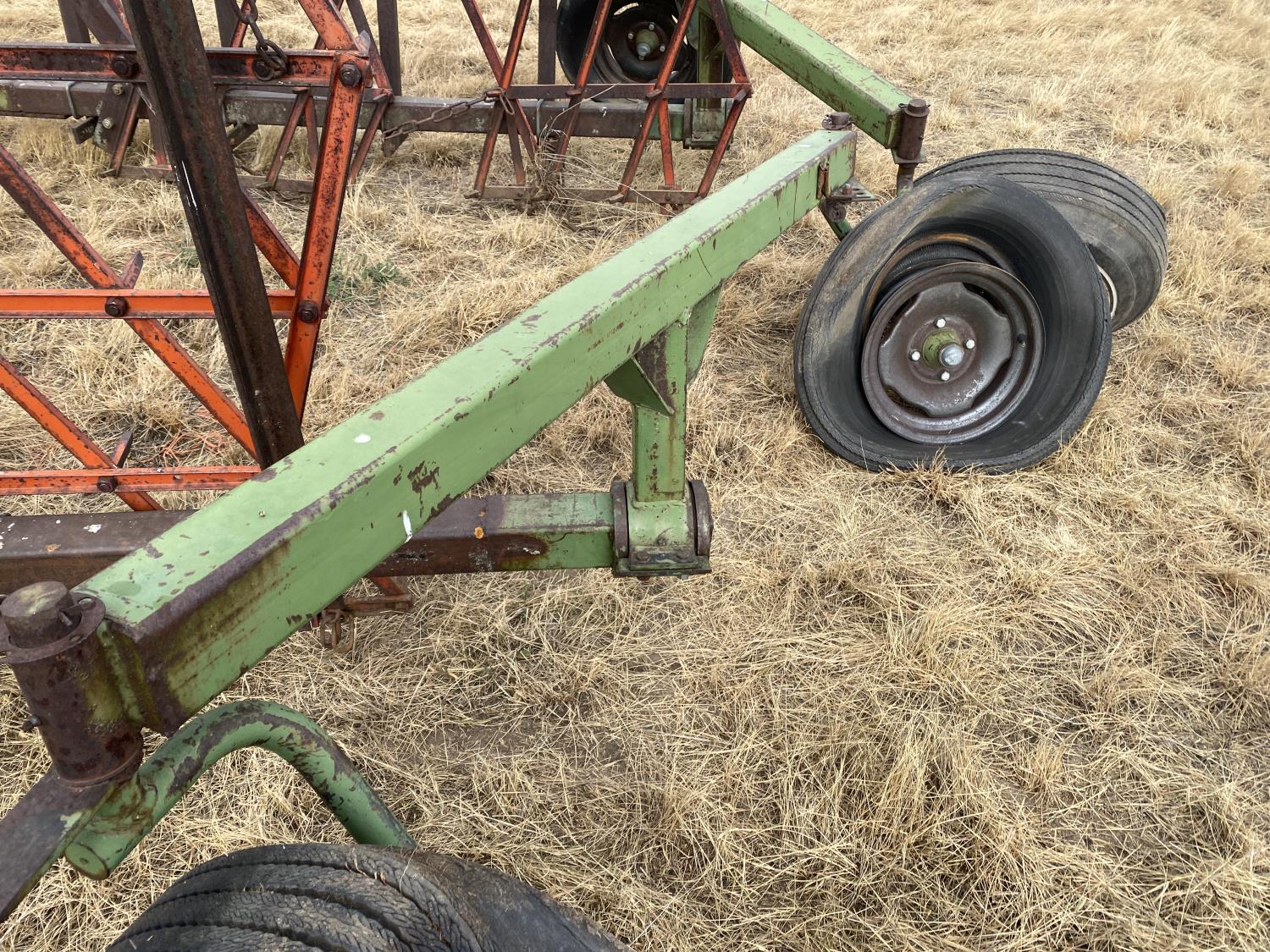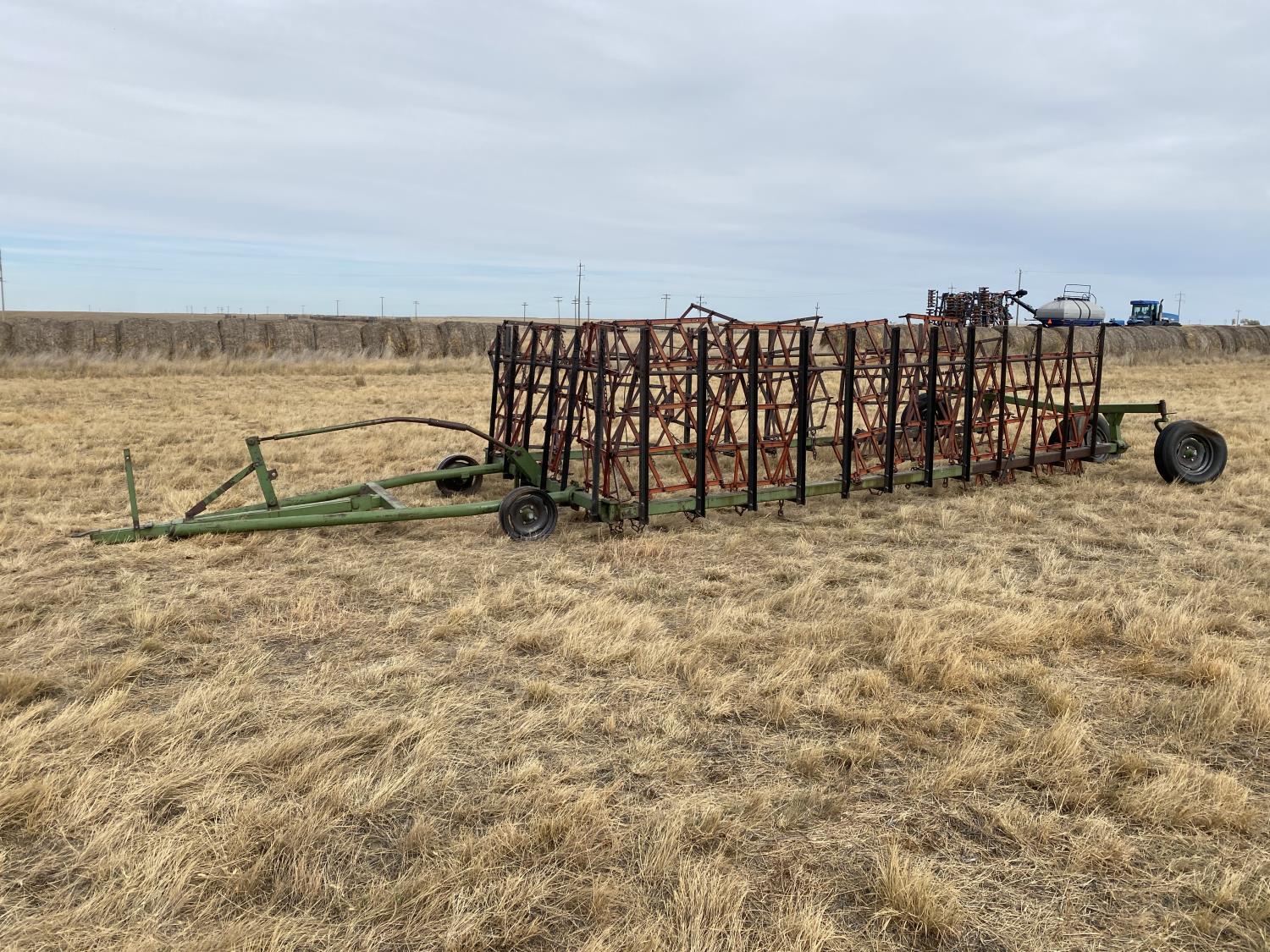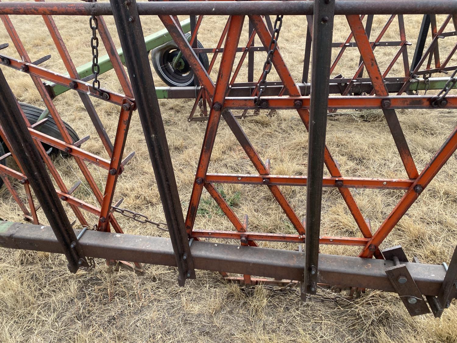 5 bars, 1 inch tine diameter, 5 inch tine length, manual tine adjustment, 3 Ft diamond harrows, 9.55-15 tires