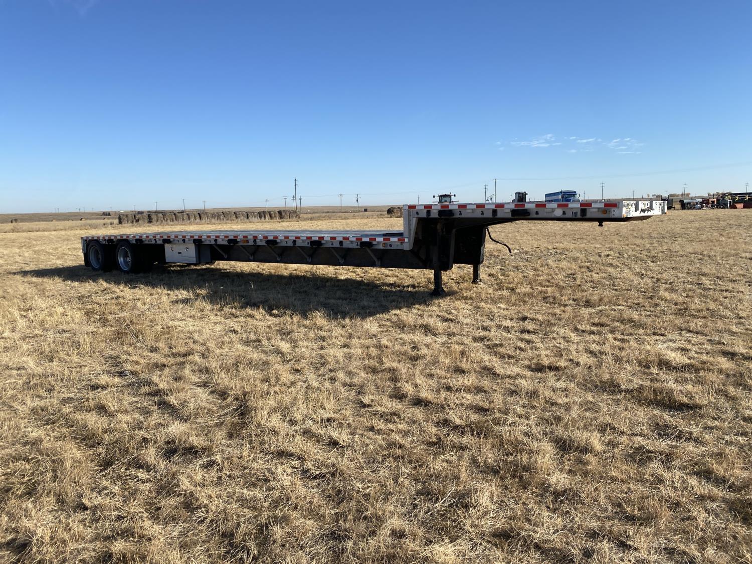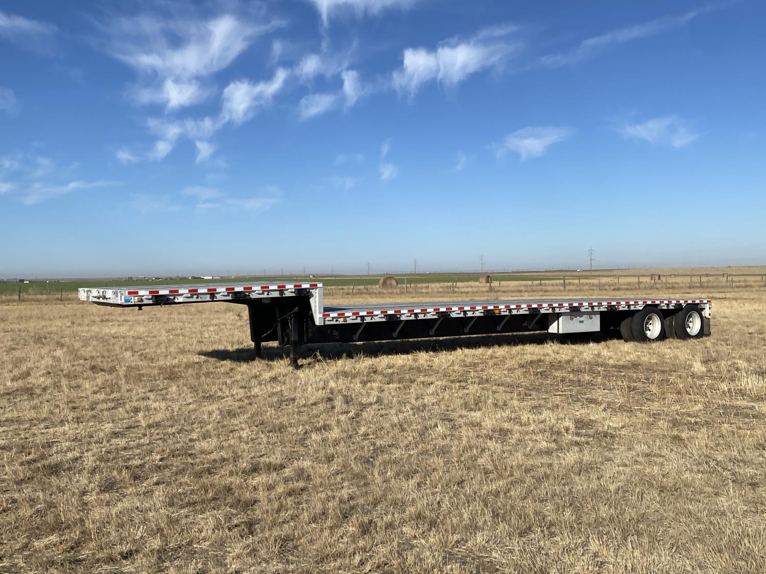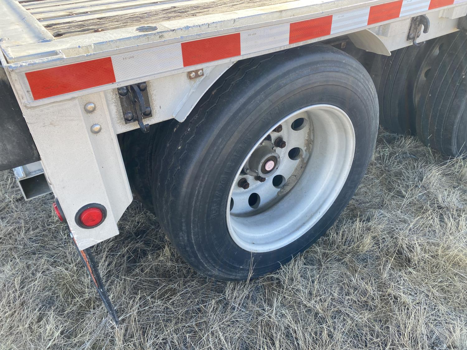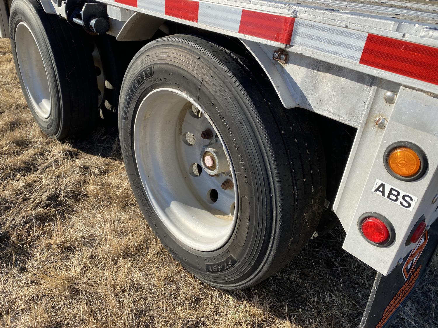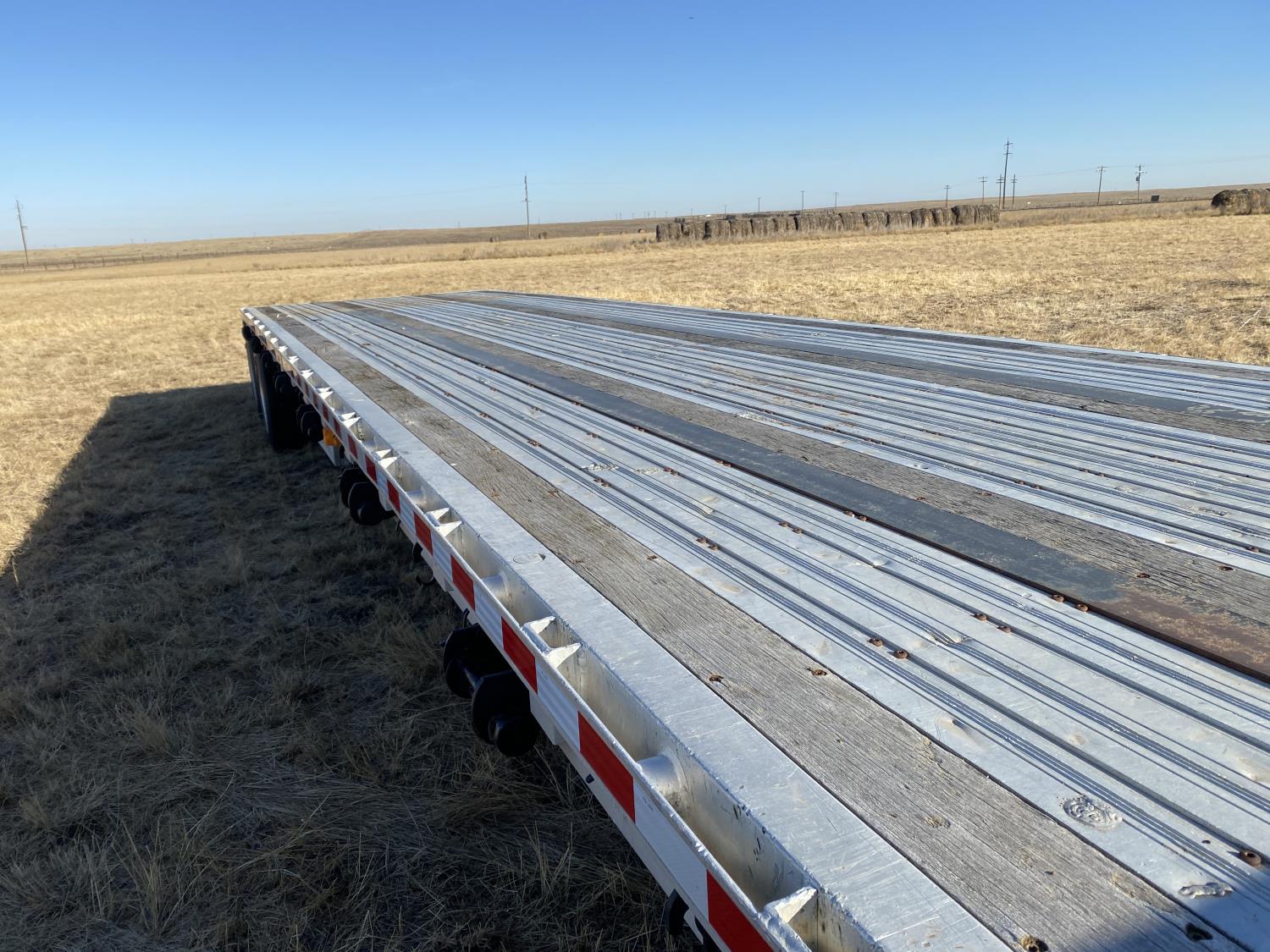102 inch wide deck, 134 inch upper deck, aluminum deck, stake pockets, rub rails, cargo winches, tool / storage box, air brakes, air ride suspension, all aluminum wheels, 255/70R22.5 tires