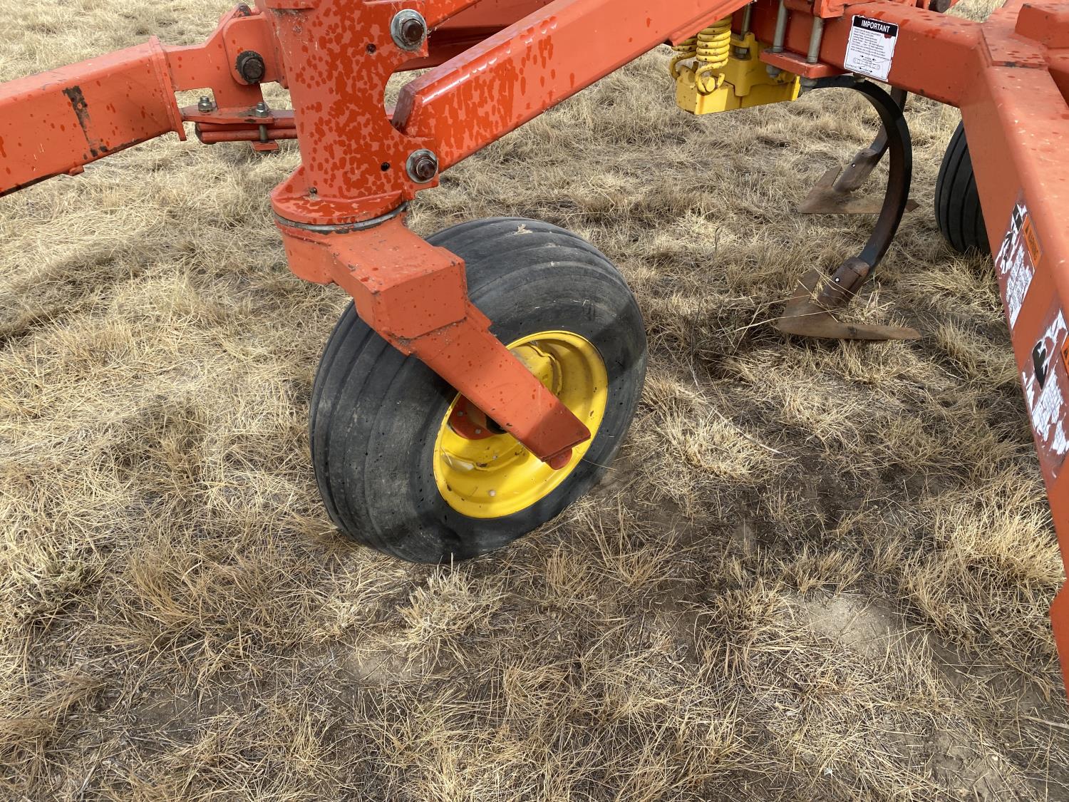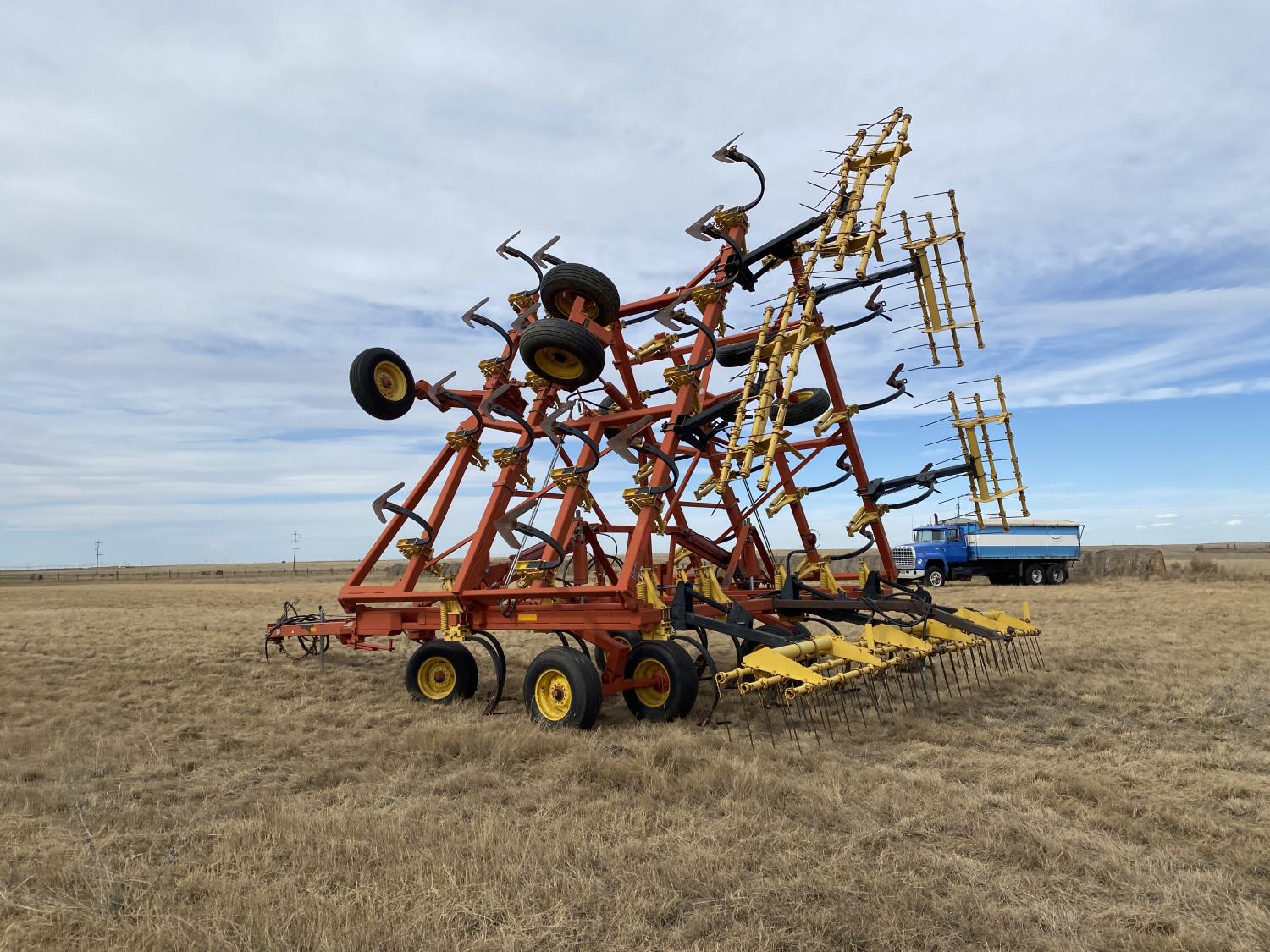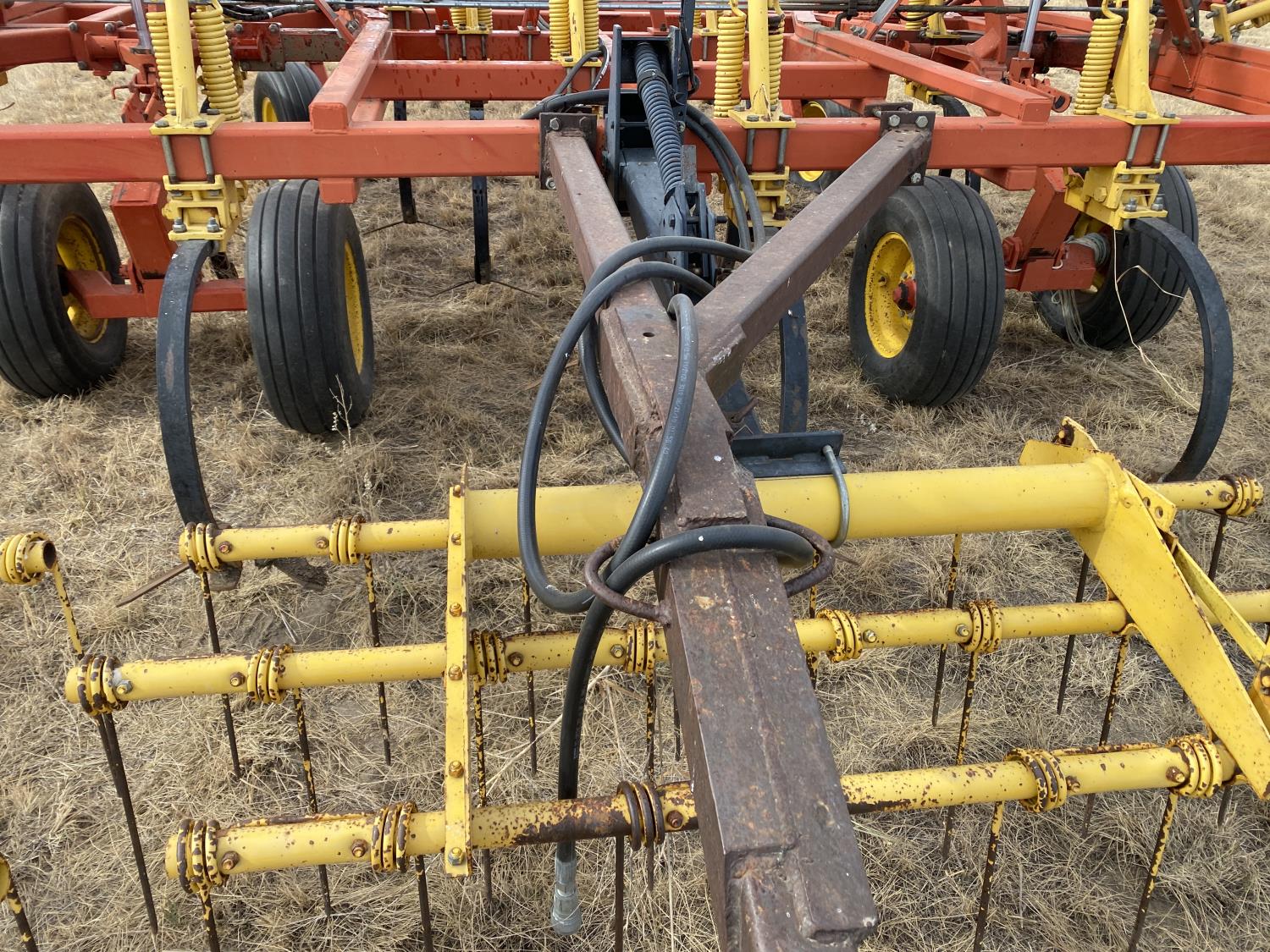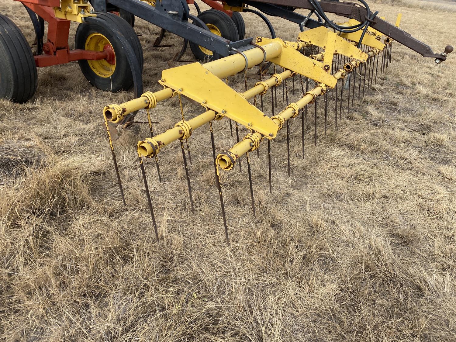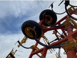 12 inch spacing, 24 inch sweeps, spring tooth harrows, rear hitch, 11L-25 tires