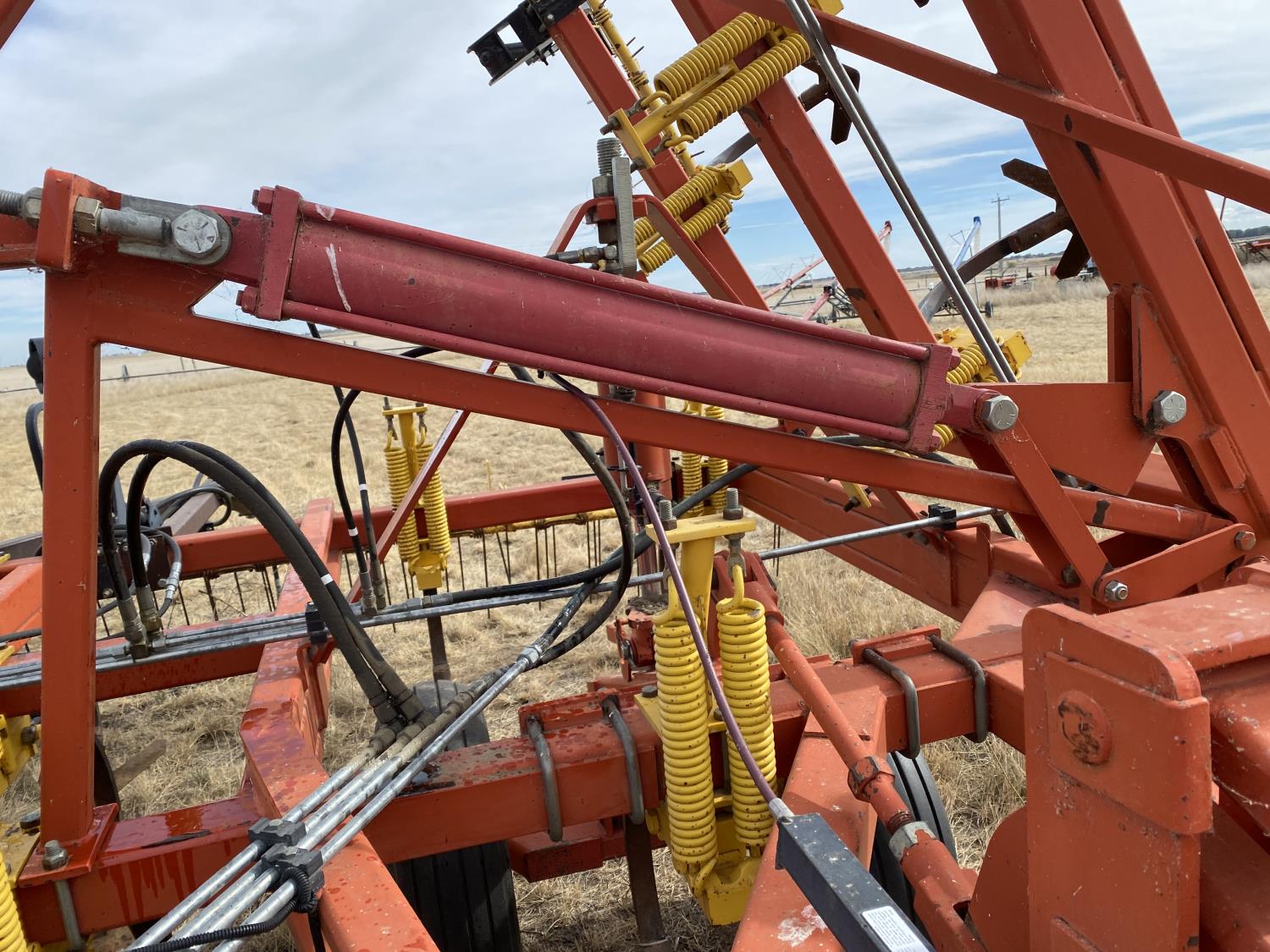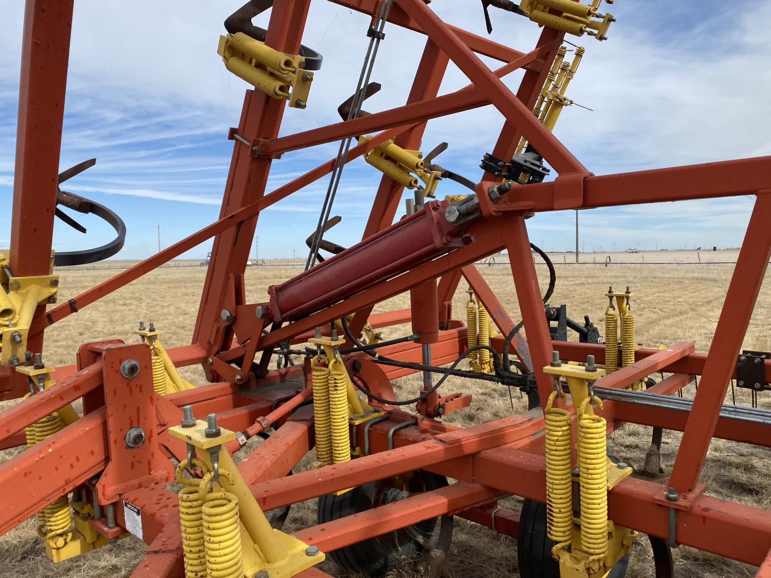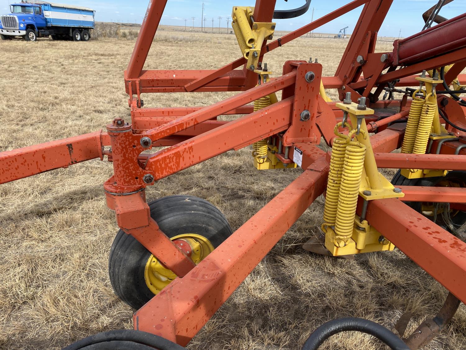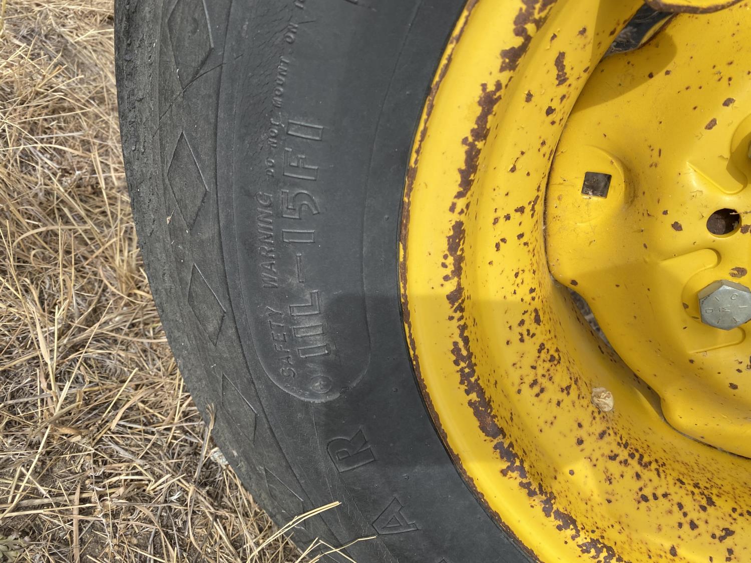 12 inch spacing, 24 inch sweeps, spring tooth harrows, rear hitch, 11L-25 tires