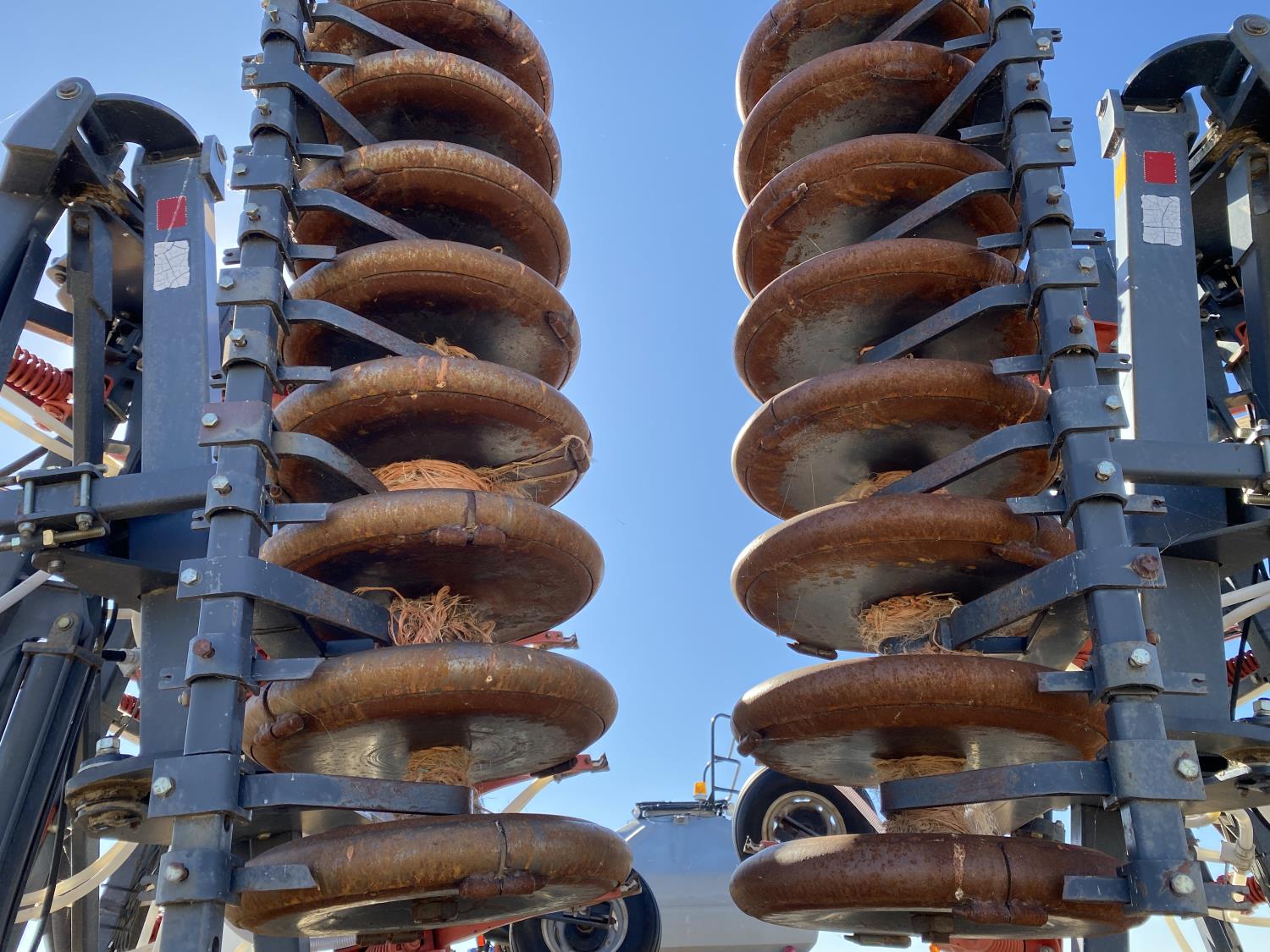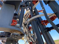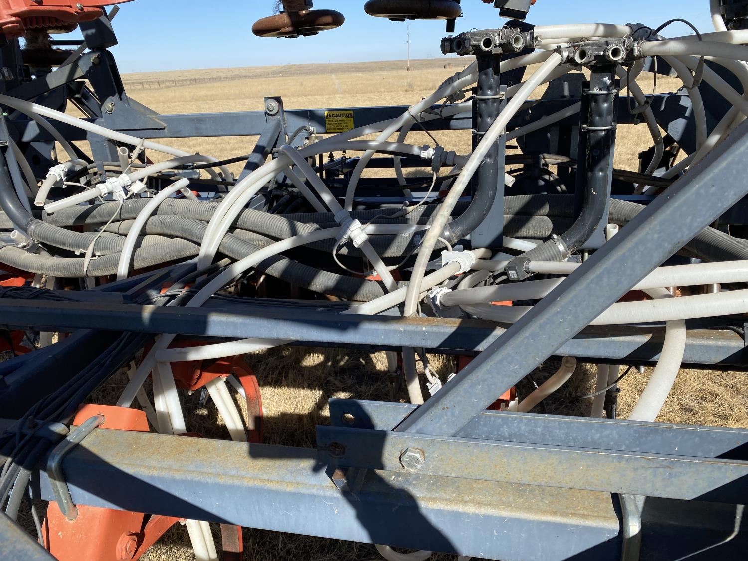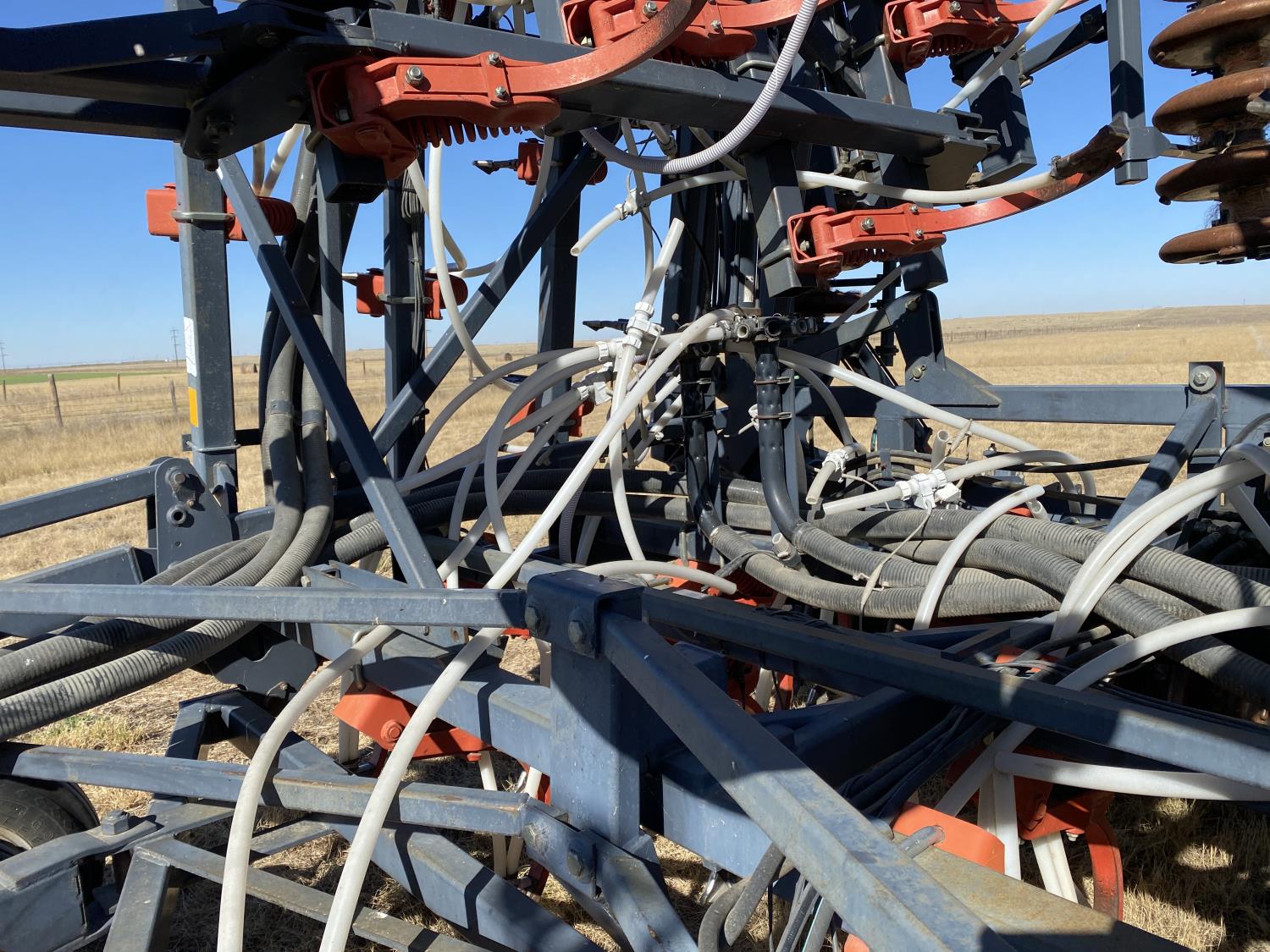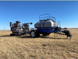 10 inch spacing, double shoot openers, 4 inch steel packers, Air Cart: 3 compartments, 8 inch loading auger, single fan, variable rate metering, 3 tank cameras, dual 18.4-38 rear tires