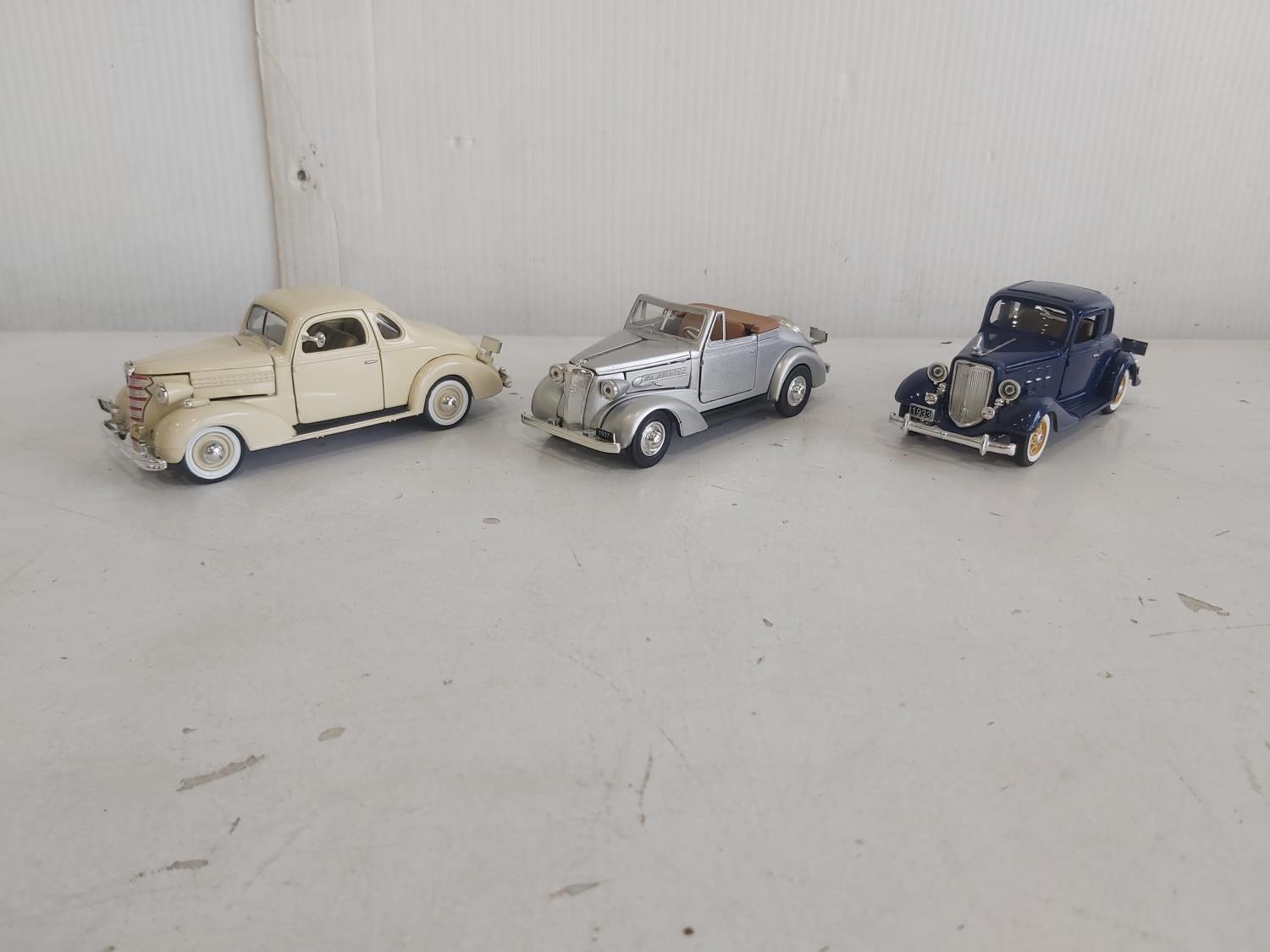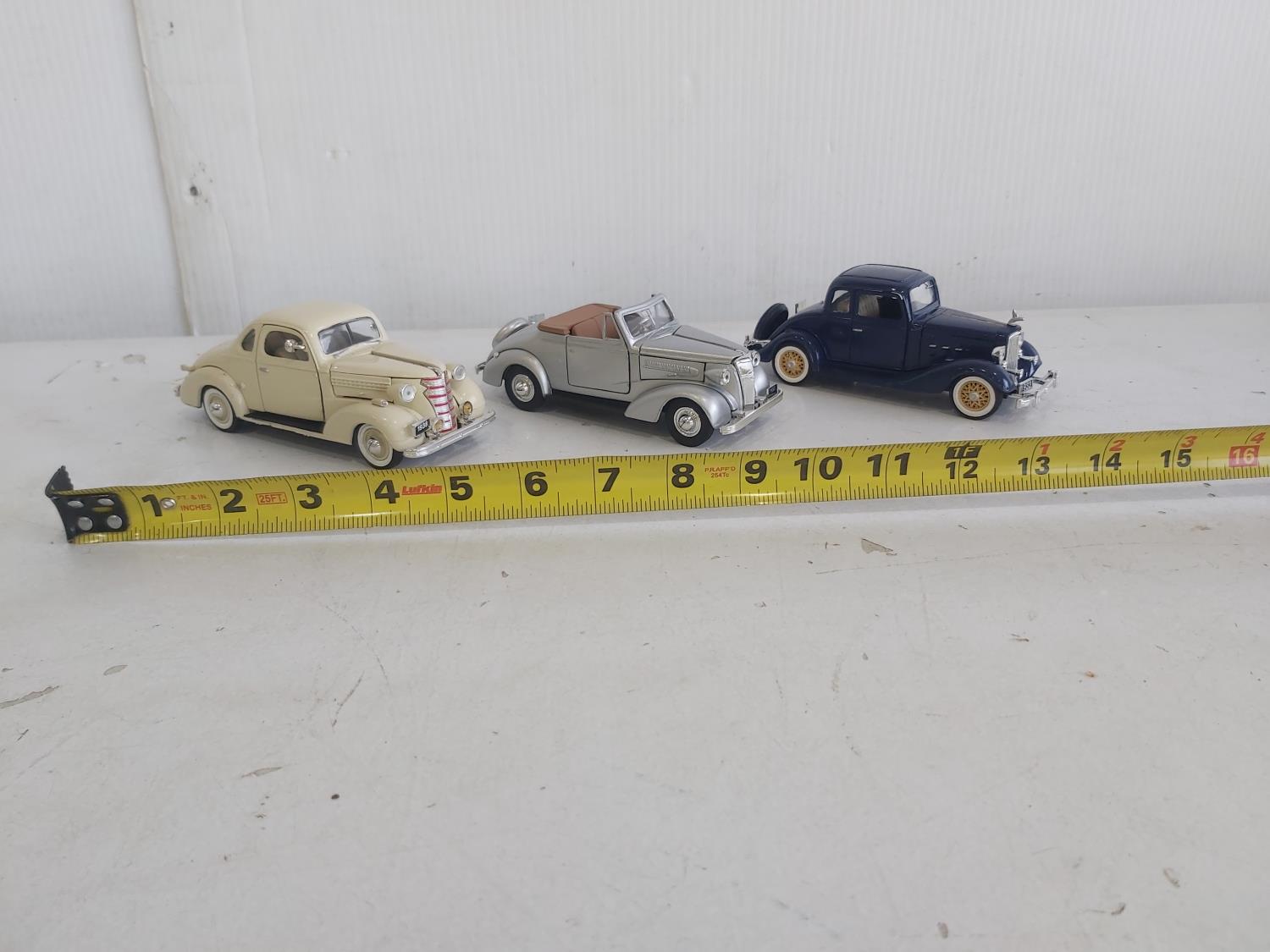 scale unknown, 1938 Chev Master deluxe Business coupe, 1937 Chev Cabriolet, 1933 Chev Eagle