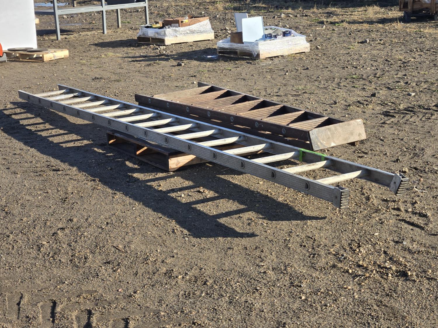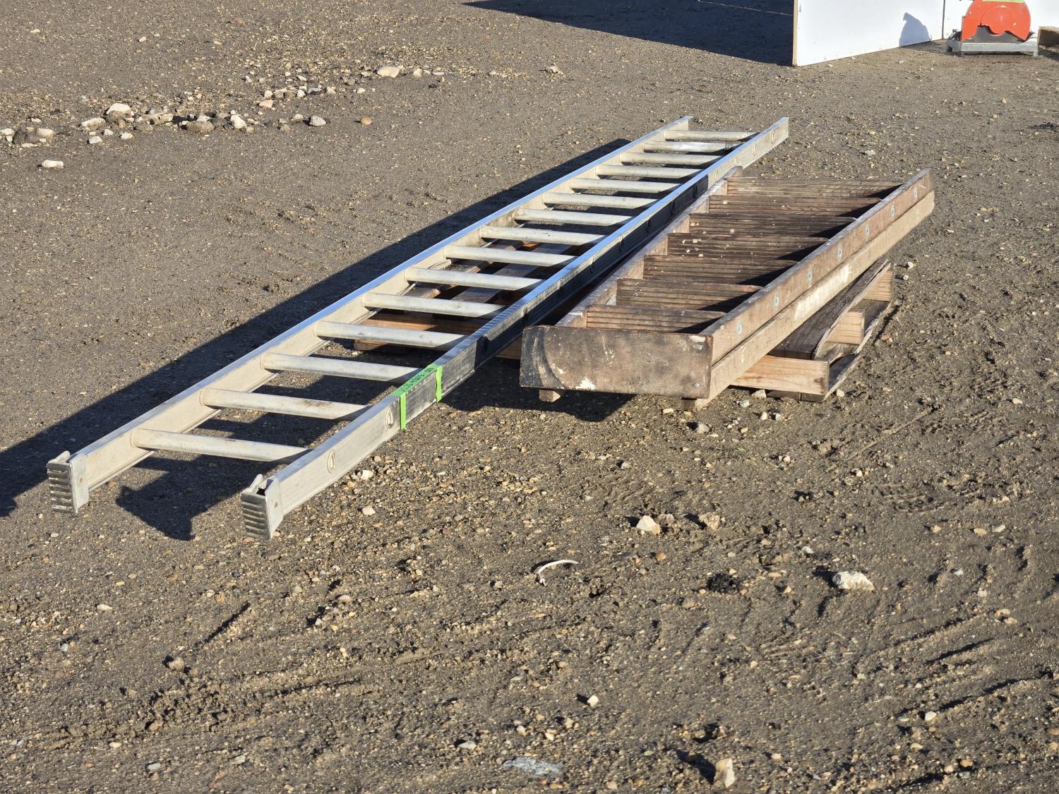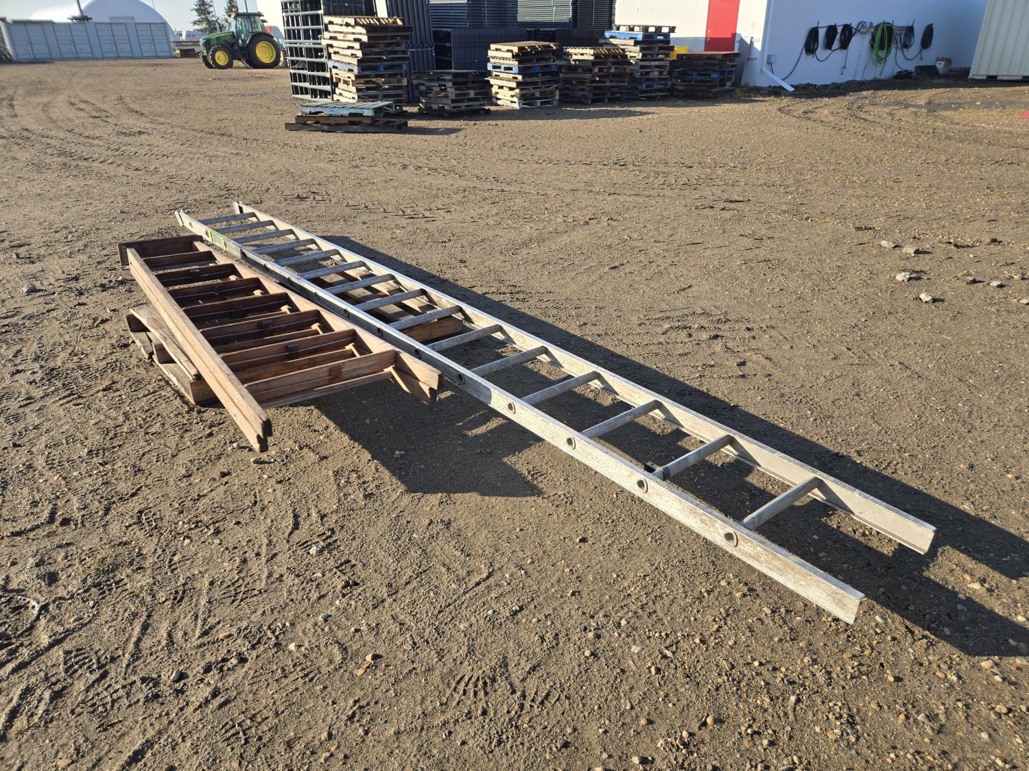 7360 (1) 16 Ft Aluminum Ladder, (1) 8 Ft Wooden Step Ladder