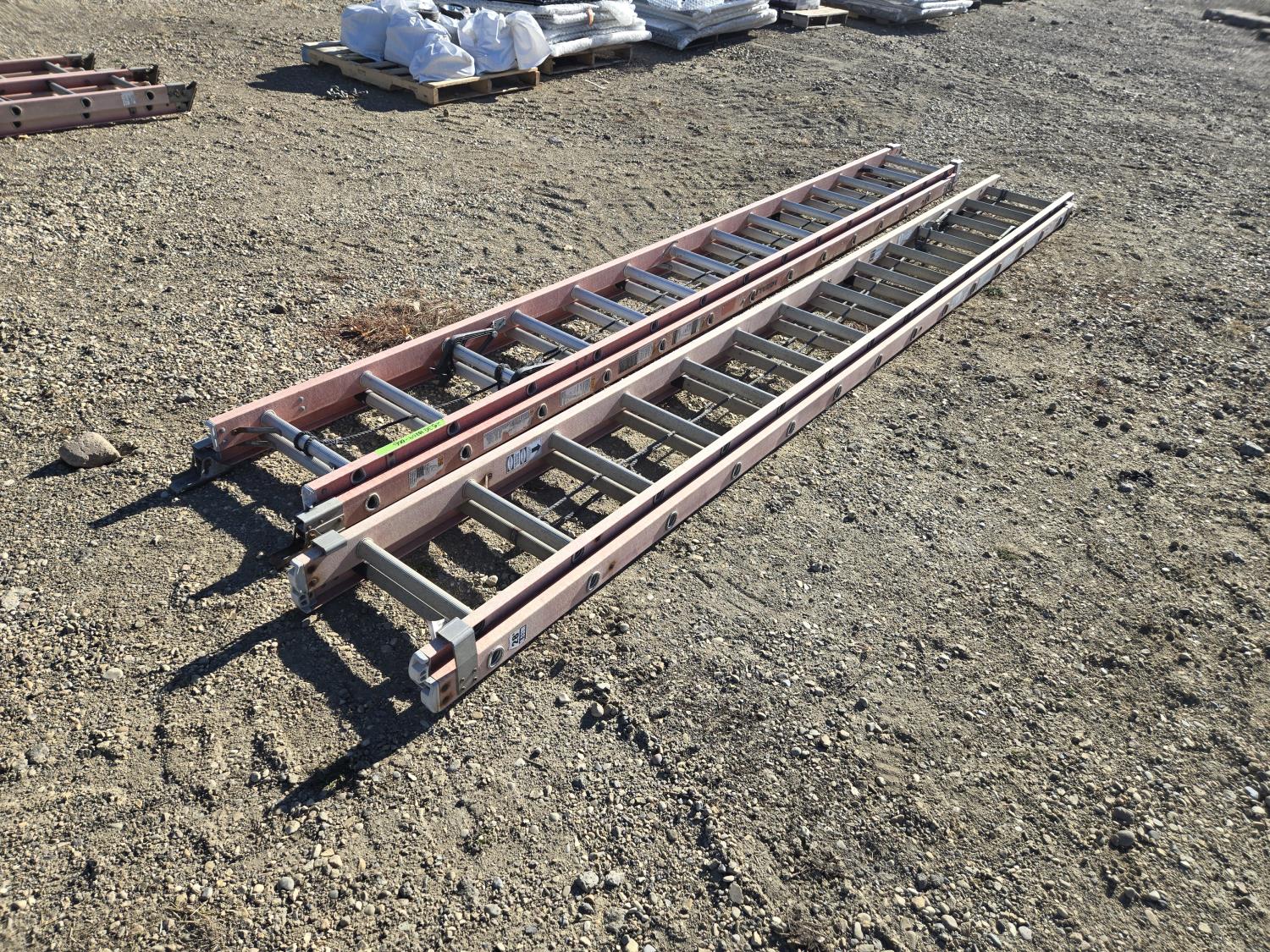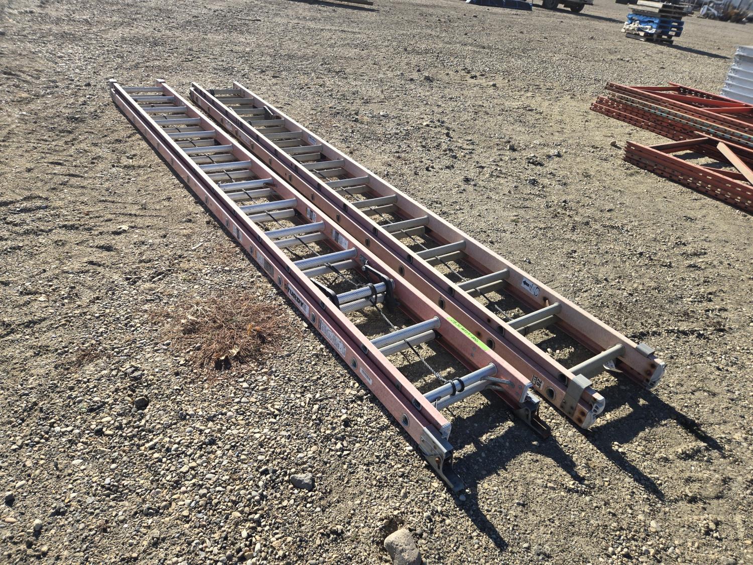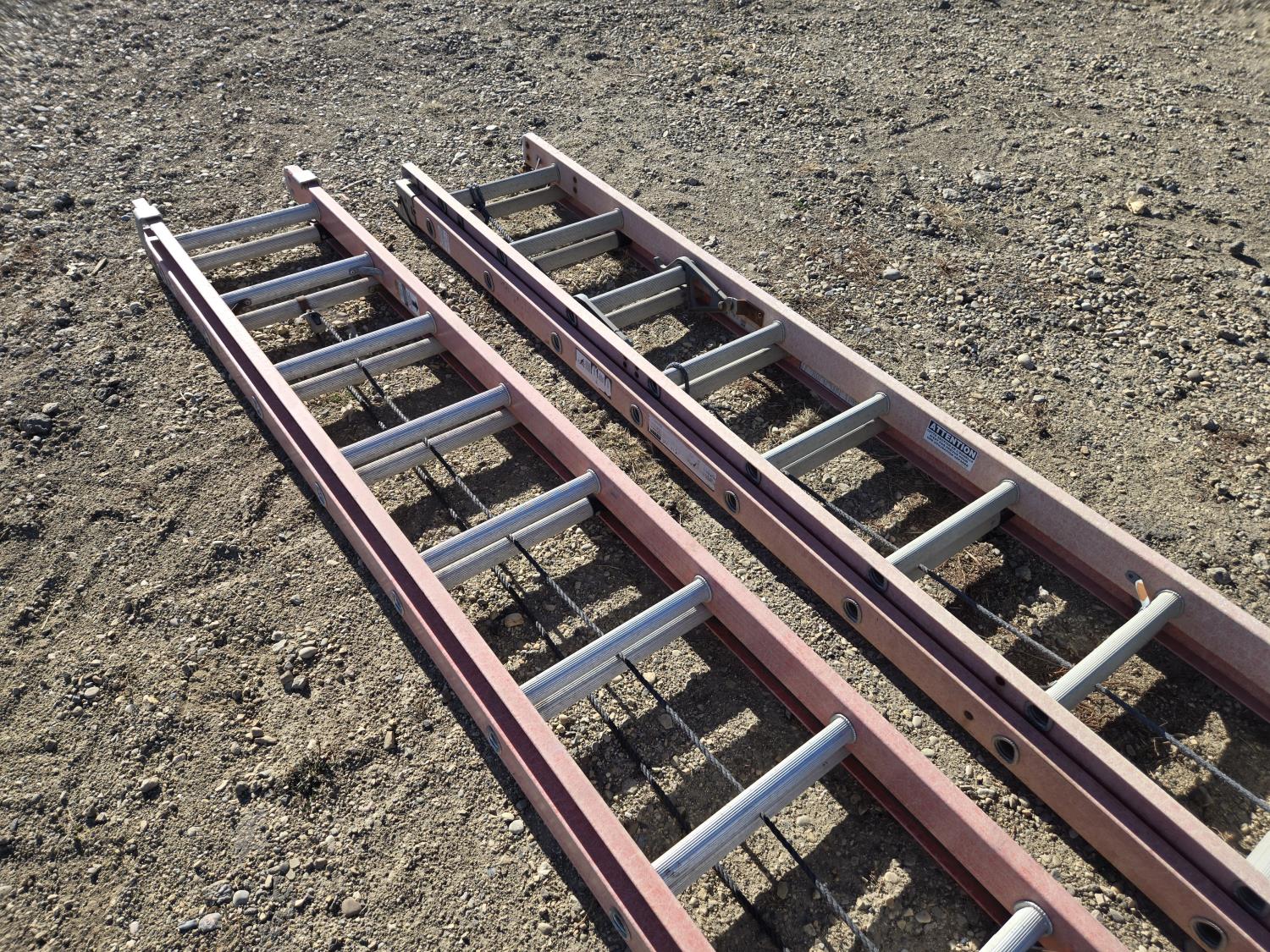 7305 (2) Sturdy 28 Ft Fiberglass Extension Ladders