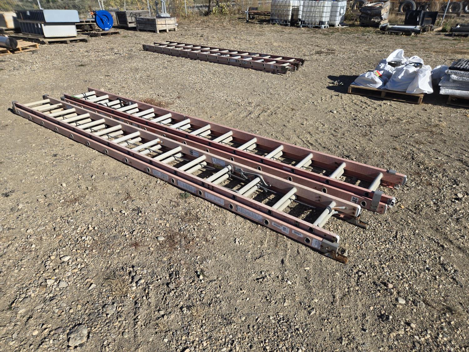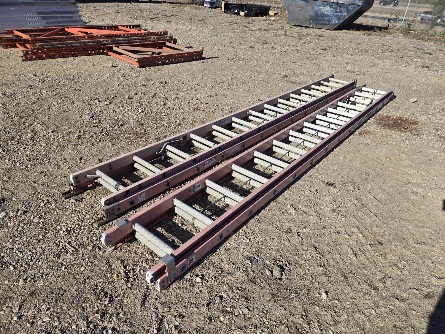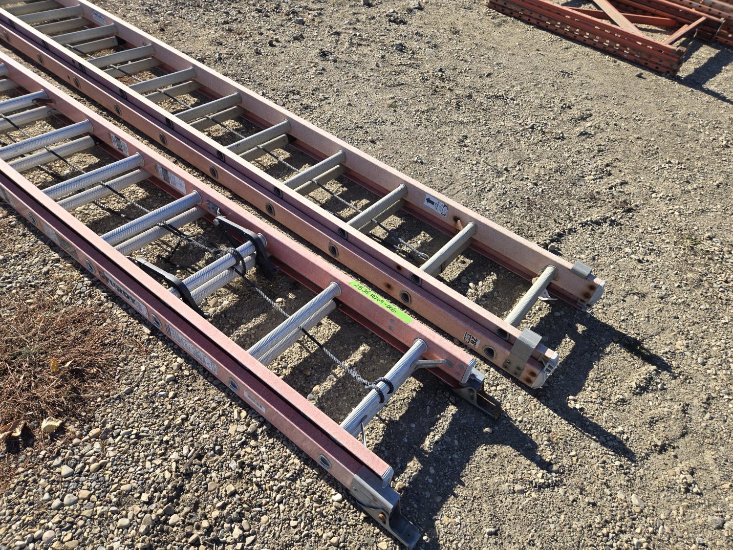 7305 (2) Sturdy 28 Ft Fiberglass Extension Ladders