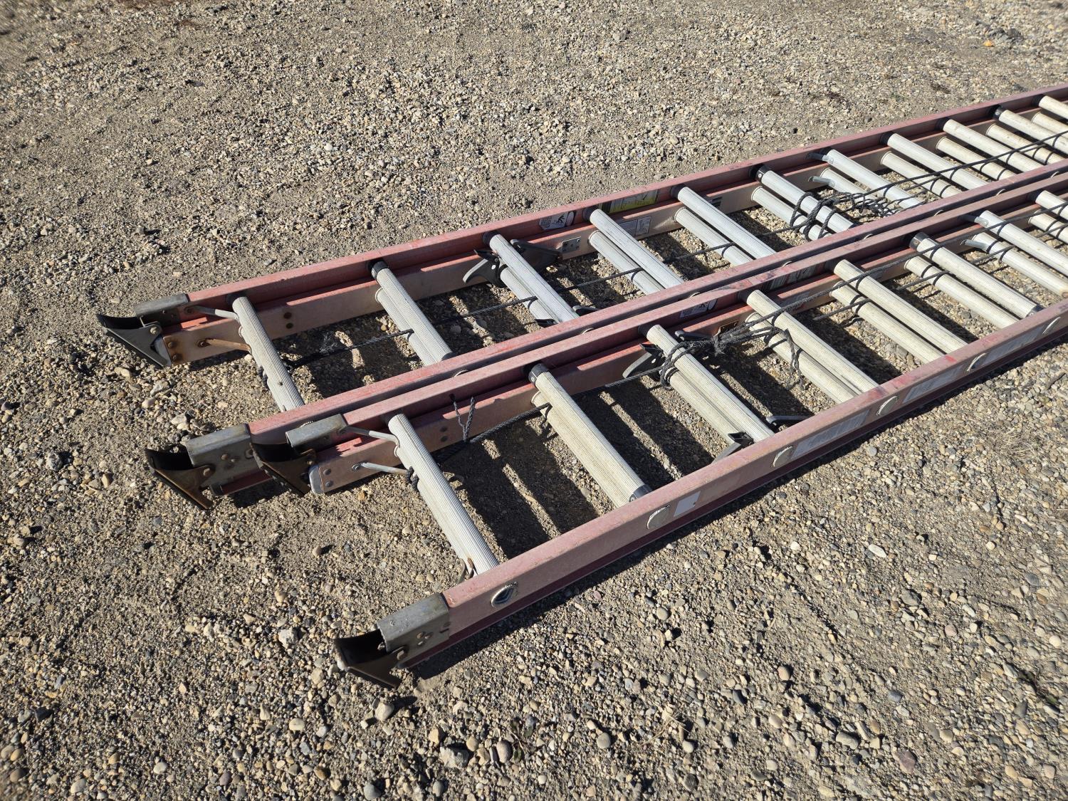 7304 (2) Sturdy 28 Ft Fiberglass Extension Ladders