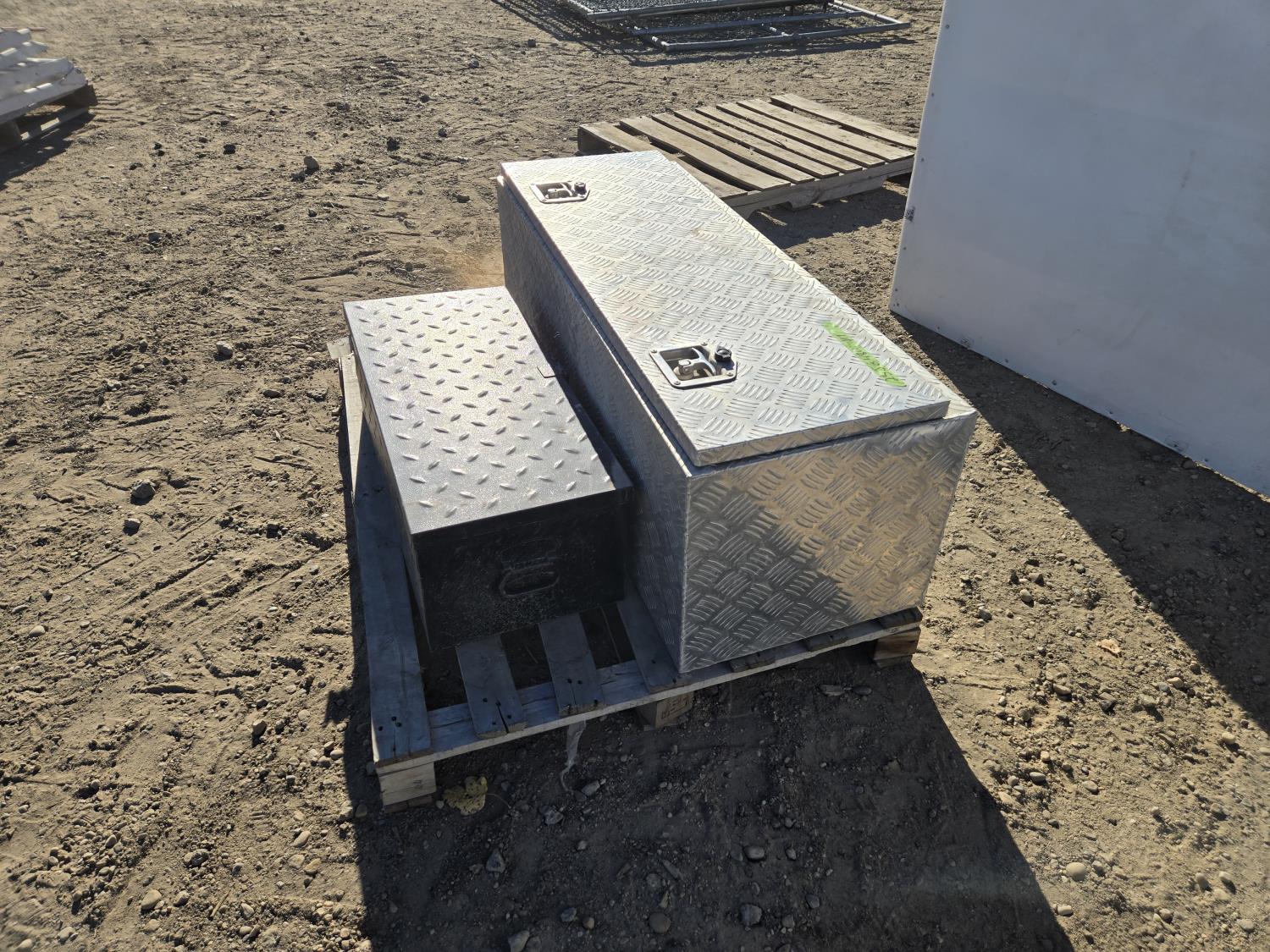 (1) aluminum 48 inch wide X 18 inch high X 17 inch deep, (1) metal 30 inch wide X 13 inch deep X 10 inch high