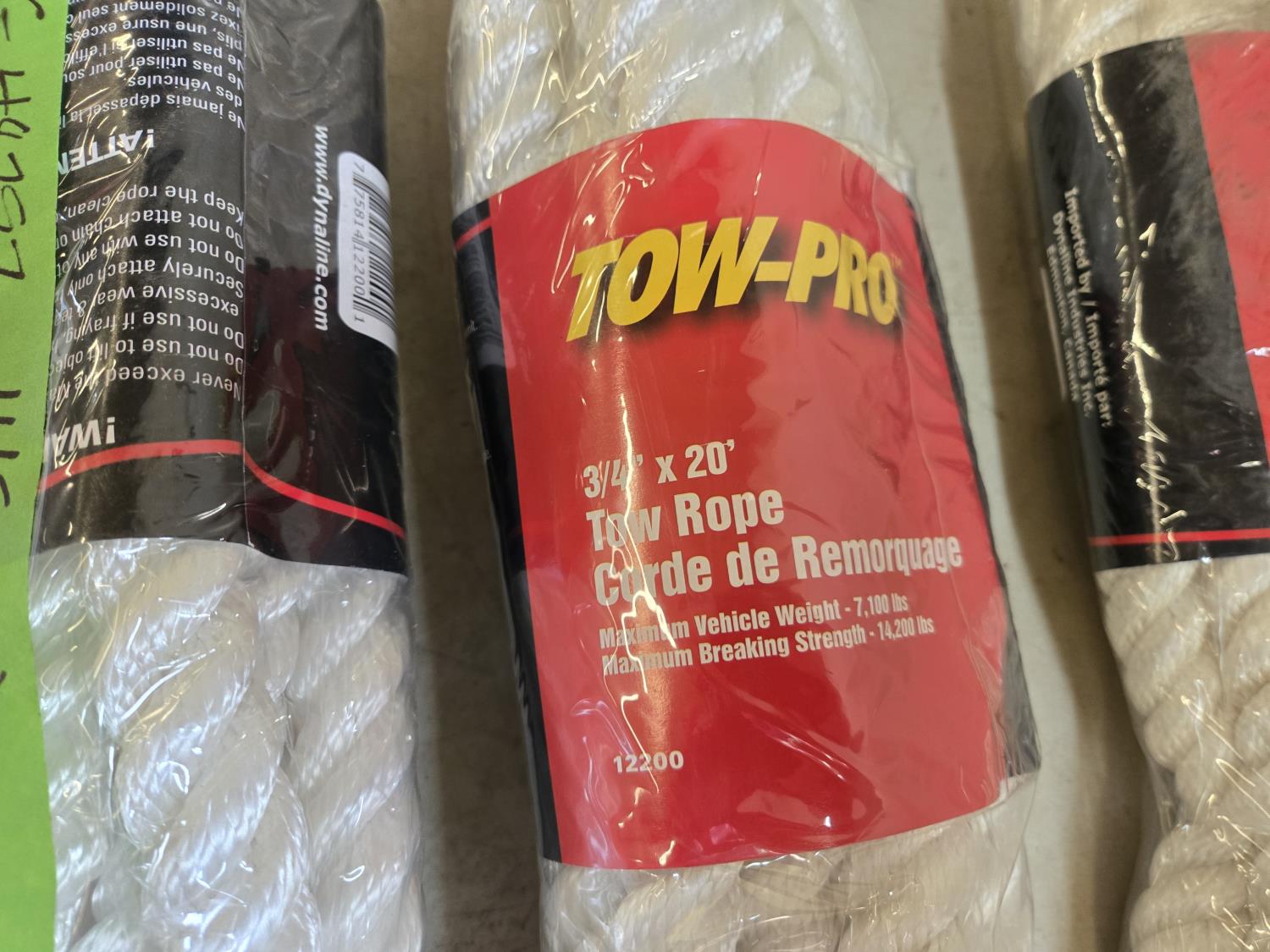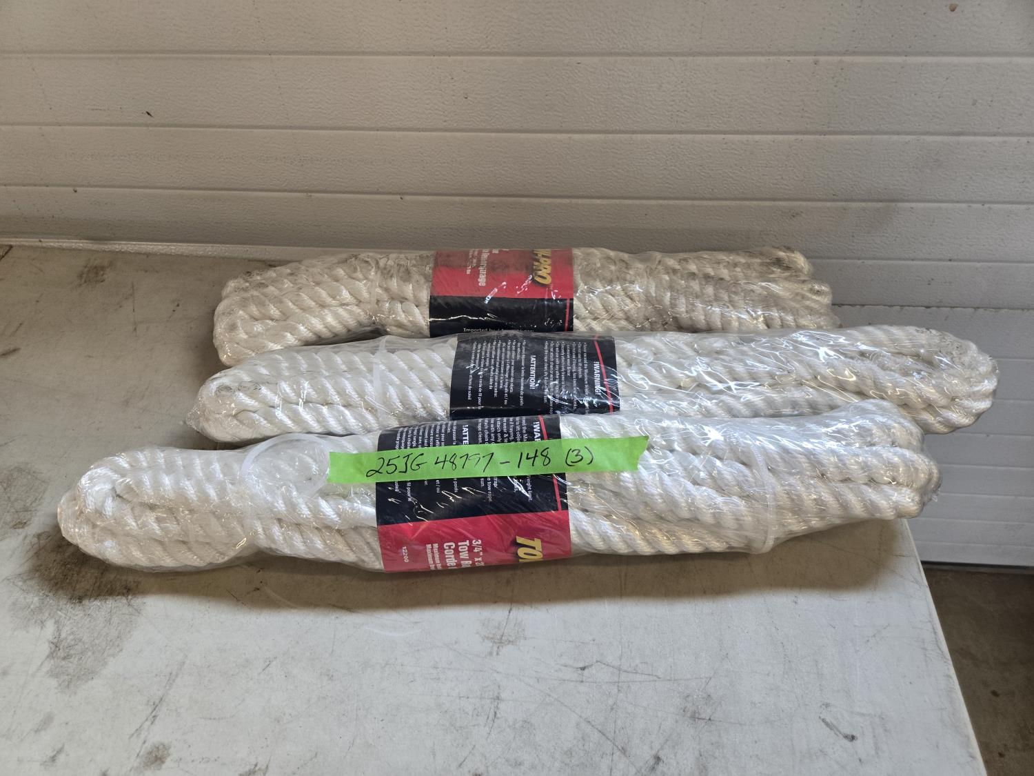 7019 (3) 3/4 Inch X 20 Ft Tow Rope (Unused)