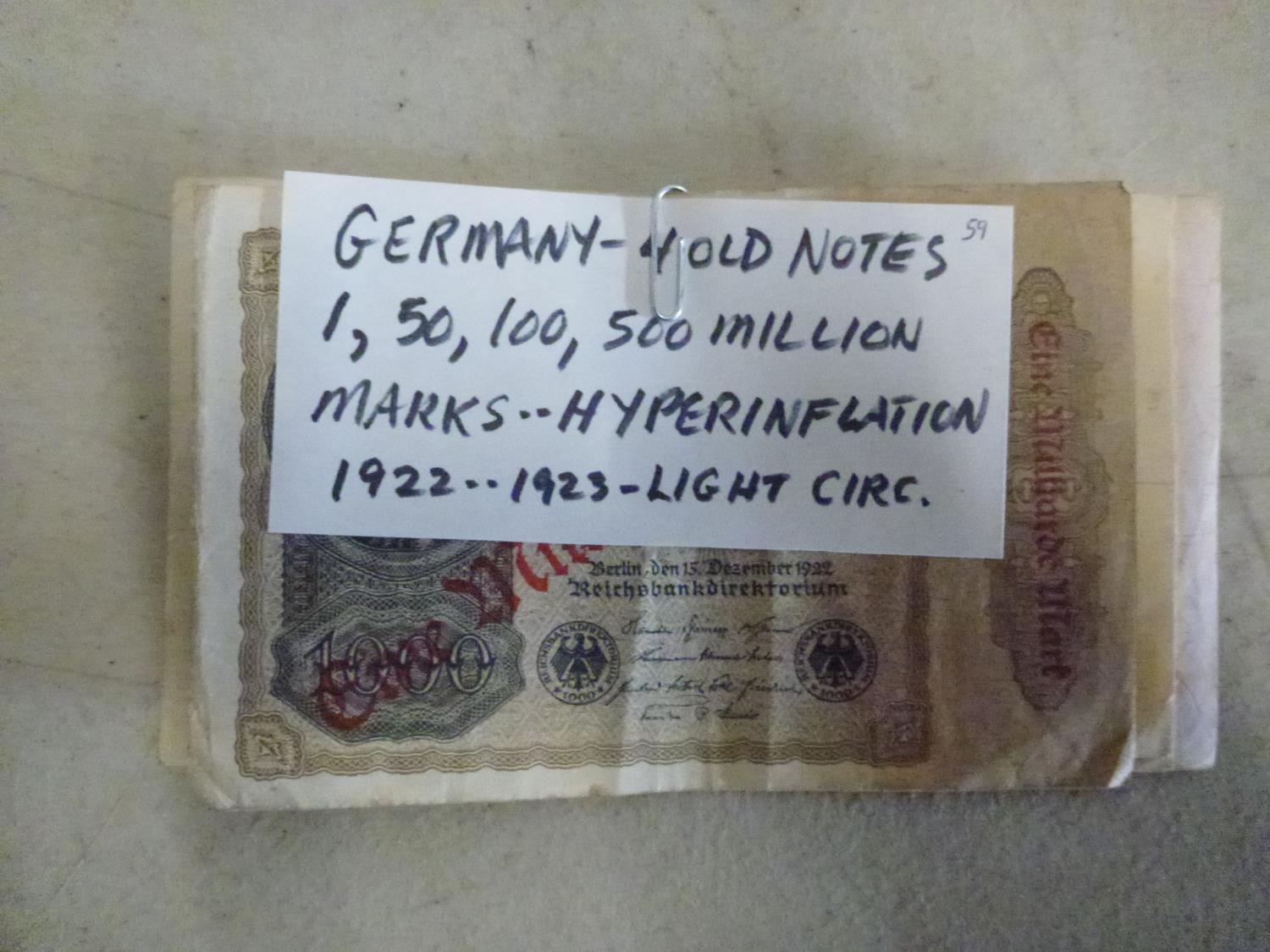 1, 50, 100, 500 million marks, hyperinflation, 1922-1923, light circulation