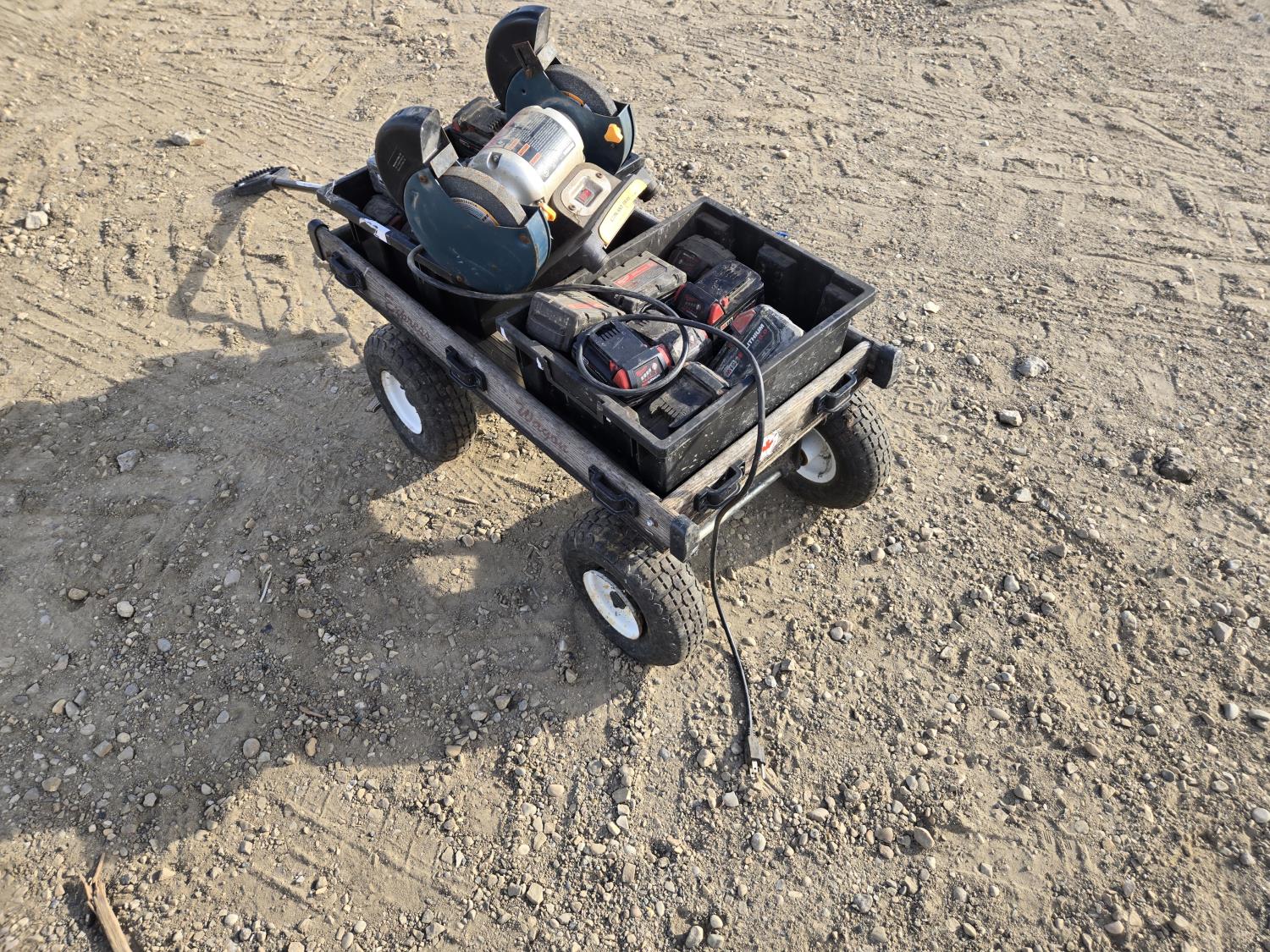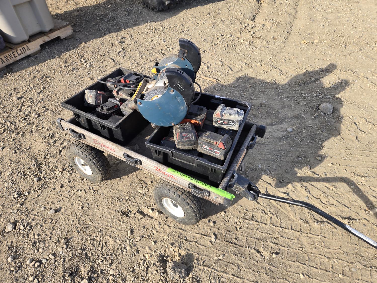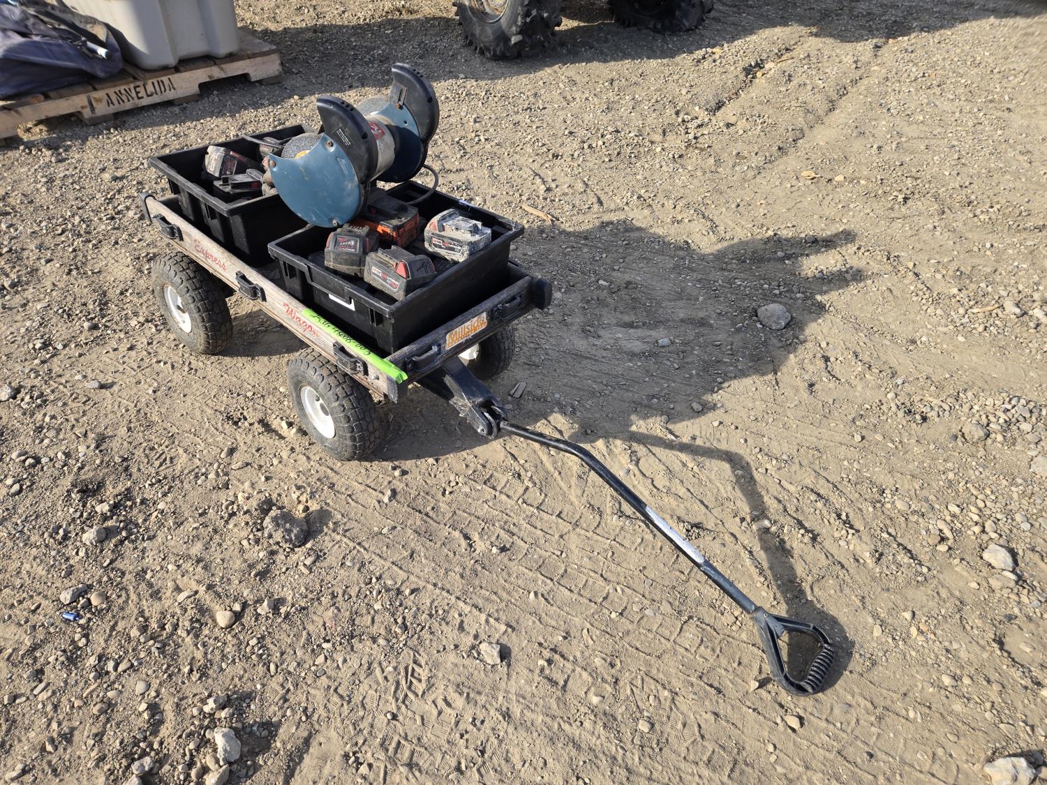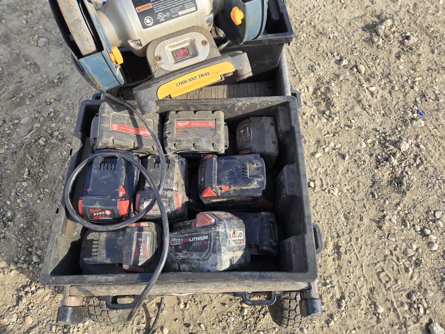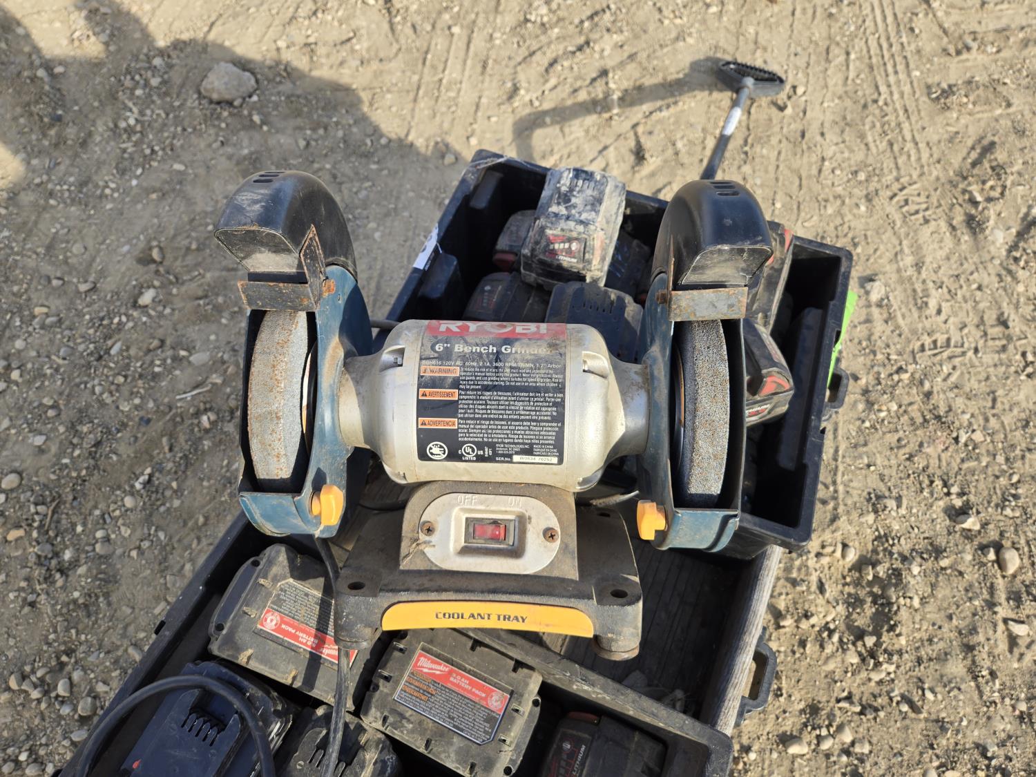 7283 Qty of 18V Milwaukee Batteries, L&G Wagon, 6 Inch Ryobi Bench Grinder
