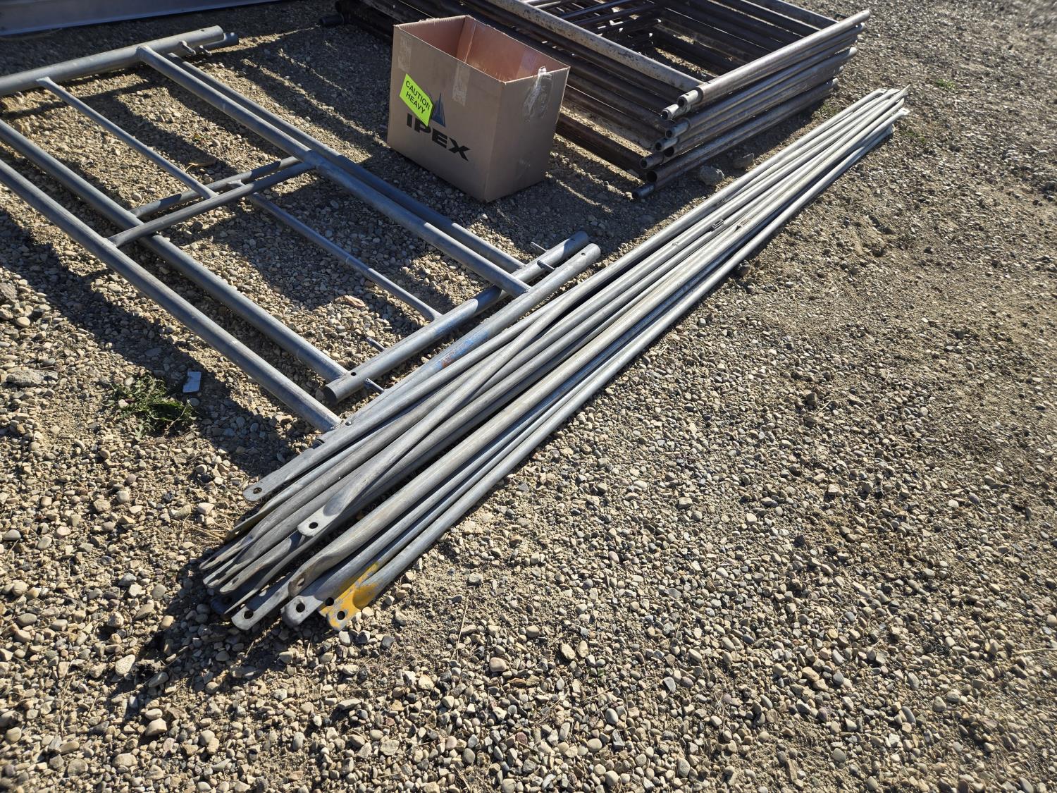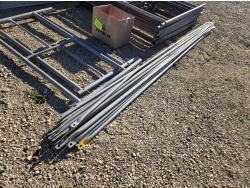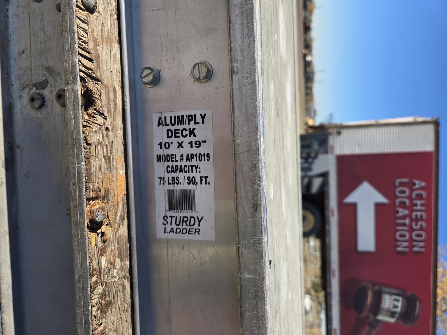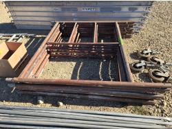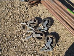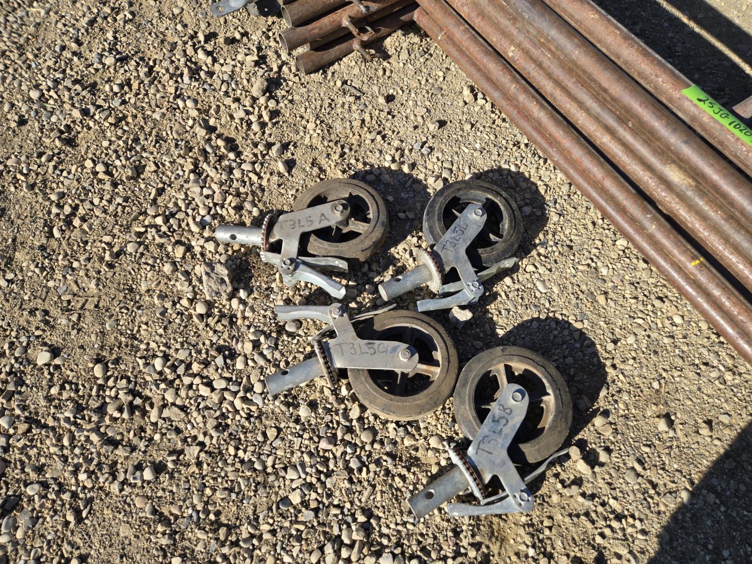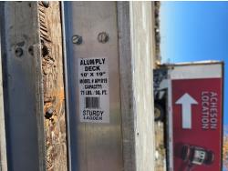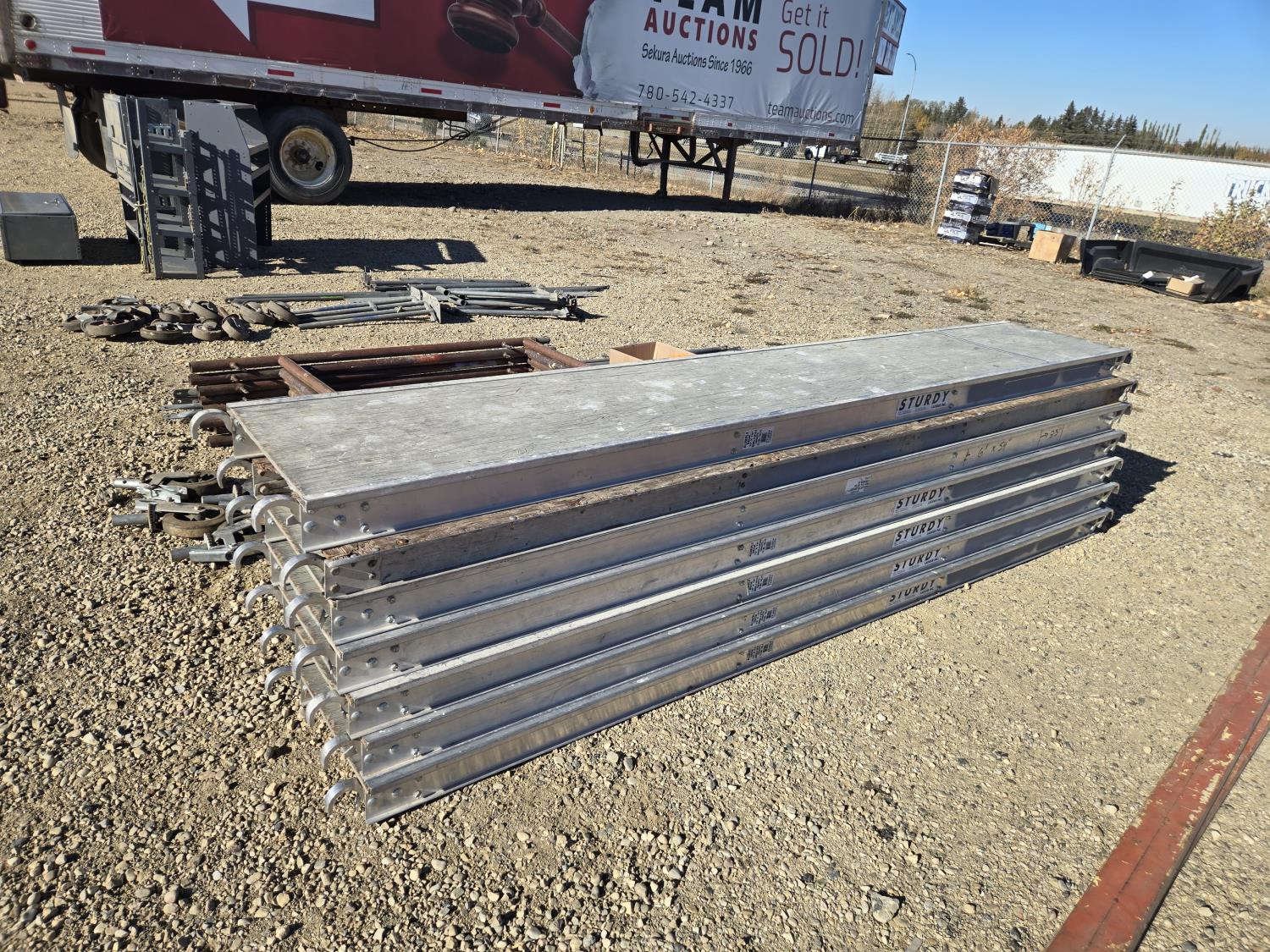 (4) casters, braces, (7) 10 ft aluminum scaffold planks, (8) 5 ft scaffold end frames, qty of connectors, (2) 3 ft scaffold end frames