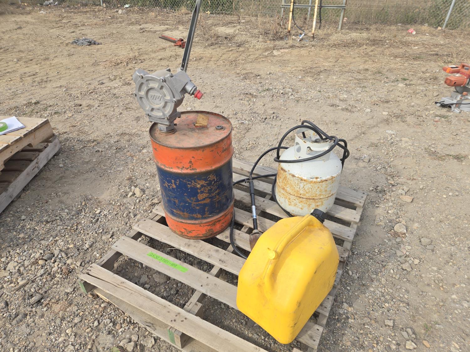 7310 Small Barrel with Manual Pump, 20L Jerry Can & Propane Bottle with Torch