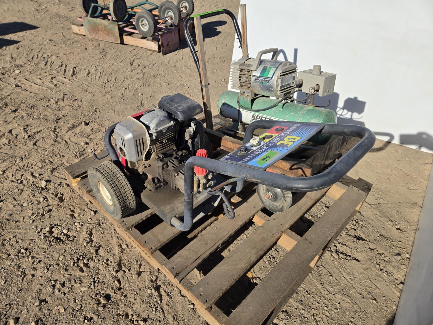 7427 Speedair Portable Air Compressor On Cart, Gas Pressure Washer