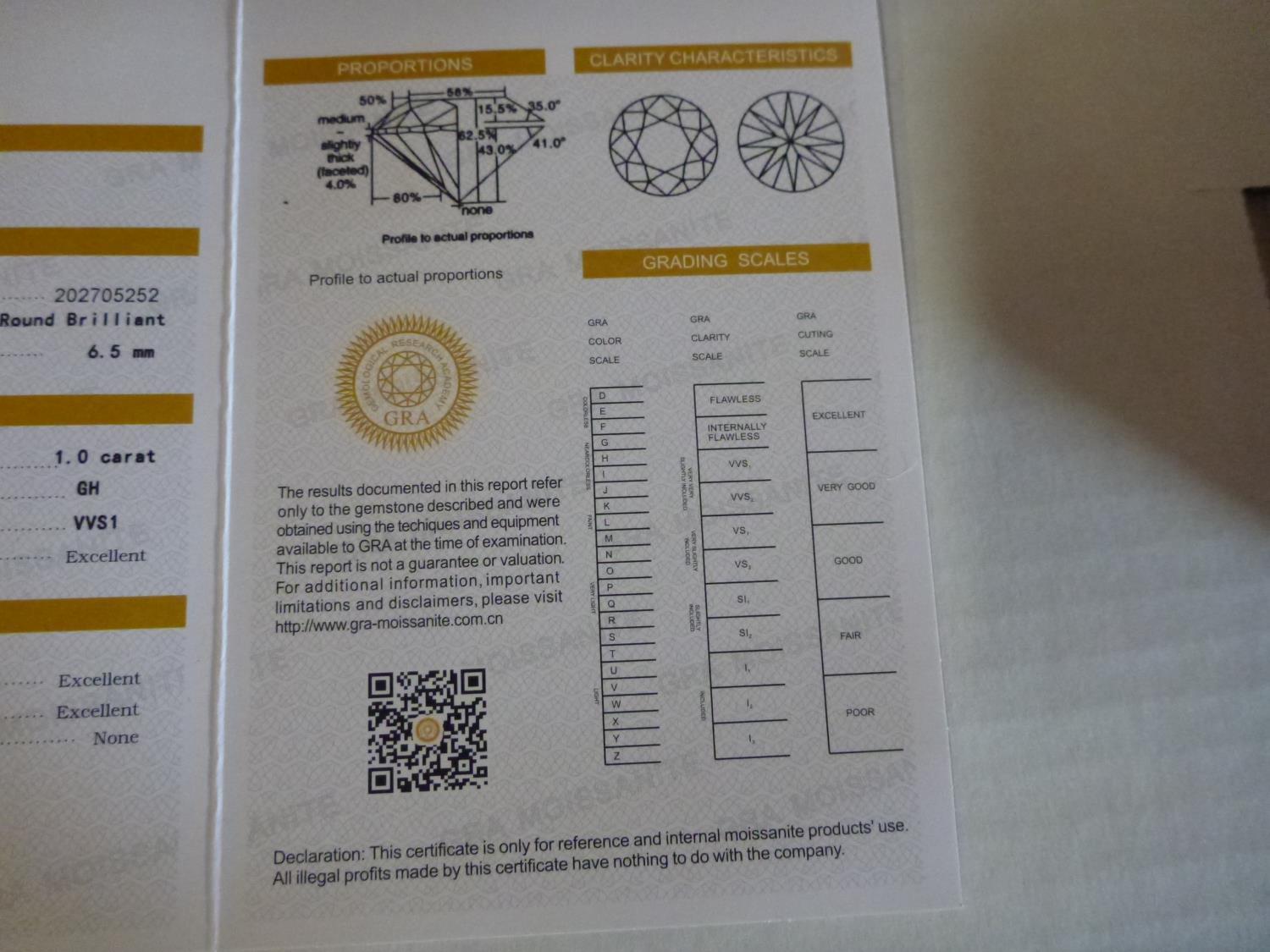7107 1.0 Ct Moissanite Lab Diamond Round Brillant Cut (Unused)