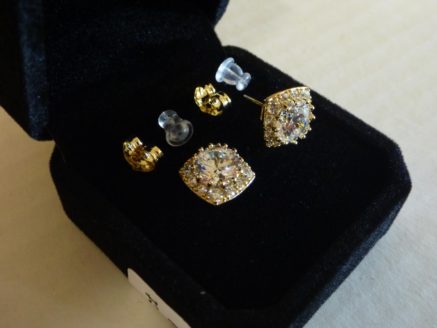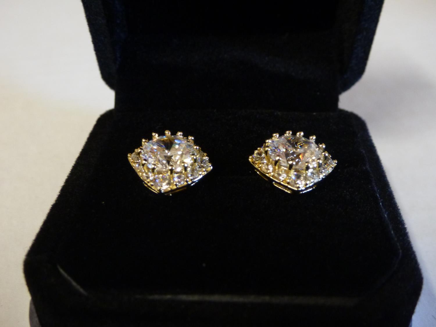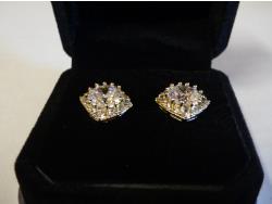 7122 14K Gold Plated 2.0 Ct Each Simulated Diamond Halo Stud Earrings (Unused)