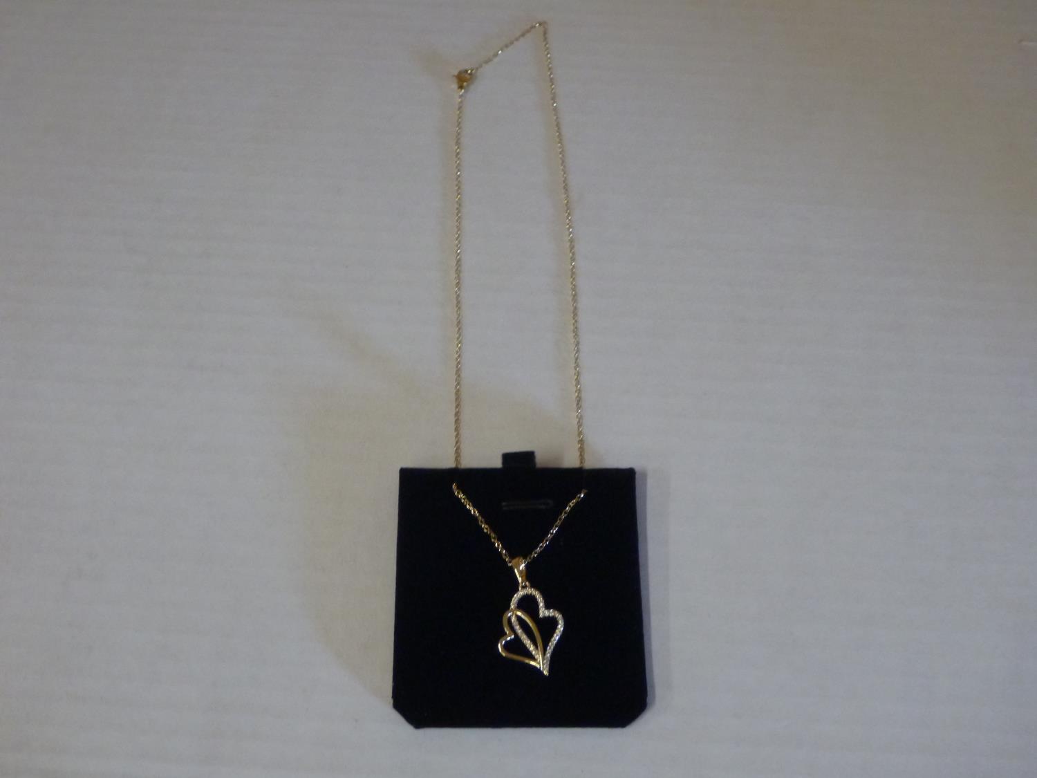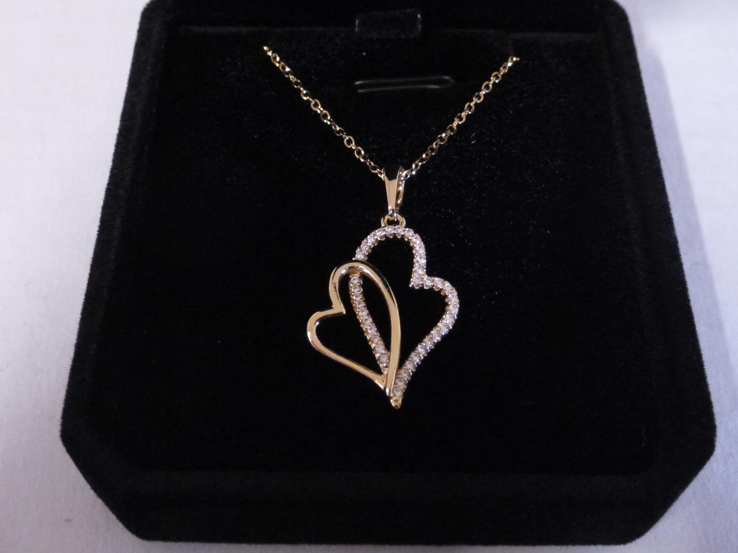 7117 14K Gold Plated 30.0 mm Simulated Double Heart Necklace (Unused)