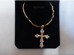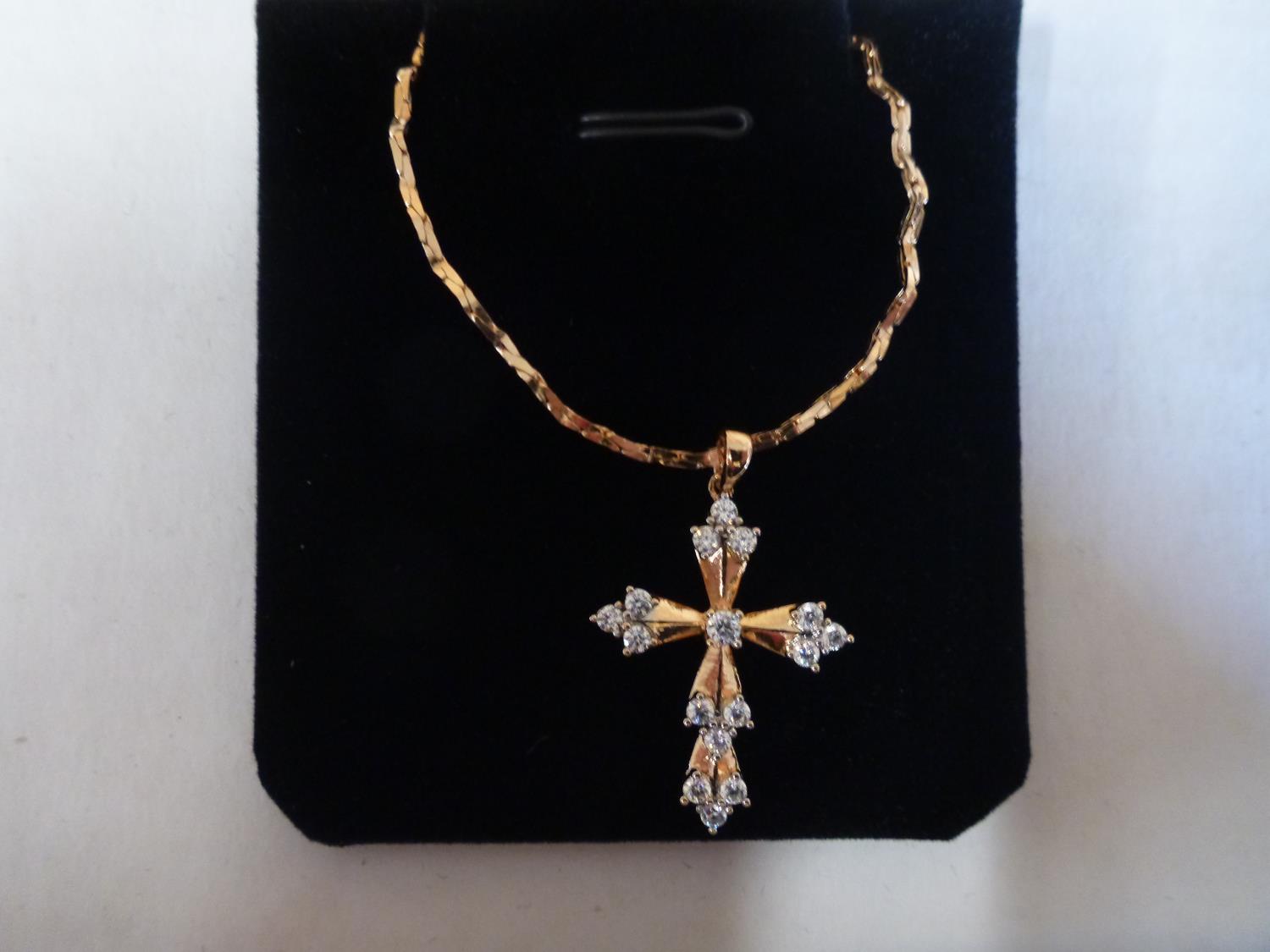 7115 18K Gold Plated 30.0 mm Simulated Diamond Cross Necklace (Unused)