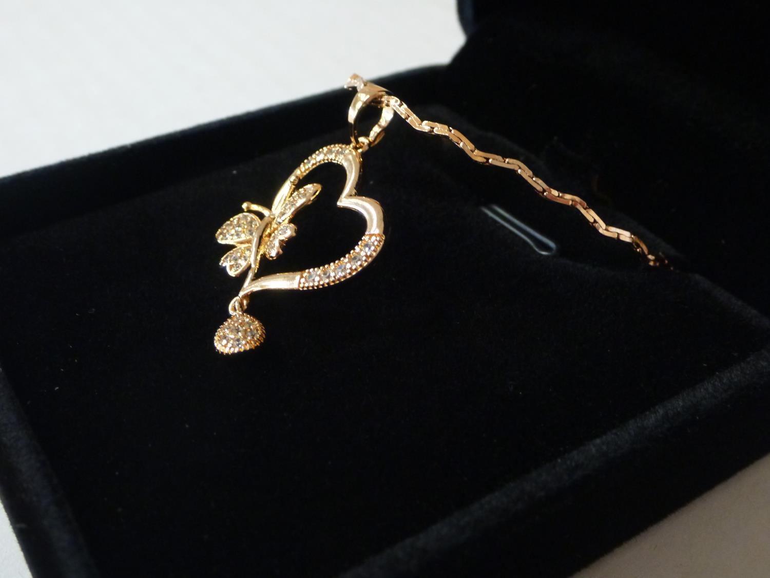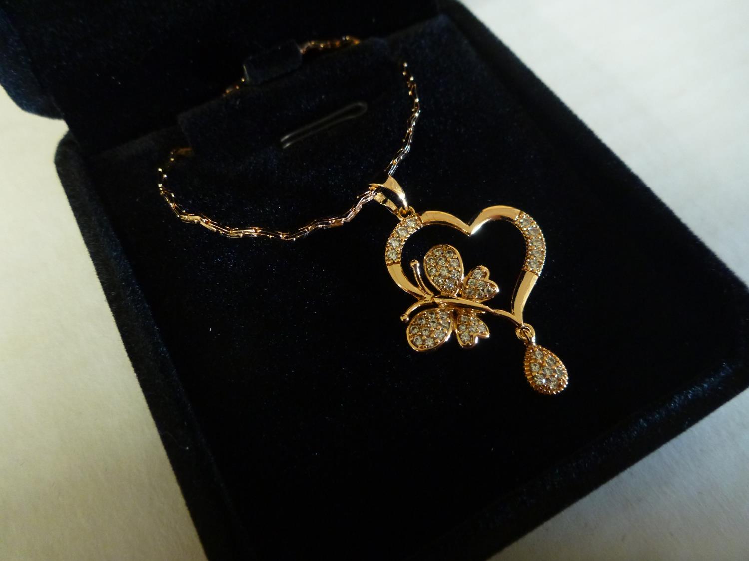 7114 18K Gold Plated 36.0 mm Simulated Diamond Butterfly Heart Necklace (Unused)