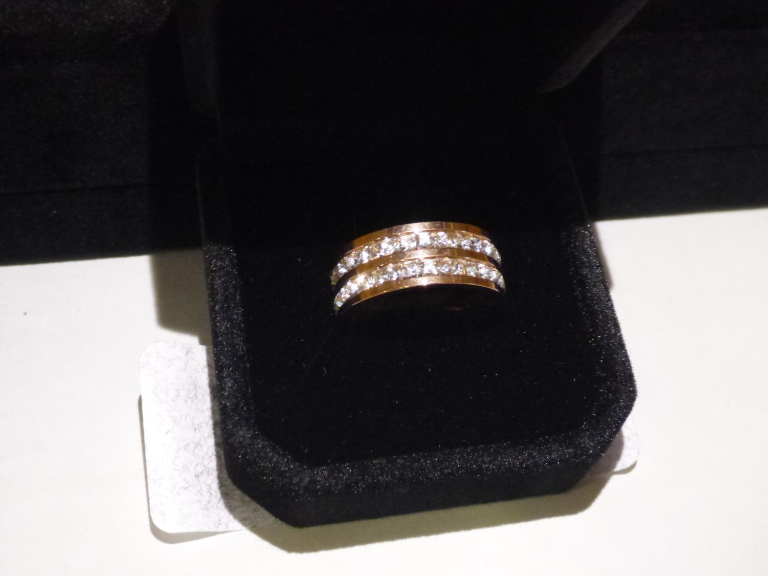 7125 18K Gold Plated 8.0 mm Simulated Diamond Ring (Unused)
