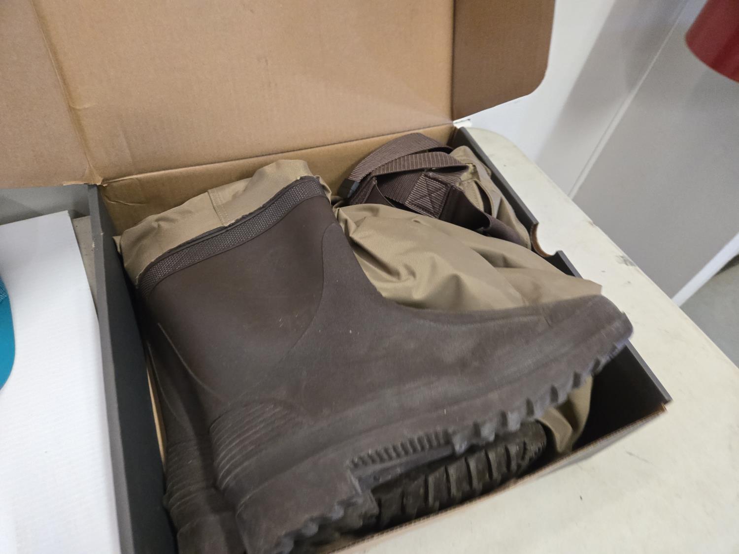 7309 (2) Caps, (2) Xl Jackets, Size 11 Hip Waders, 34X30 Jeans