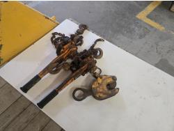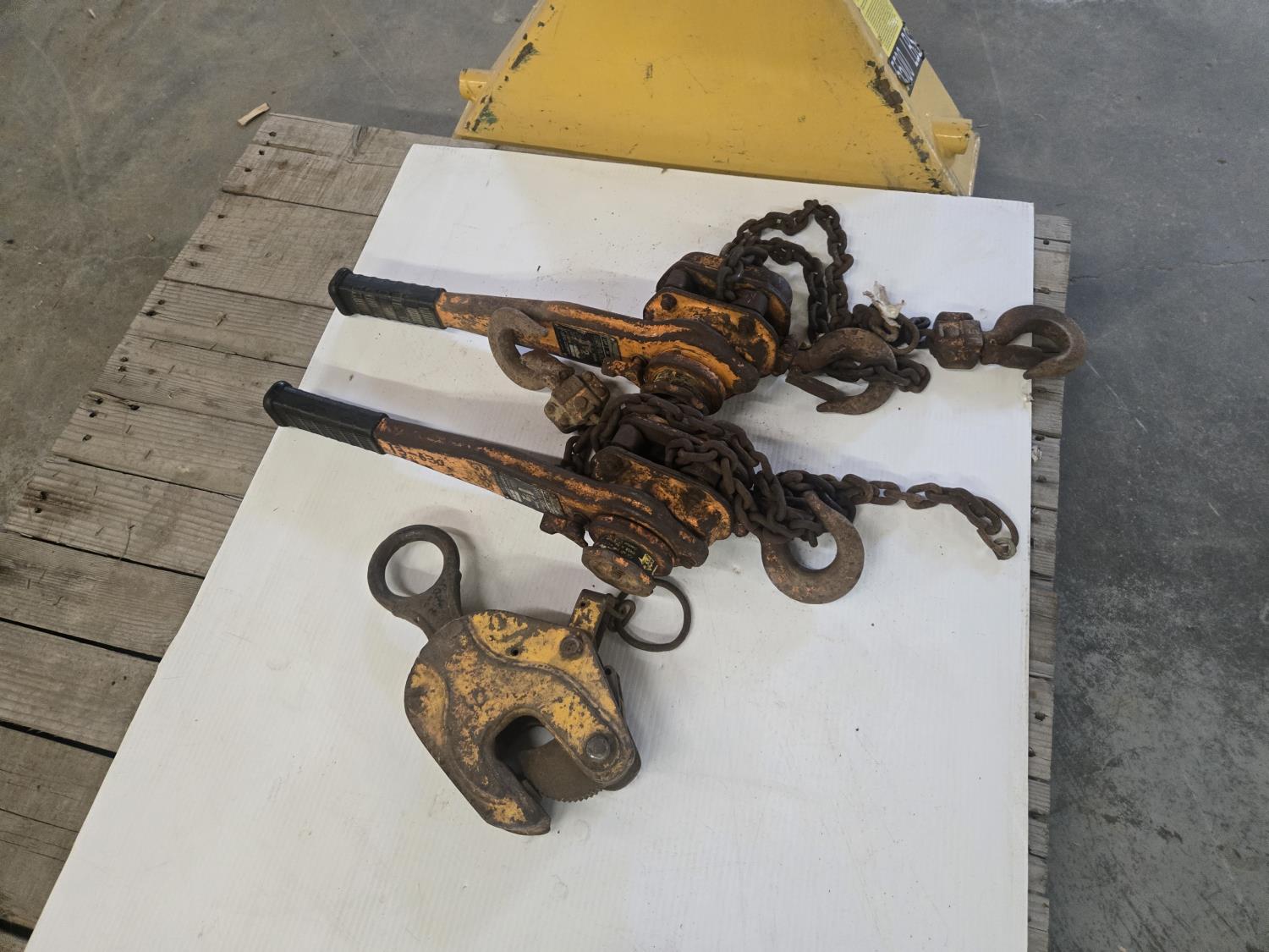 7216 (2) Kito 1-1/2 Ton Come-a-Longs, (1) Metal Plate Lifting Clamp