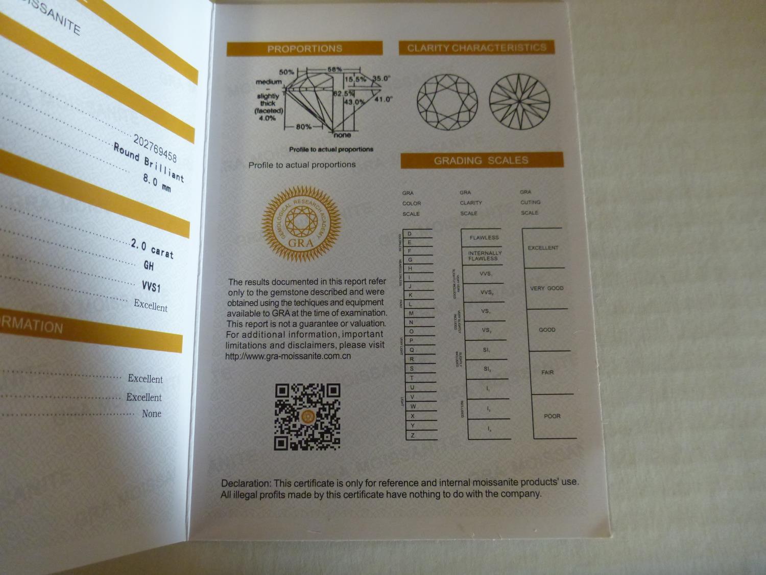7106 2.0 Ct Moissanite Lab Diamond Round Brillant Cut (Unused)
