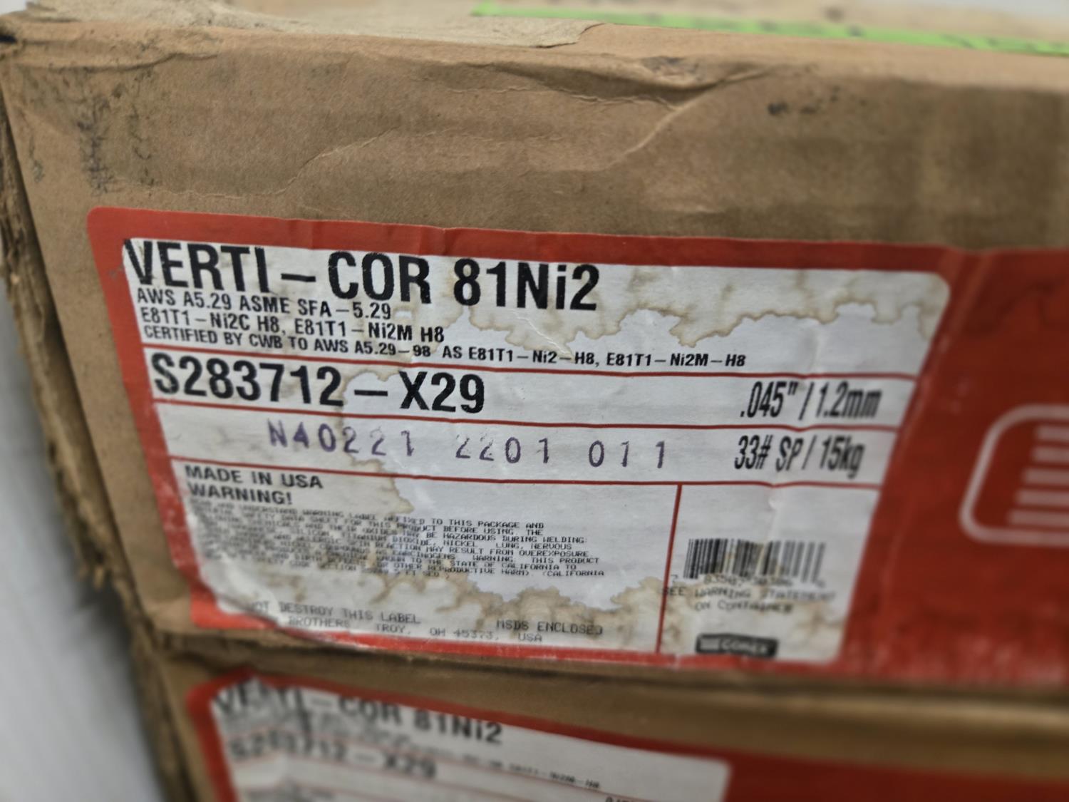 7187 (5) 33 lb Boxes of 045 Inch Hard Surfacing Mig Wire