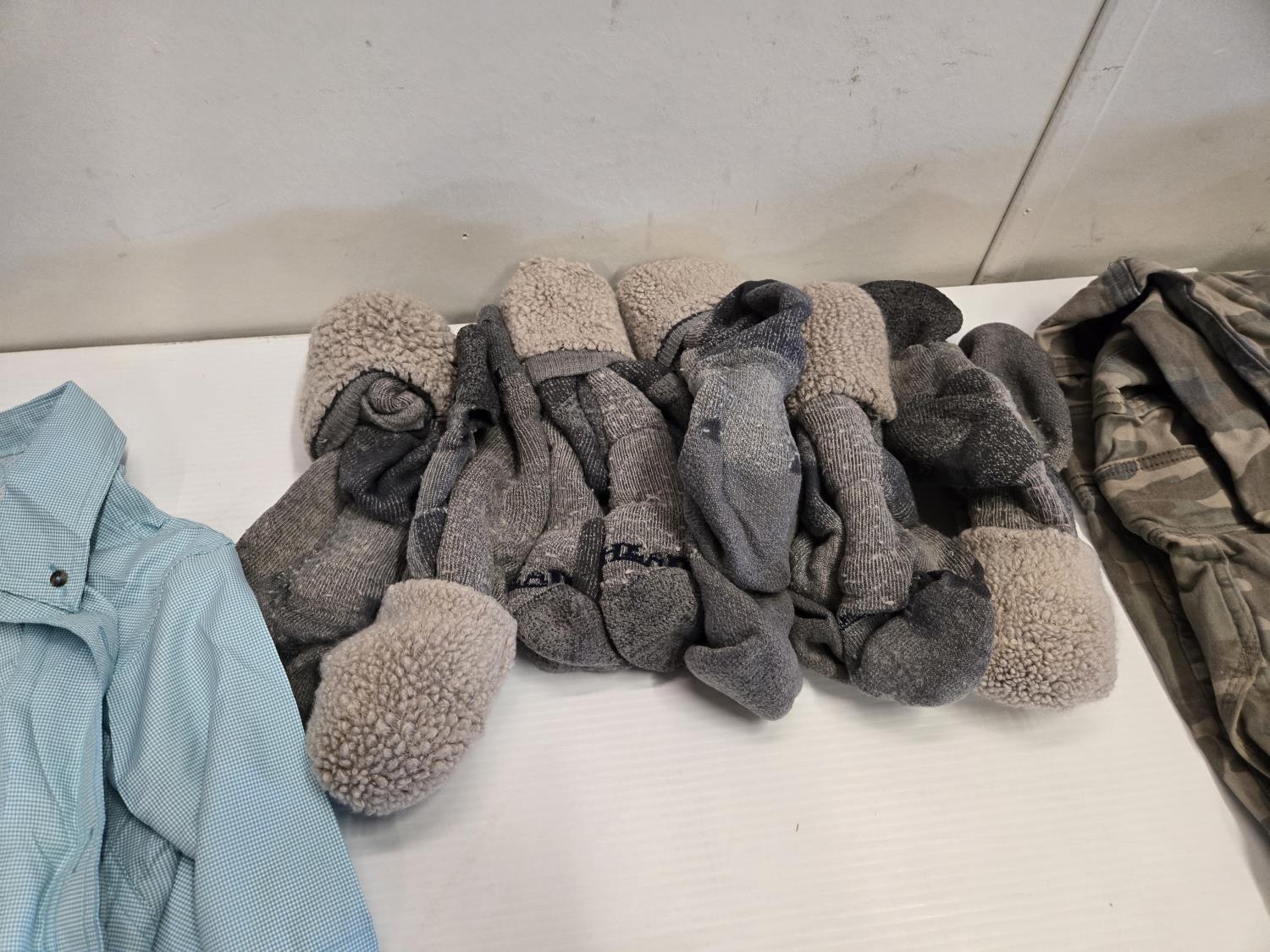 7311 (7) Pair Used Socks, 48X38 Pants, XL Shirt, Bib Overalls