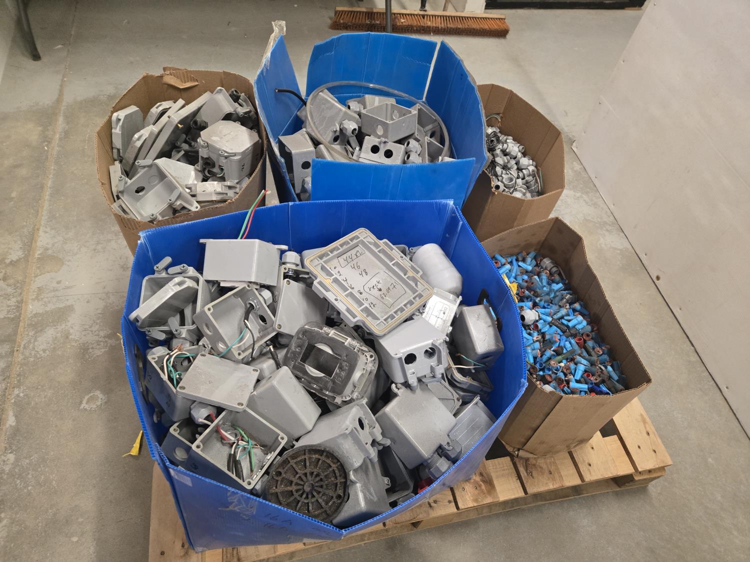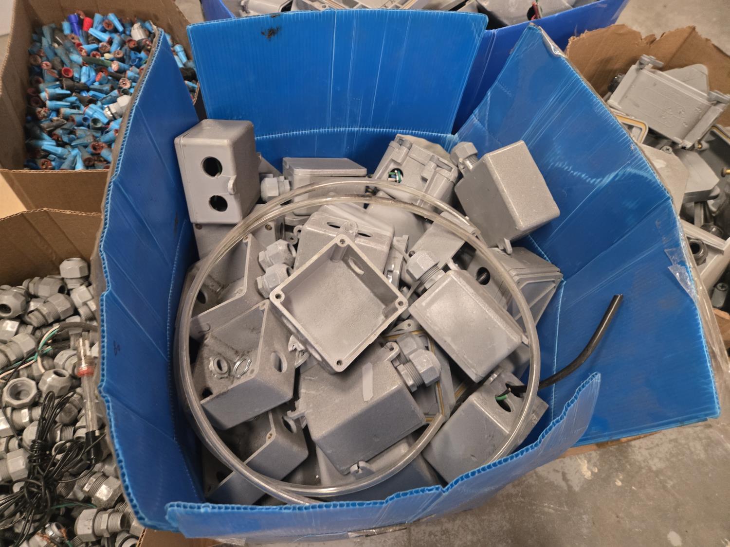 7392 Large Qty of Weather Proof Electrical Boxes, Marquette's & Box Connectors