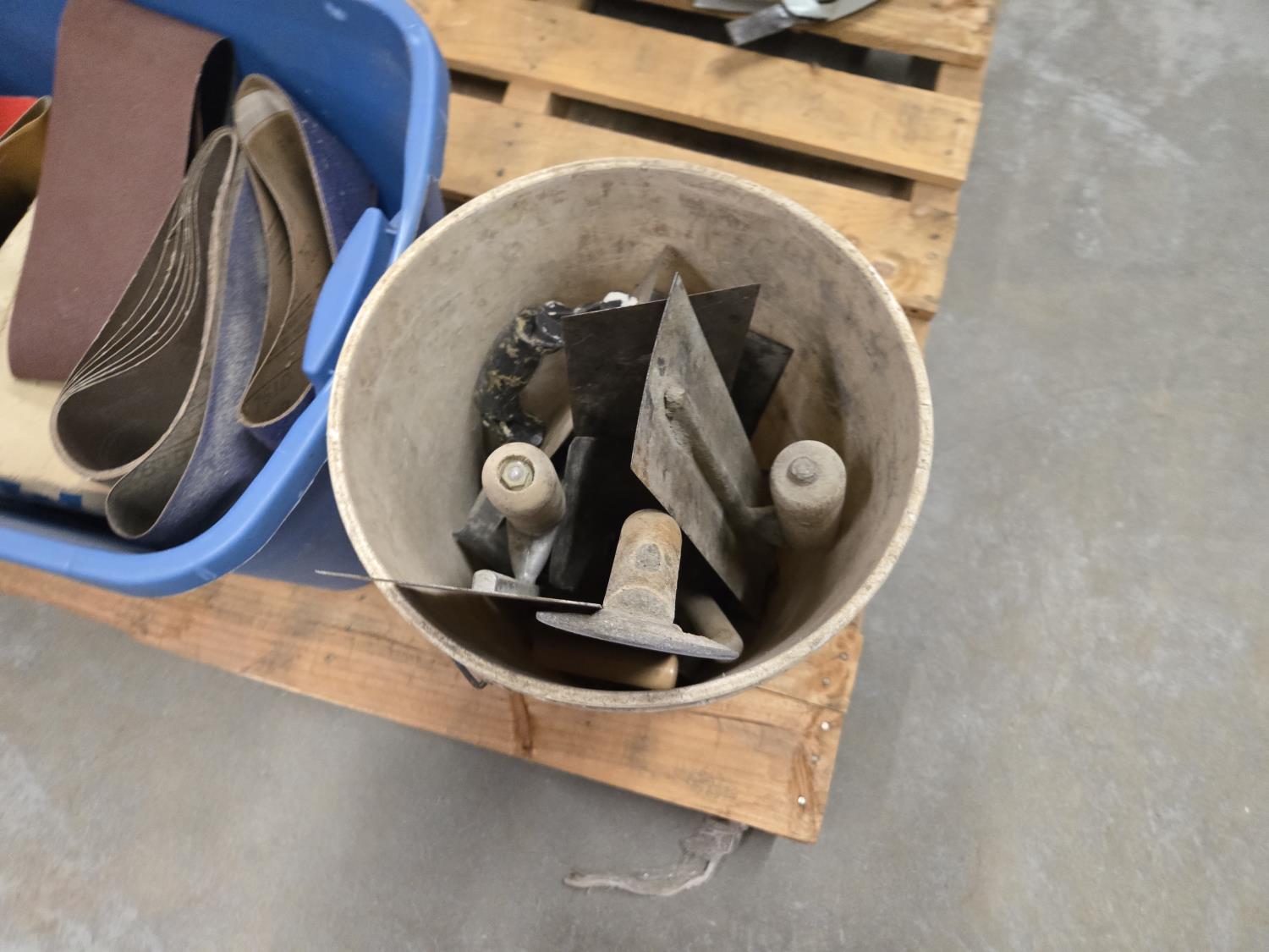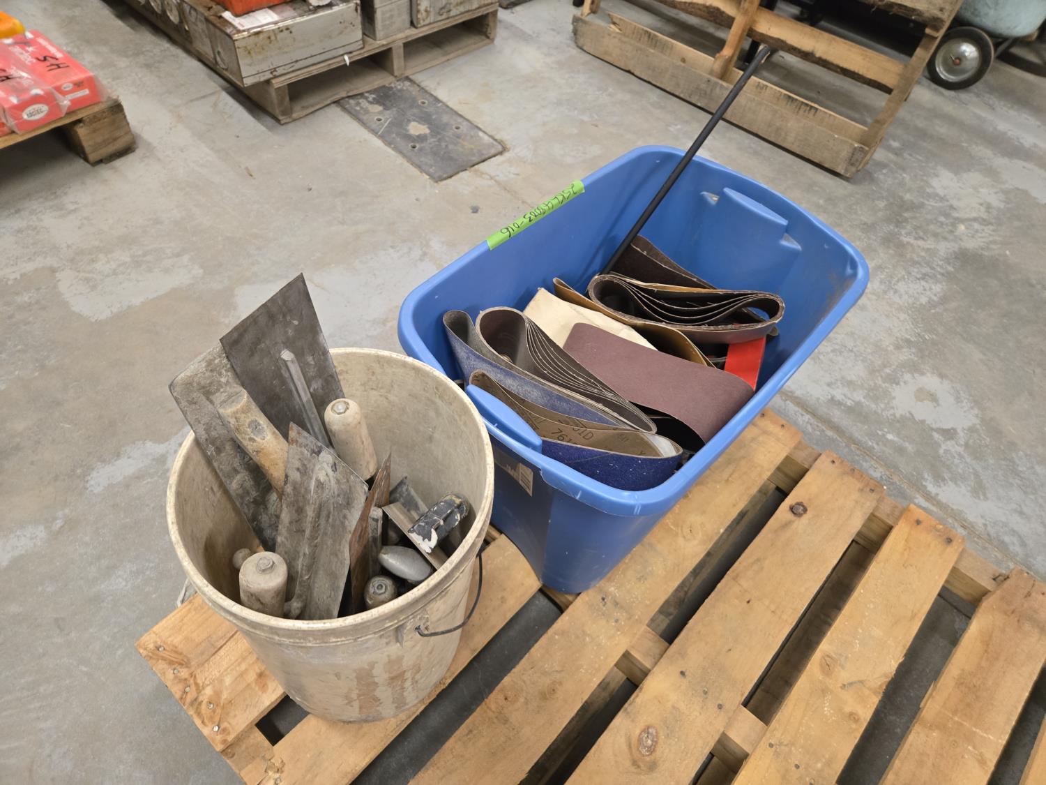 7358 Qty of 4 Inch Sander Belts, Qty of Concrete Trowels