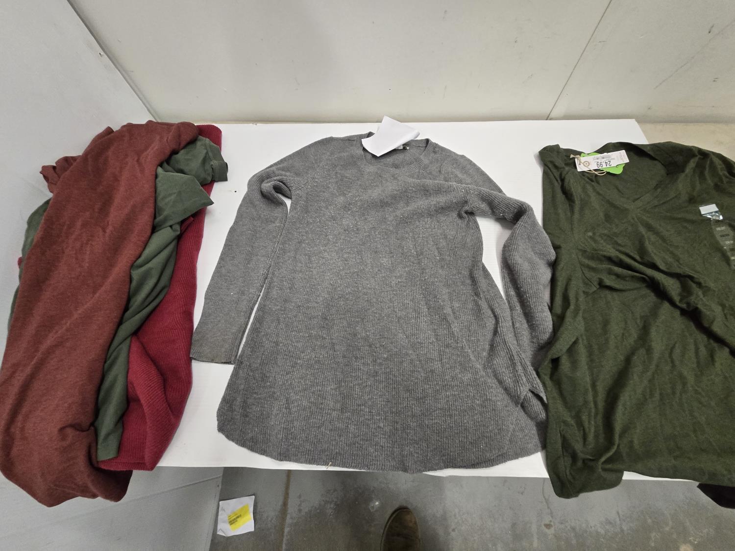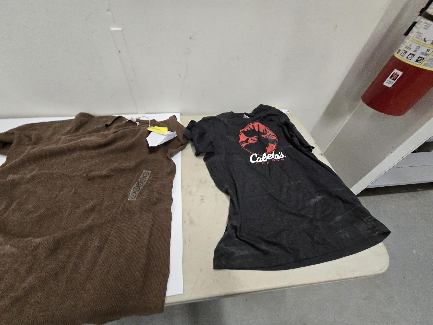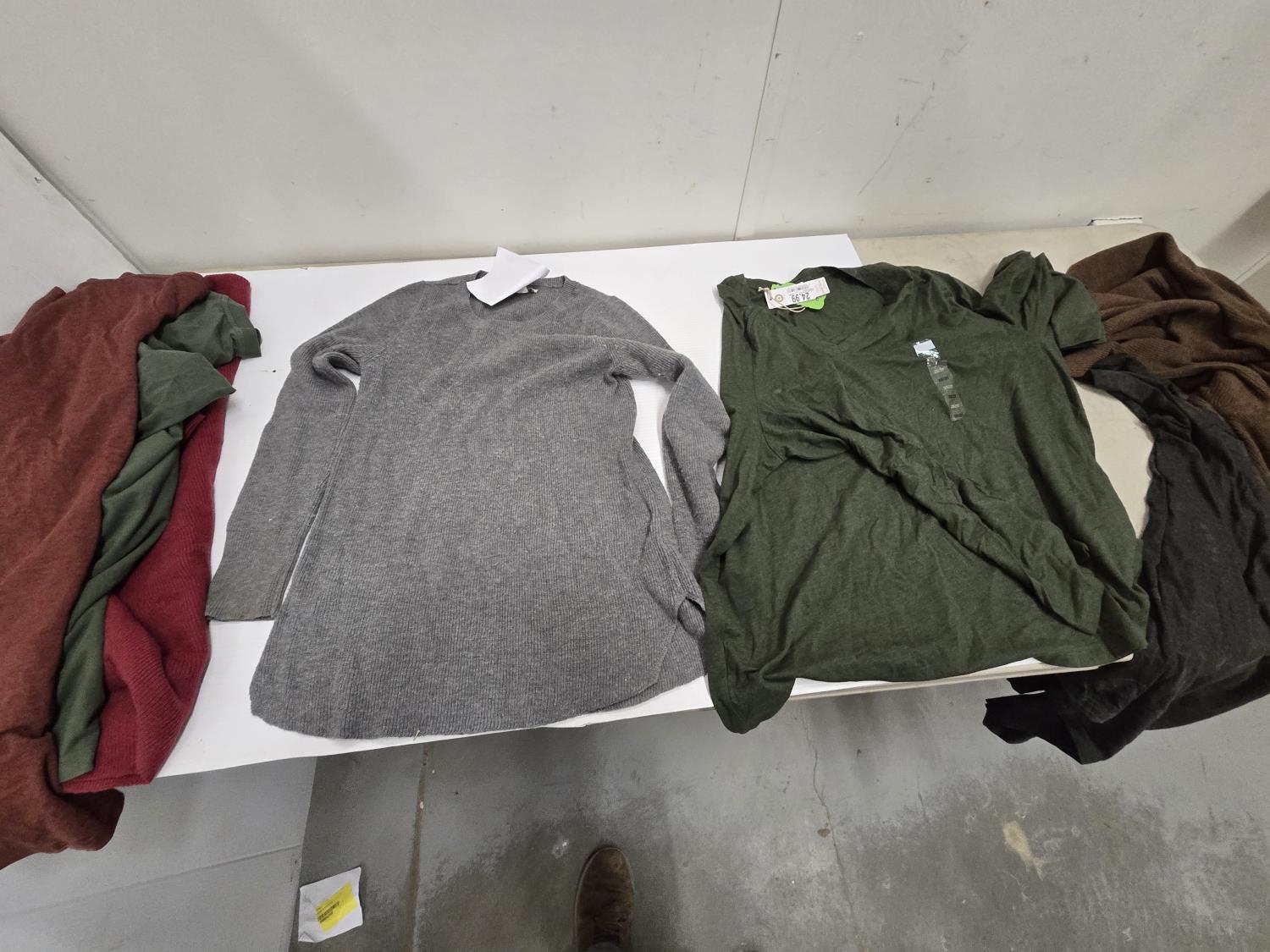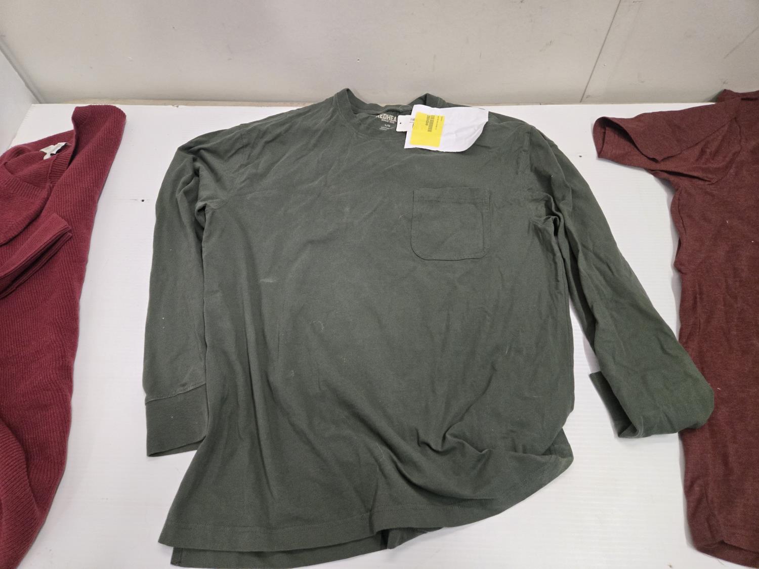 (2) small sweaters, (1) L tee shirt, (1) XL tee shirt, (1) 3XL tee shirt, (1) 2XL tee shirt, (1)XL sweater, Bass Pro Shop Return, Items are sold as is and may have defects or missing parts, Personal inspection is advised