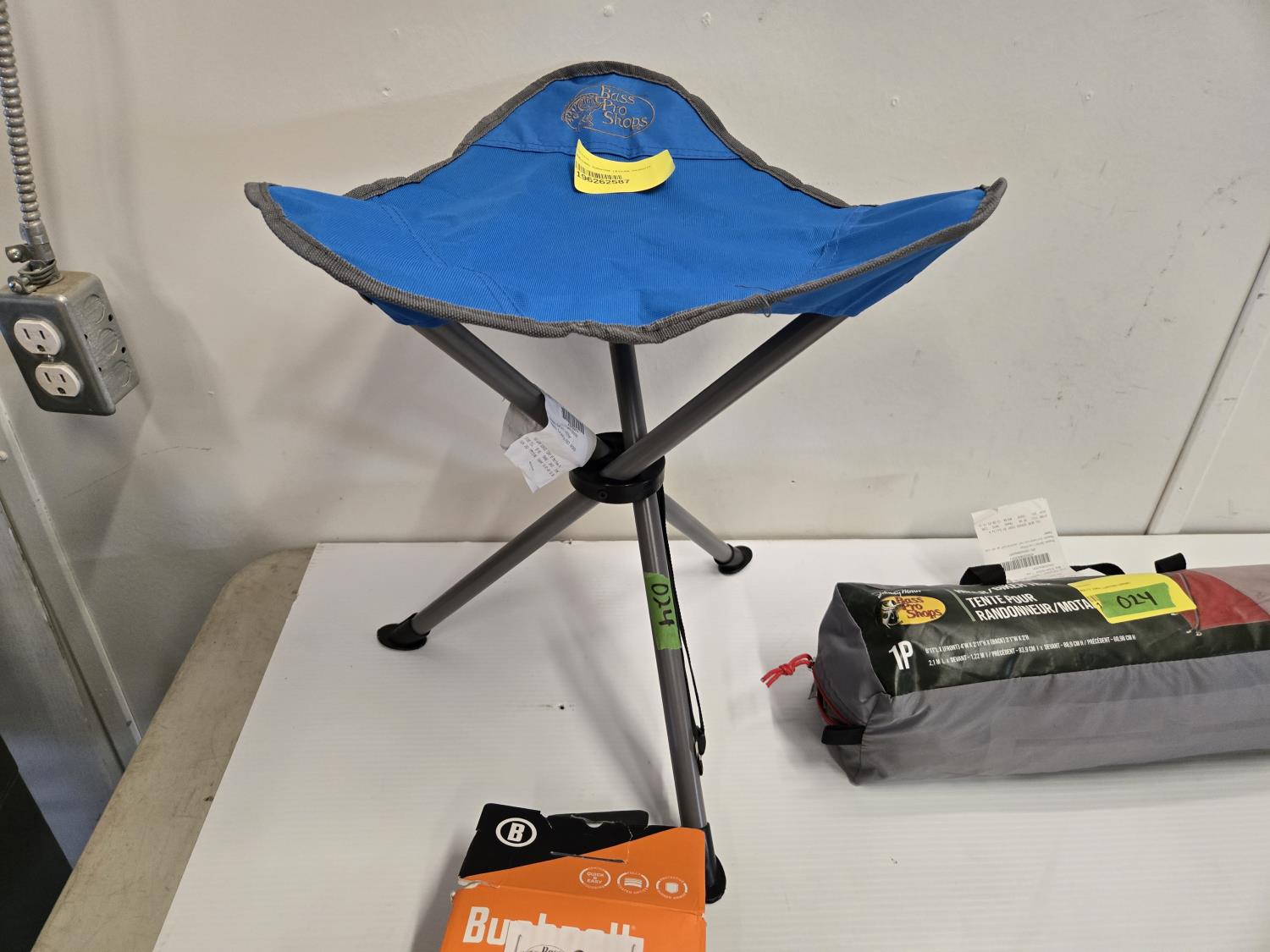 7331 Tripod Chair, Hiker's Tent, Binoculars