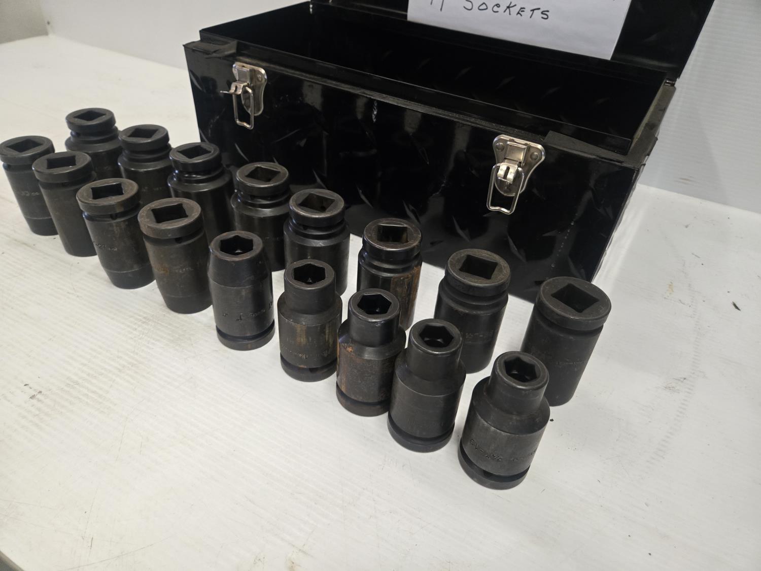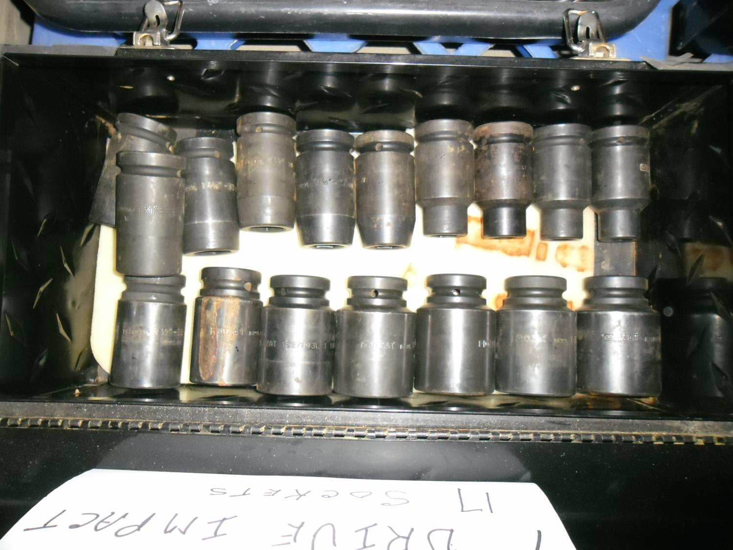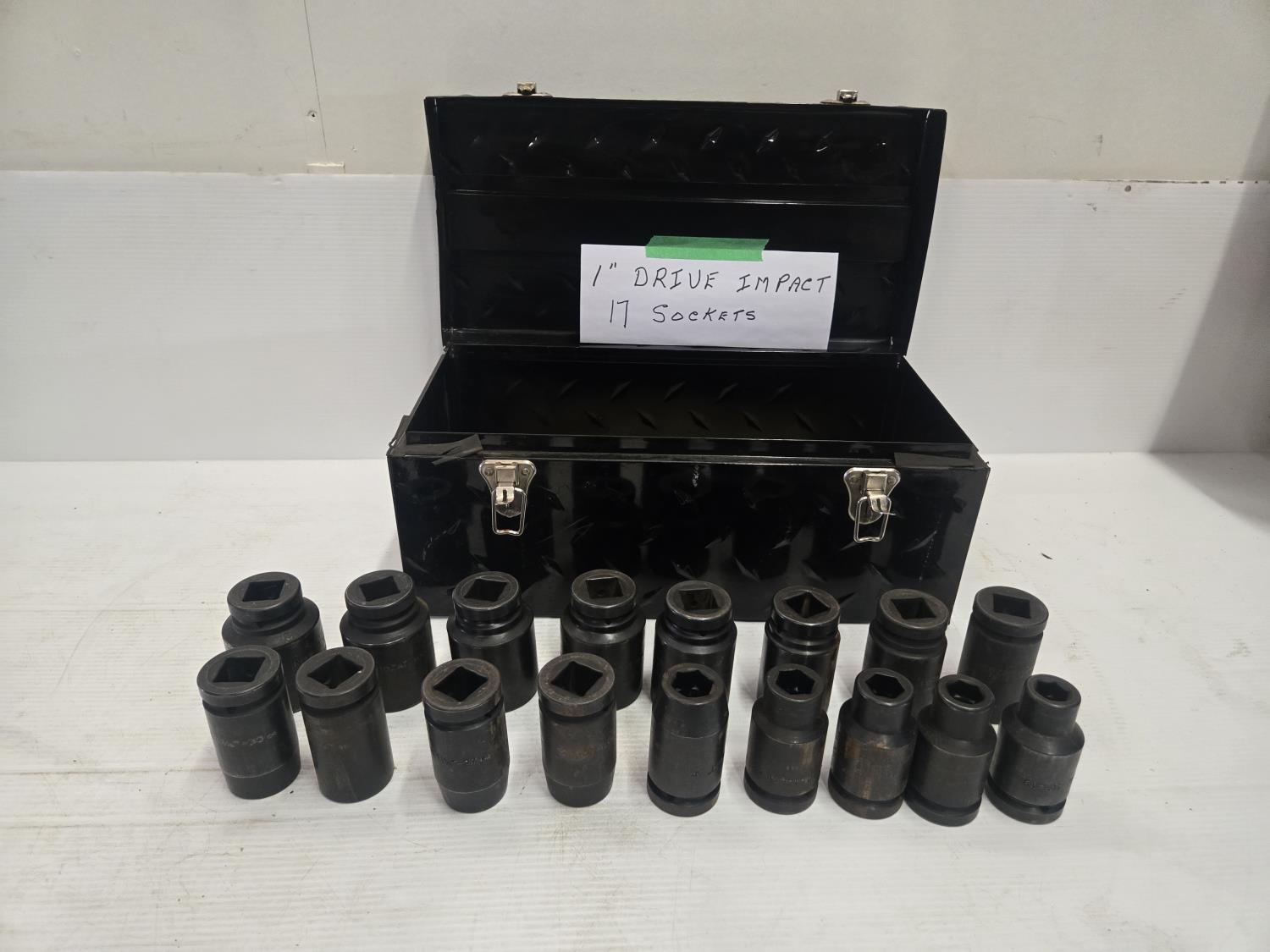 17 pieces, comes with toolbox, sizes, 3/4 inch, 13/16 inch, 7/8 inch, 15/16 inch, 1 inch, 1-1/16 inch, 1-1/8 inch, 1-3/16 inch, 1-3/8 inch, 1-1/2 inch, 1-9/16 inch, 1-11/16 inch, 1-3/4 inch, 1-13/16 inch, 1-7/8 inch, 1-15/16 inch (2)
