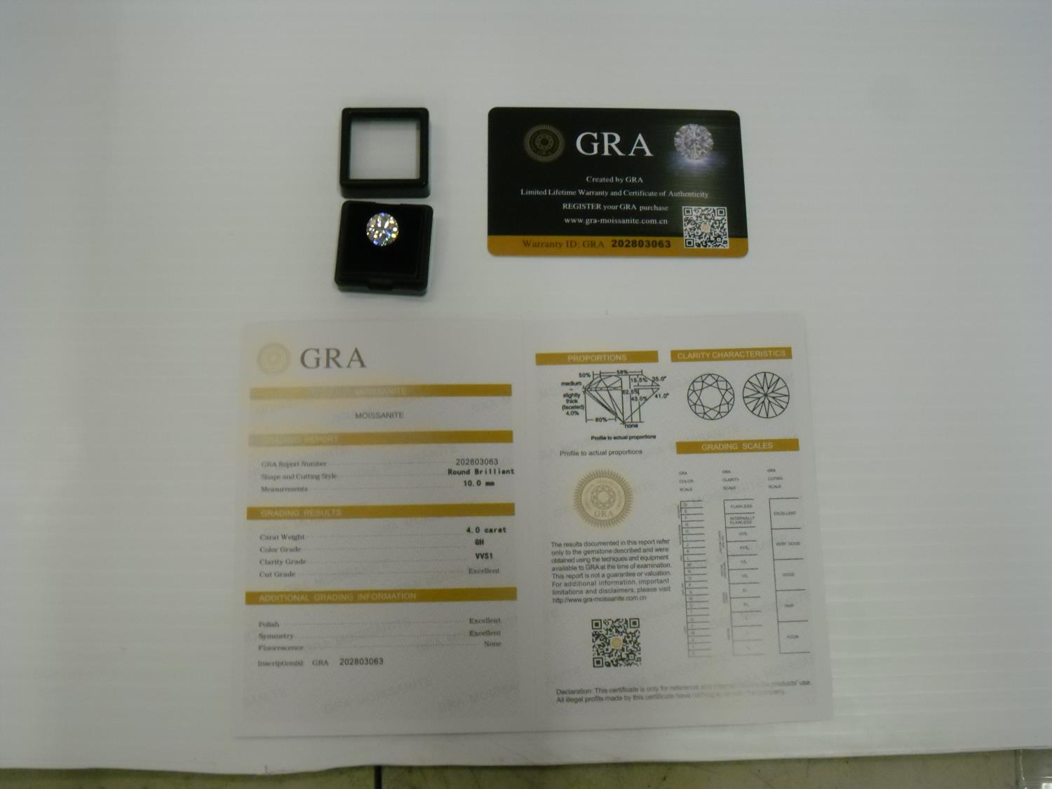 5080 4.0 Ct Moissanite Lab Round Brilliant Cut Diamond 10 mm (Unused)