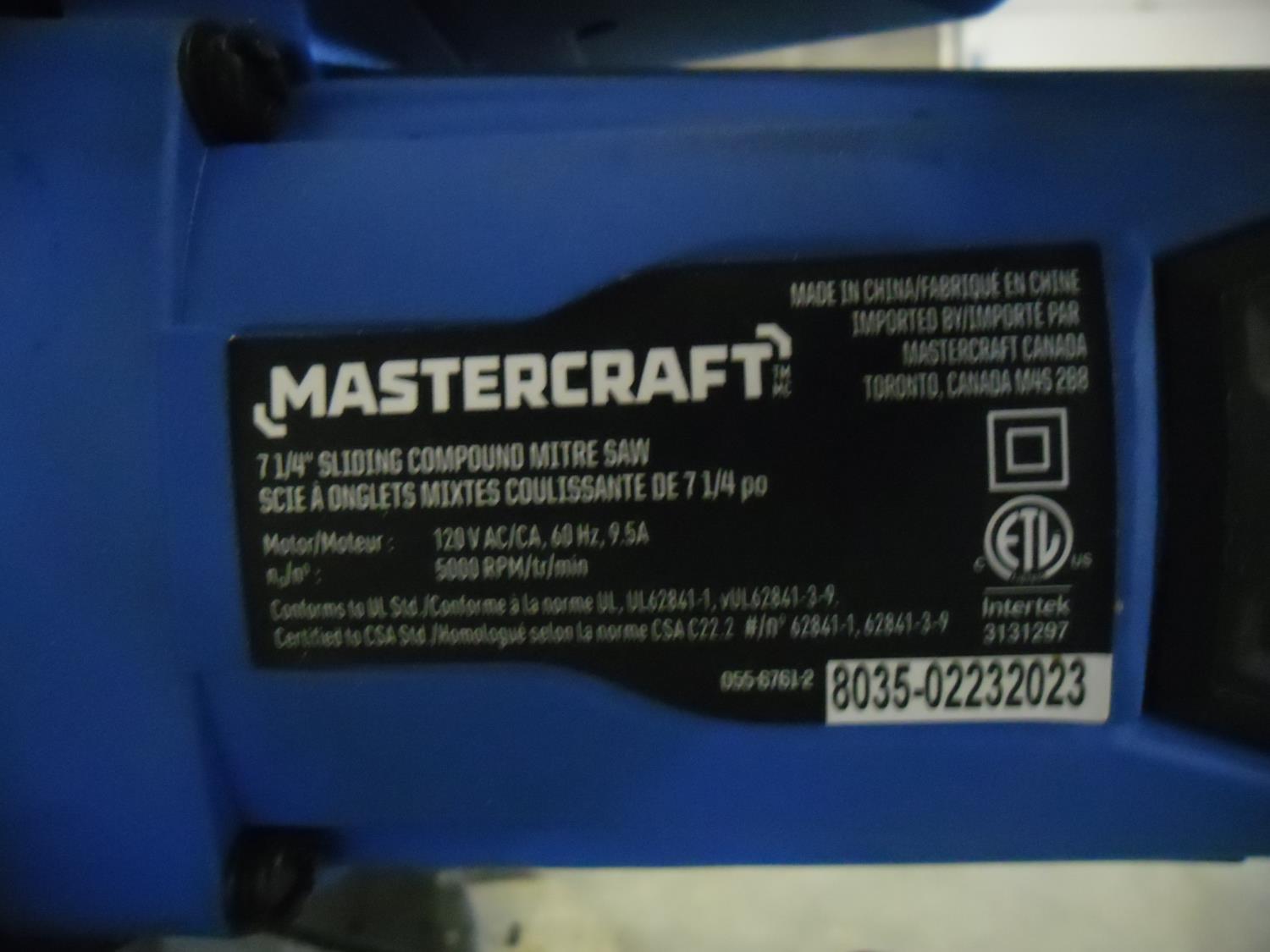 5158 Mastercraft 7.25 Inch Sliding Compound Mitre Saw