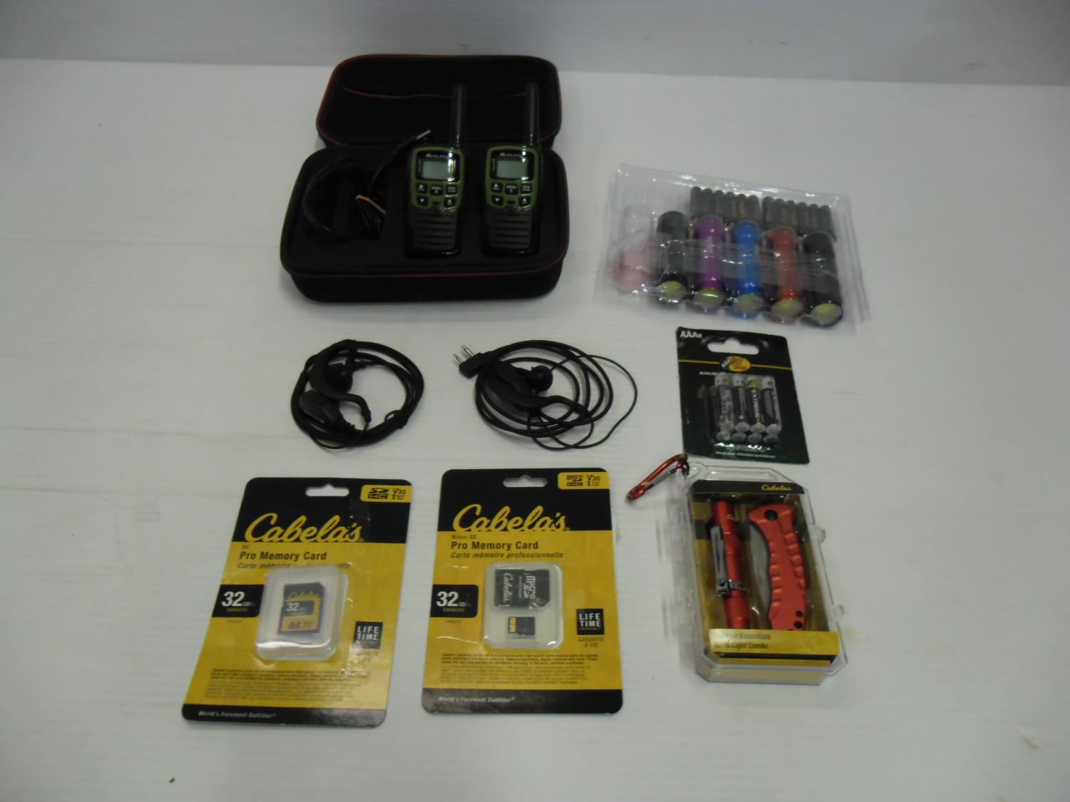 5119 Midland Walkie Talkies, Flashlights, Batteries and (2) Memory Cards