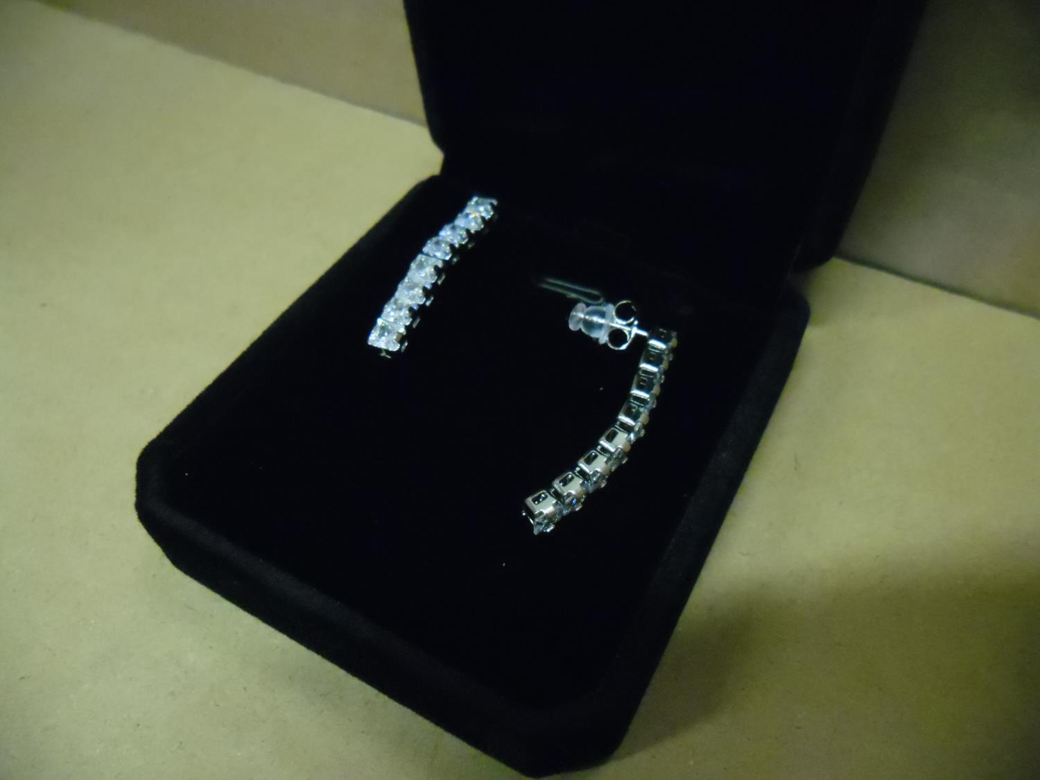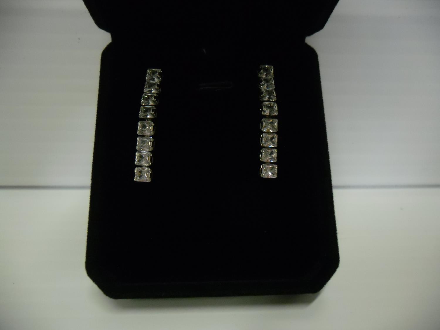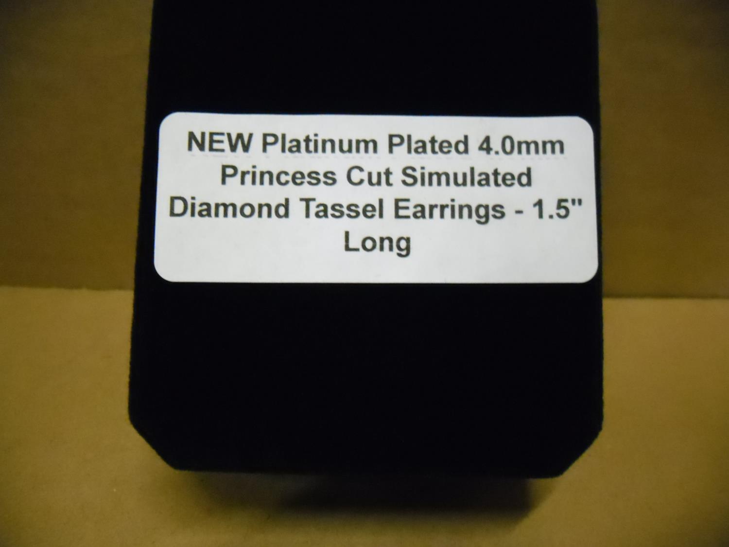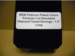 5092 Platinum Plated 4.0 mm Princess Cut Simulated Diamond Tassle Earrings (Unused)