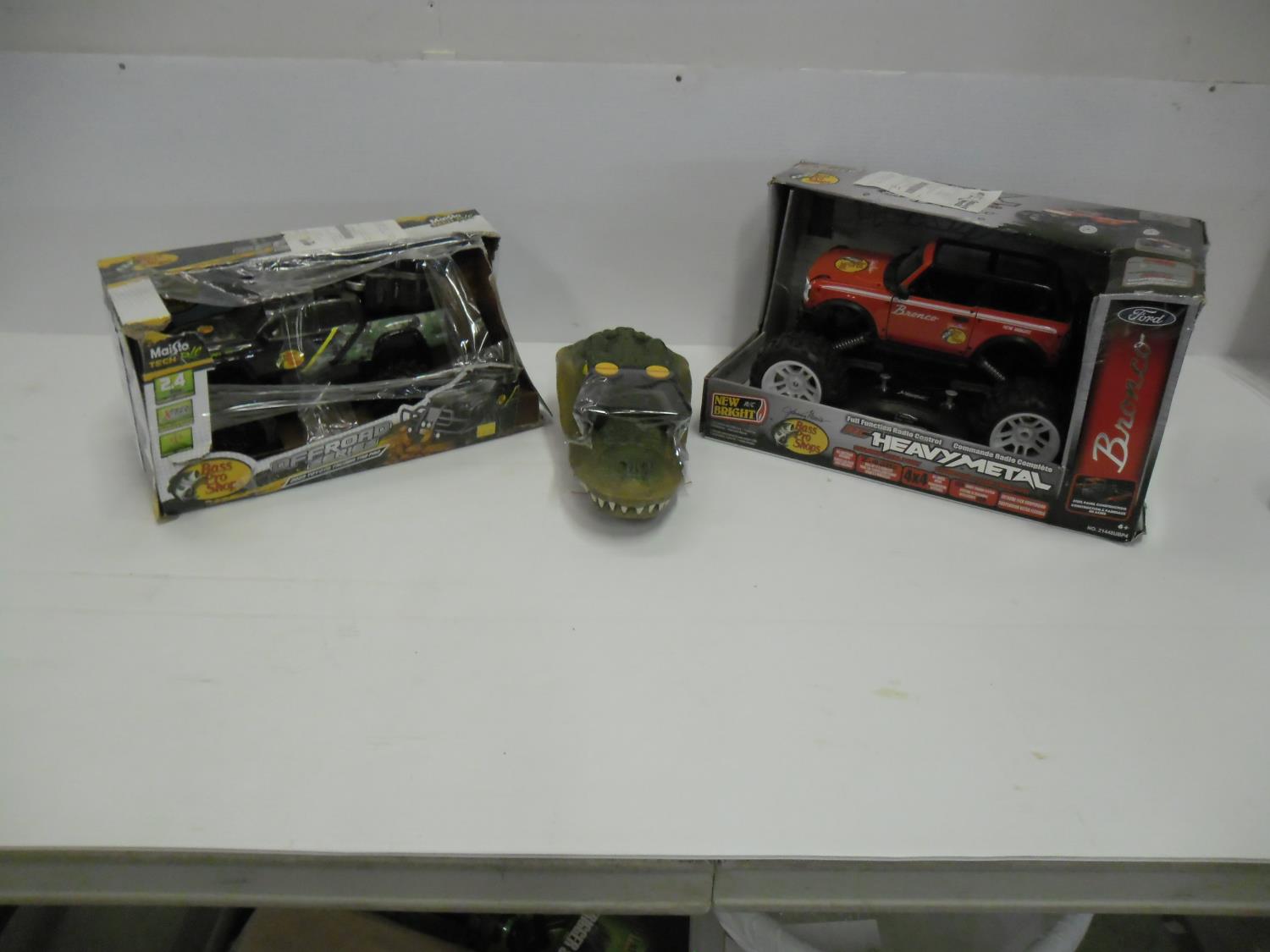 5198 Qty of (2) Remote Control Monster Truck Toys and a Remote Control Croc Head