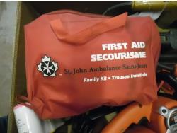 (4) Sanders, jigsaw, retractable safety line, nails, screws, emergency bag
