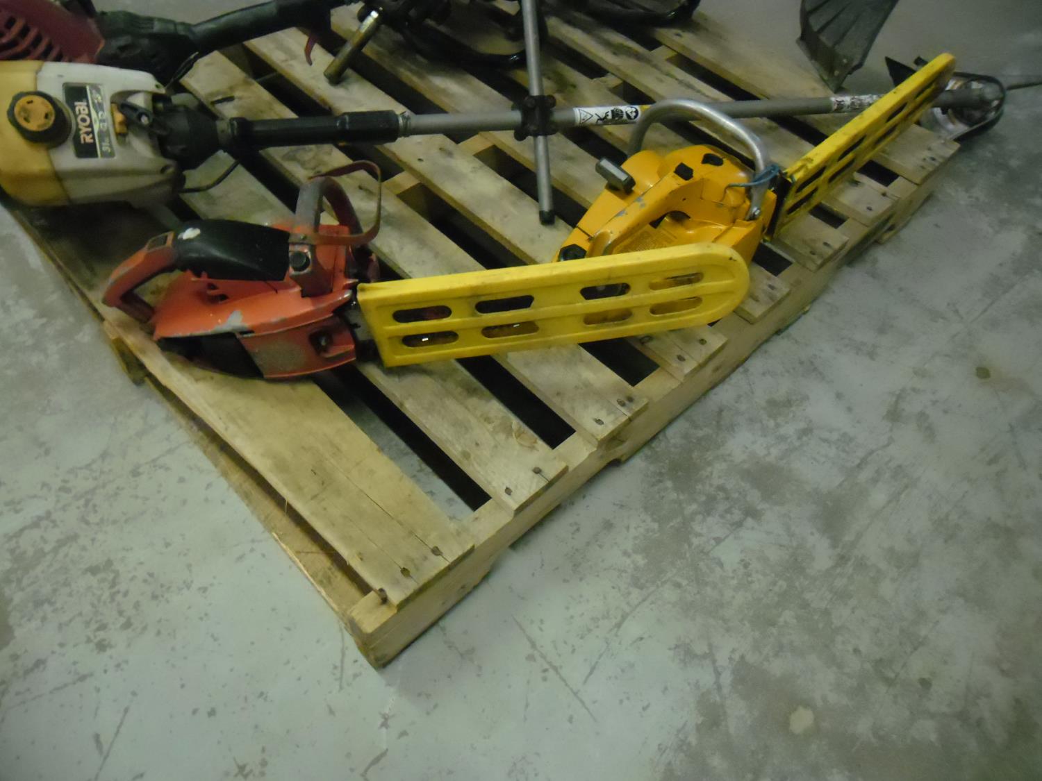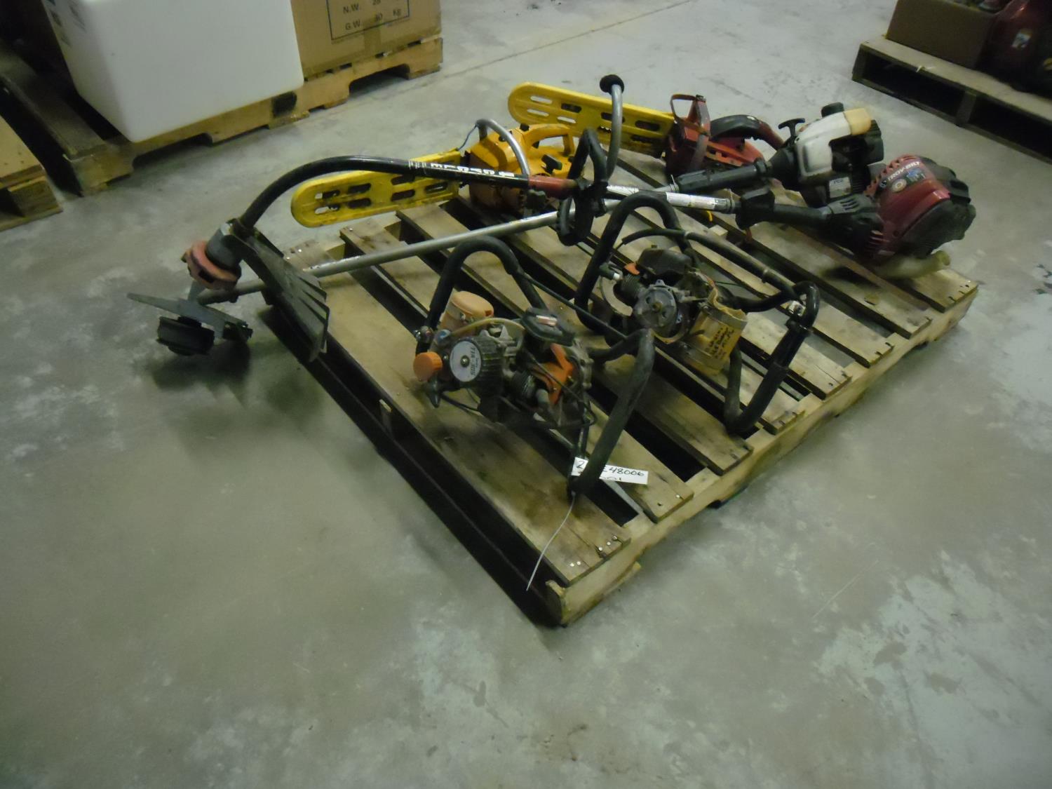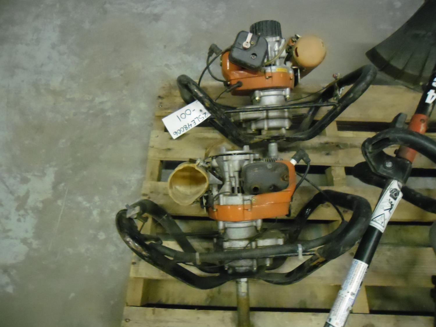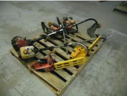 (2) Augers, (2) Chain Saws, (2) Weed Wacker/Trimmers, items missing parts