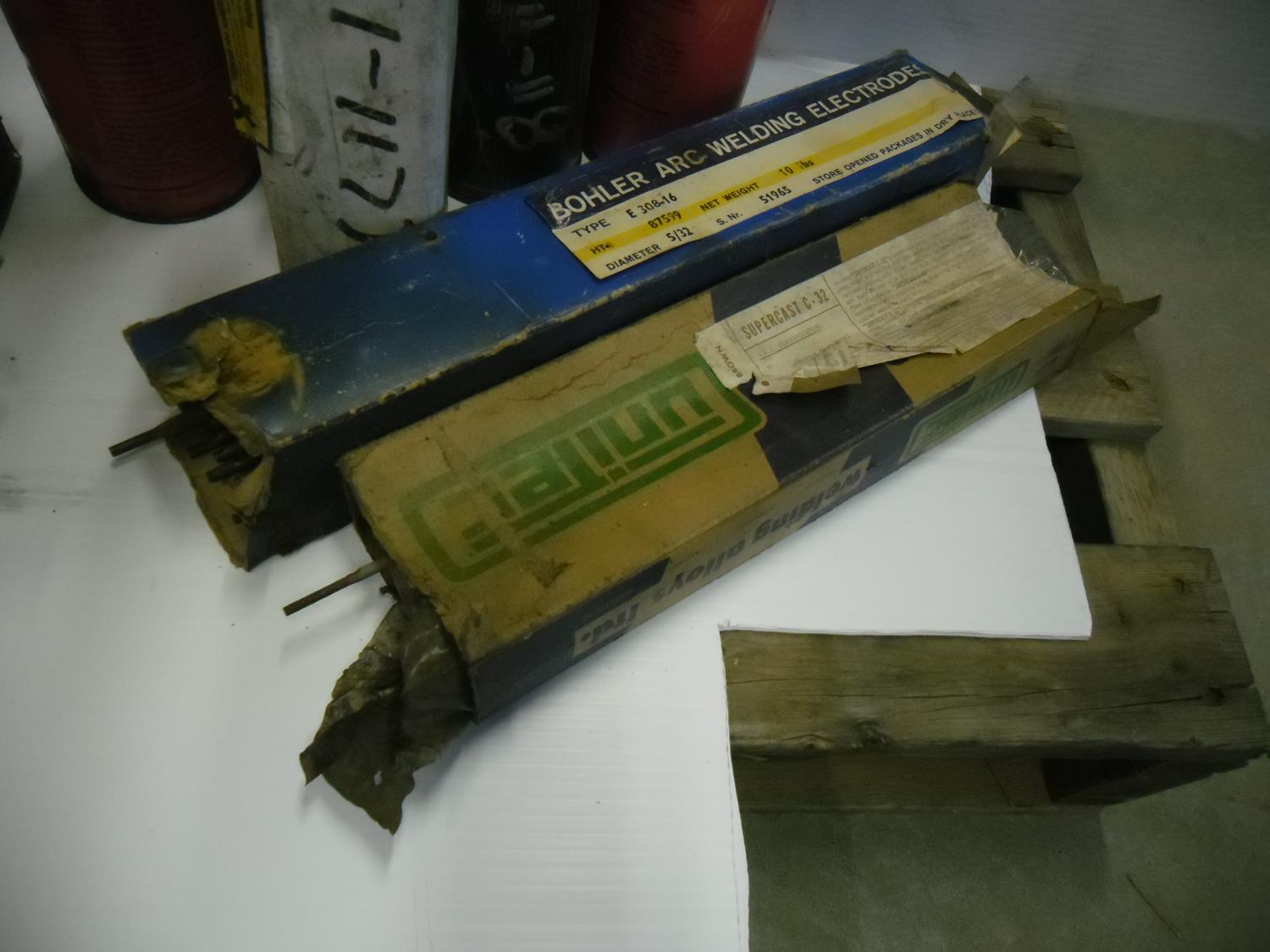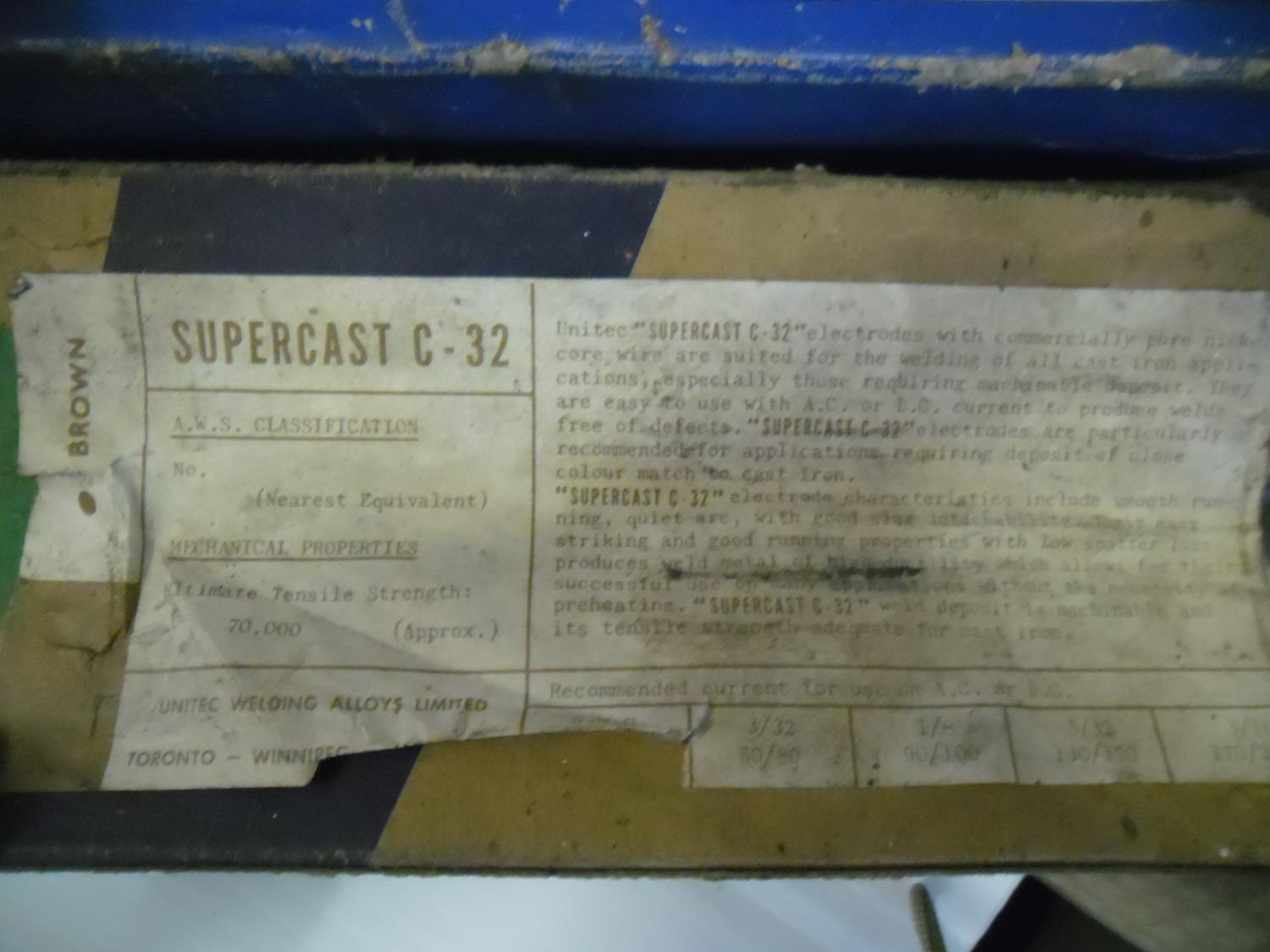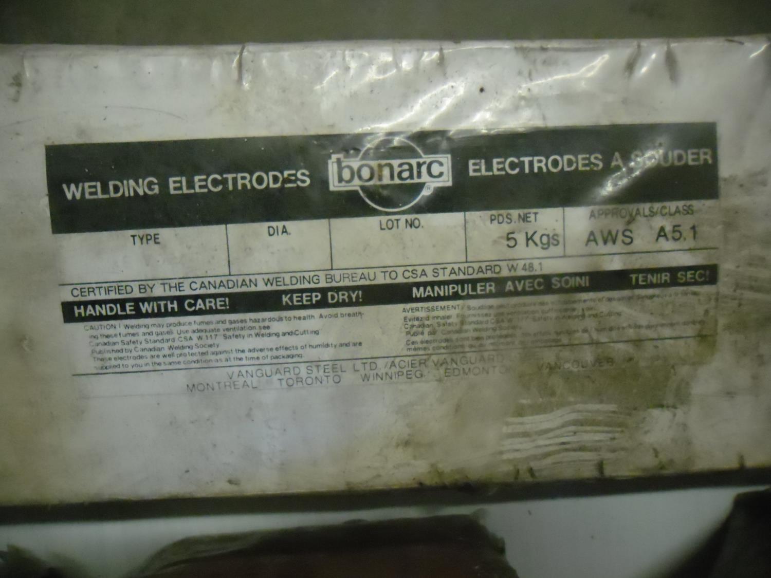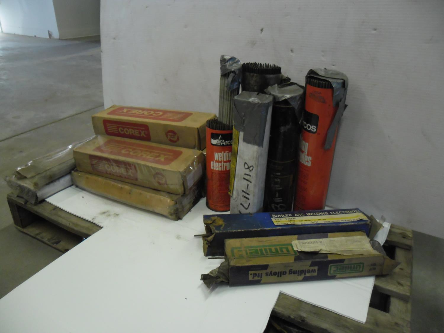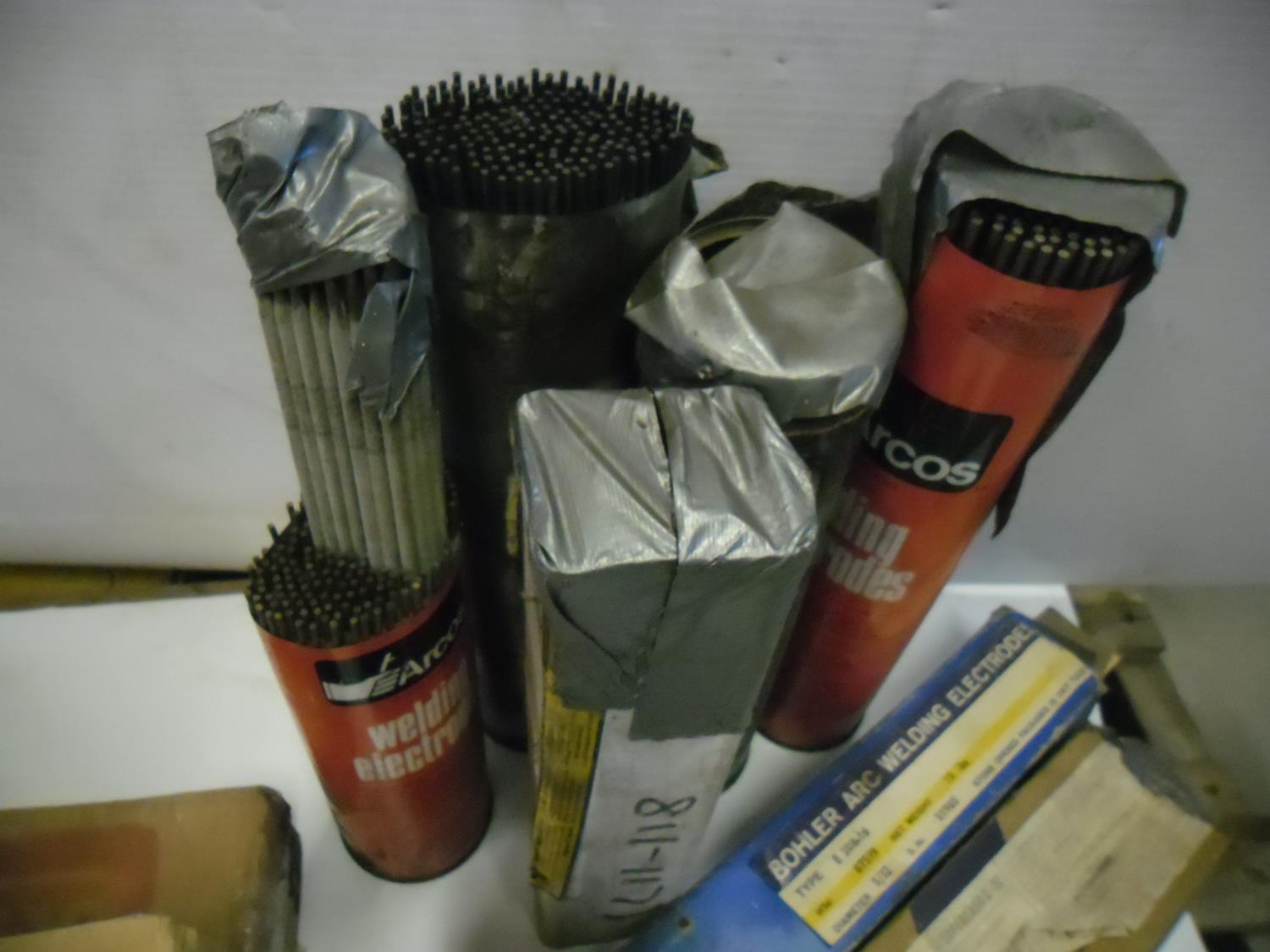 (5) boxes of Corex 7018XR 3/32 inch, (1) 1/2 box Bohler Arc Welding Electrodes E308-16-5/32 inch, (1) box of Unitec Supercast C-32, (1) box Bonarc welding electrodes