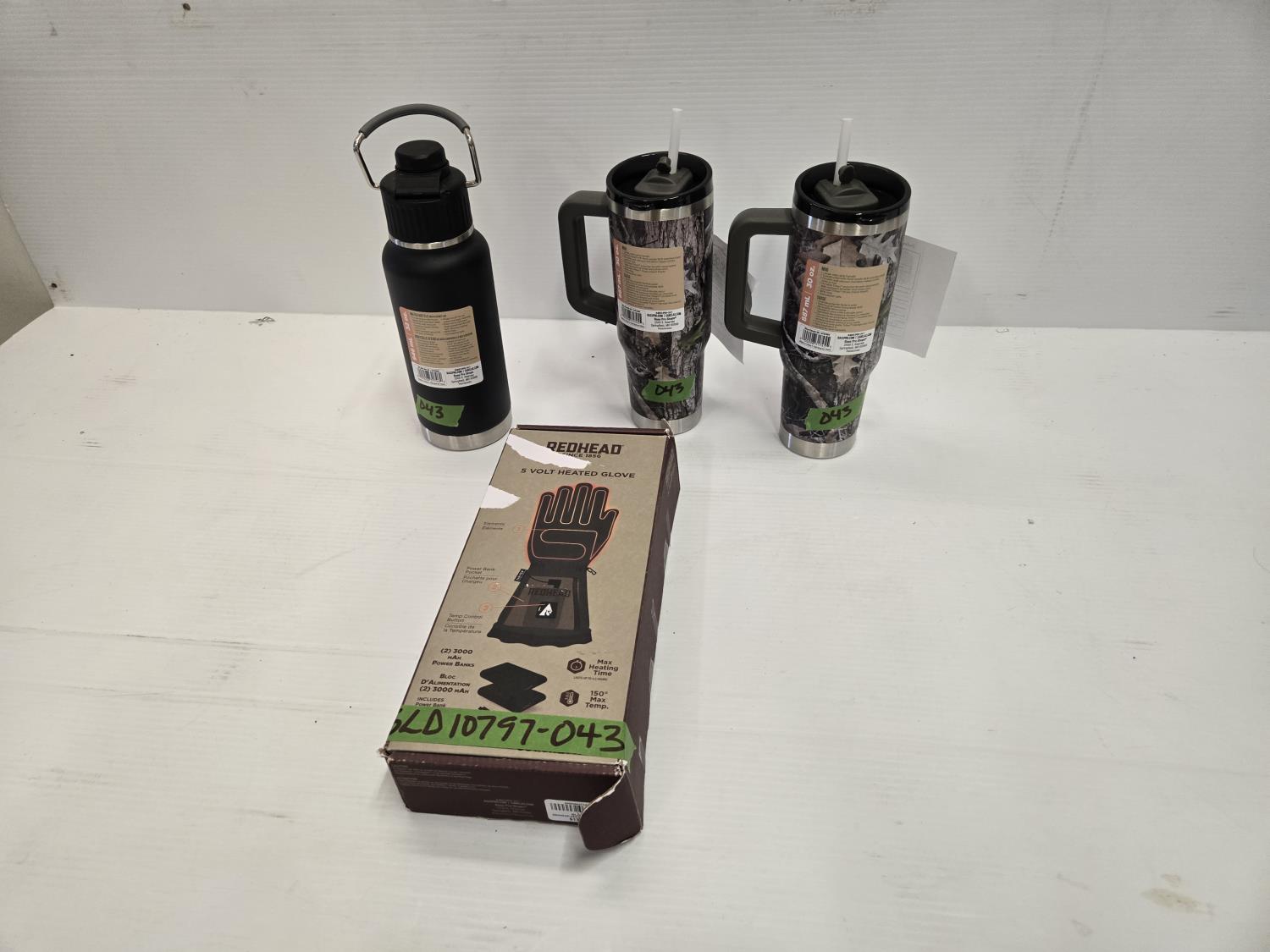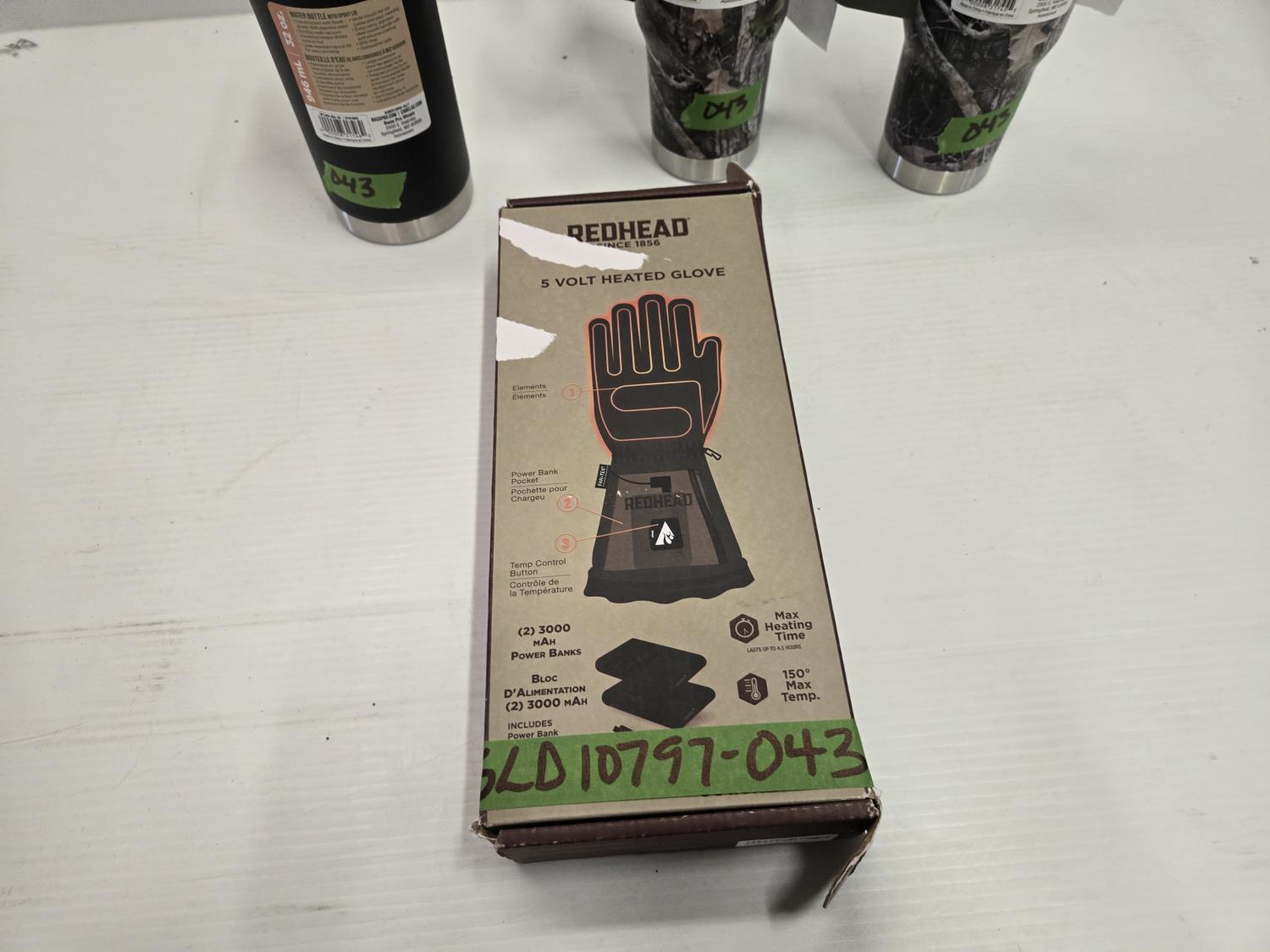 5220 Red Head Large 5 Volt Heated Gloves and (3) Water Bottles