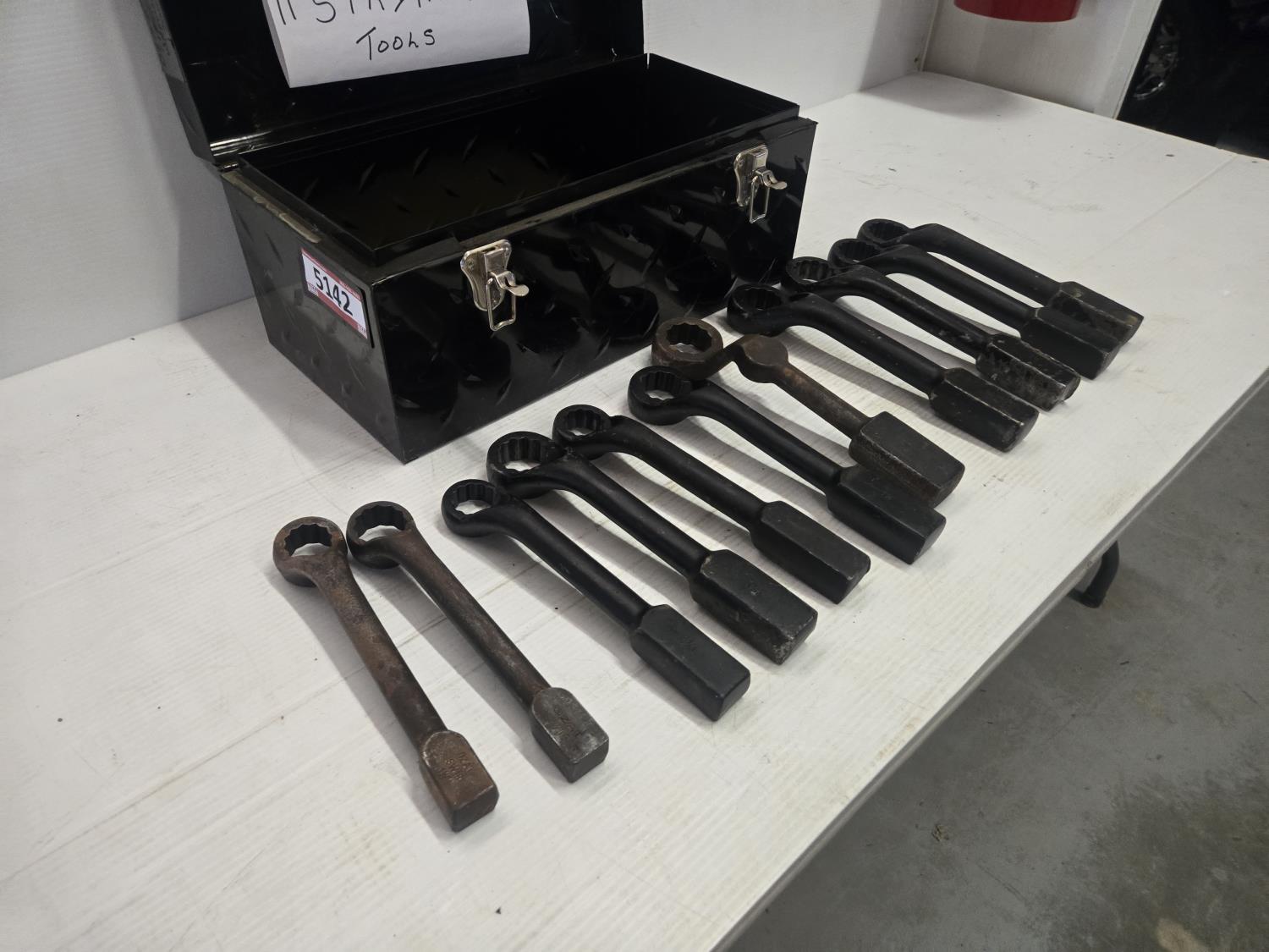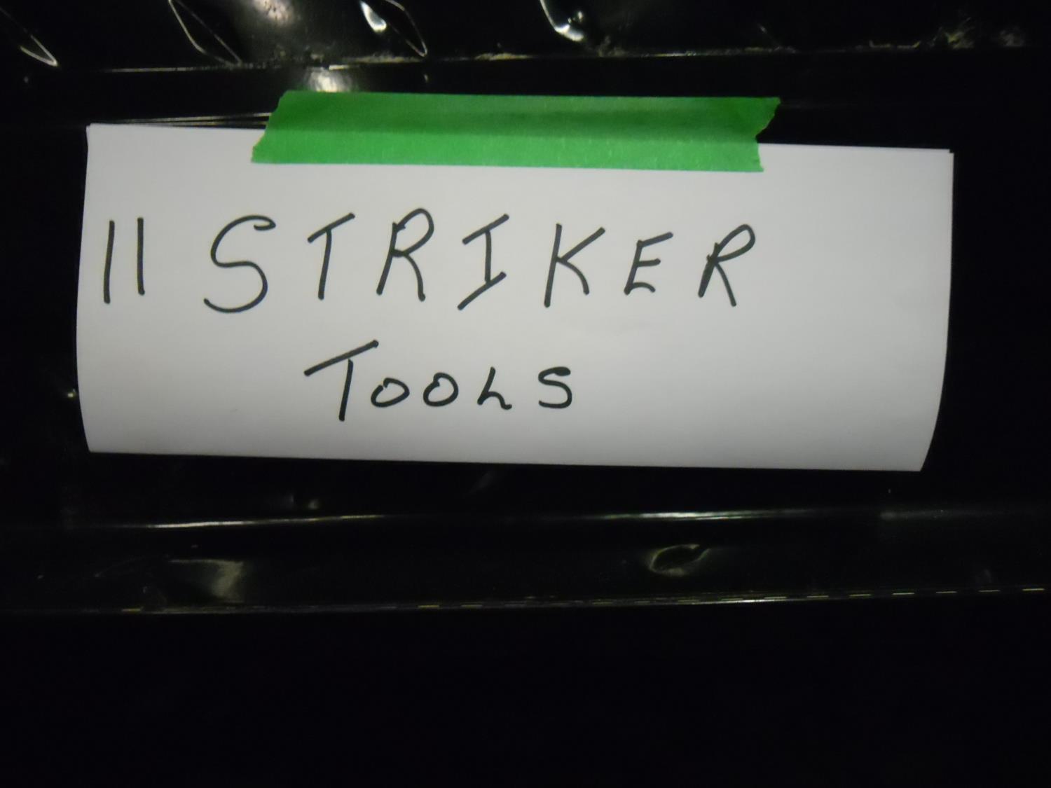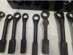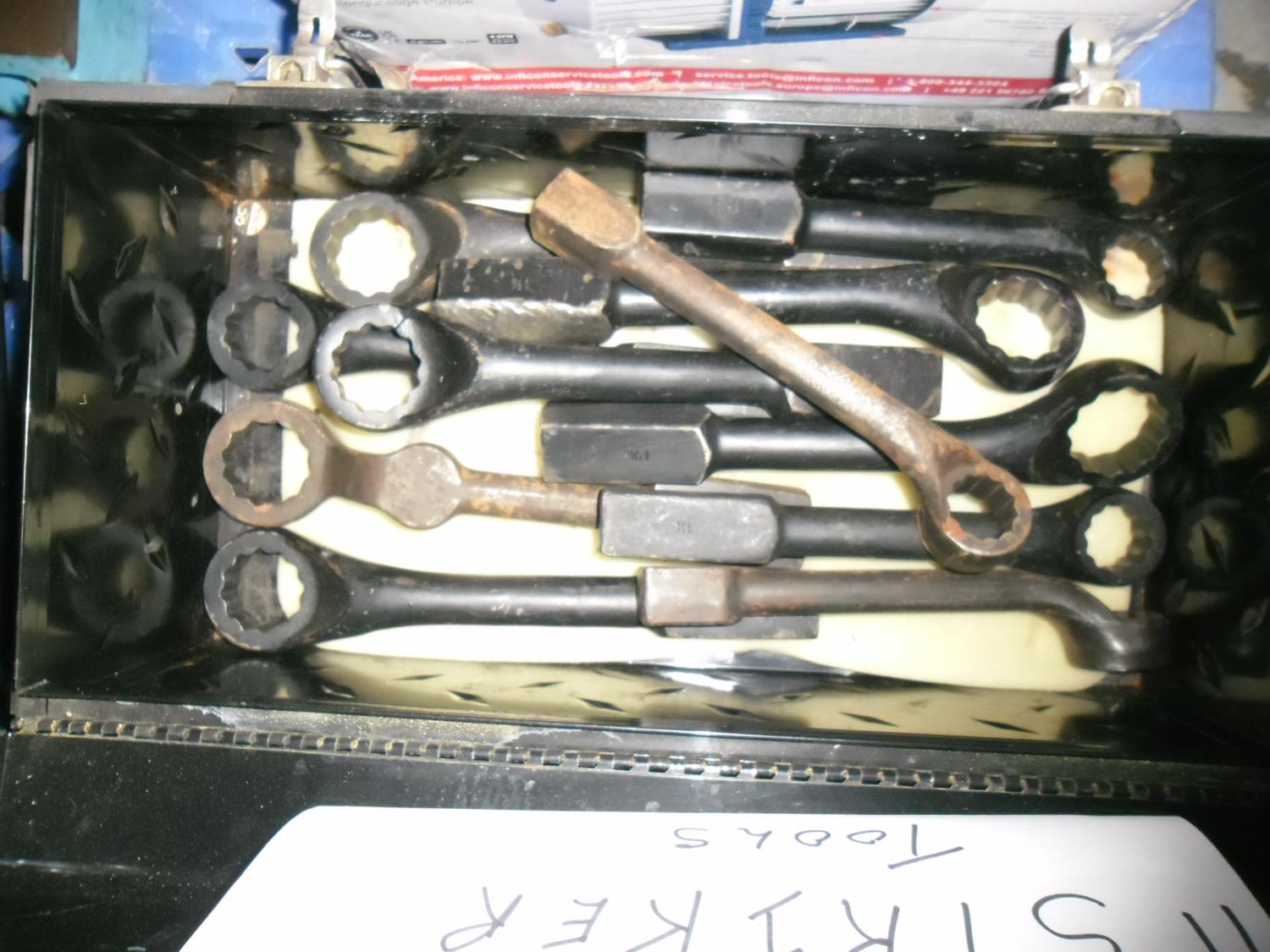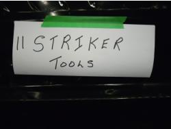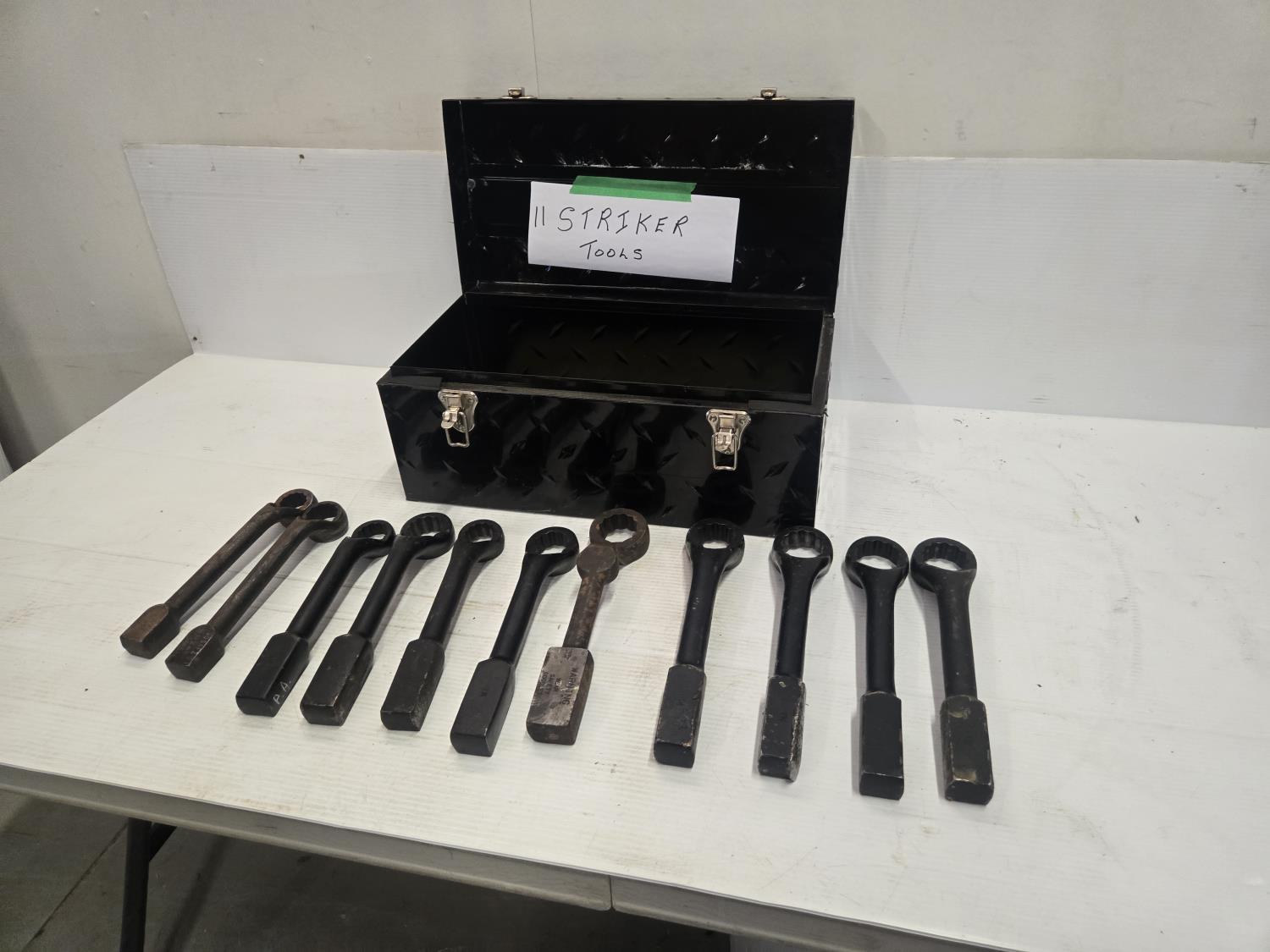 11 striker, comes with toolbox, sizes, 1-1/8 inch, 1-3/16 inch, 1-1/4 inch, 1-3/8 inch, 1-7/16 inch, 1-1/2 inch, 1-9/16 inch, 1-5/8 inch (2), 1-11/16 inch, 1-15/16 inch