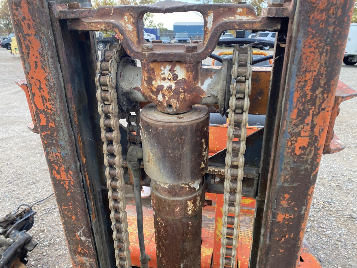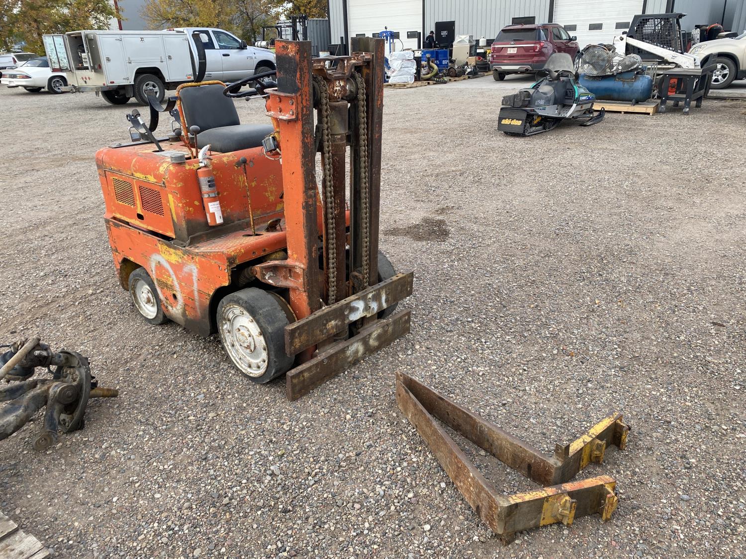 hydro transmission, 5 ft 4 inch lowered mast height, 2 mast stages, 34 inch pallet forks