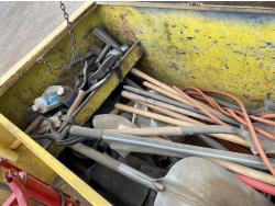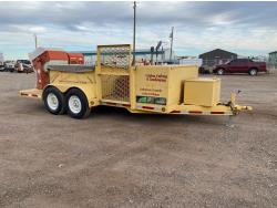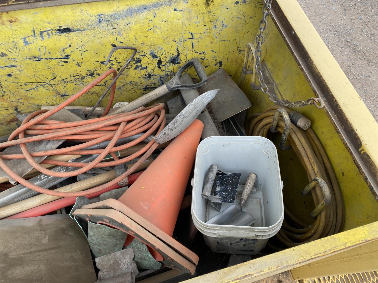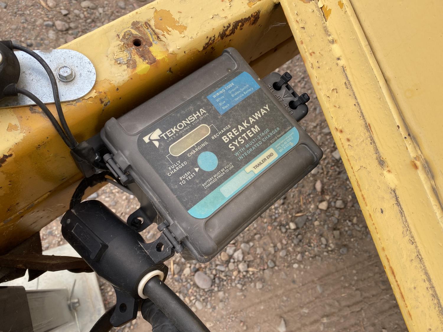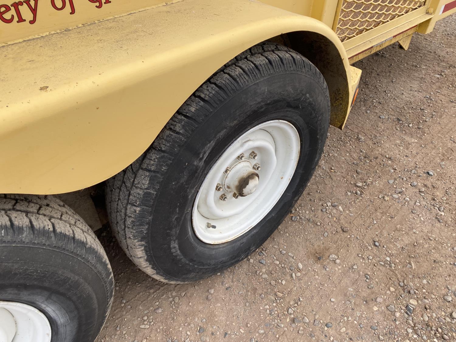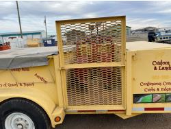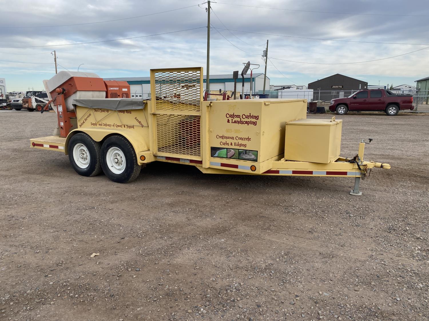 steel deck, electric brakes, spring suspension, ball hitch, tool / storage box, Whiteman 90P cement mixer, includes (2) curbing machines, misc tools, sand, 235/85R16 tires
