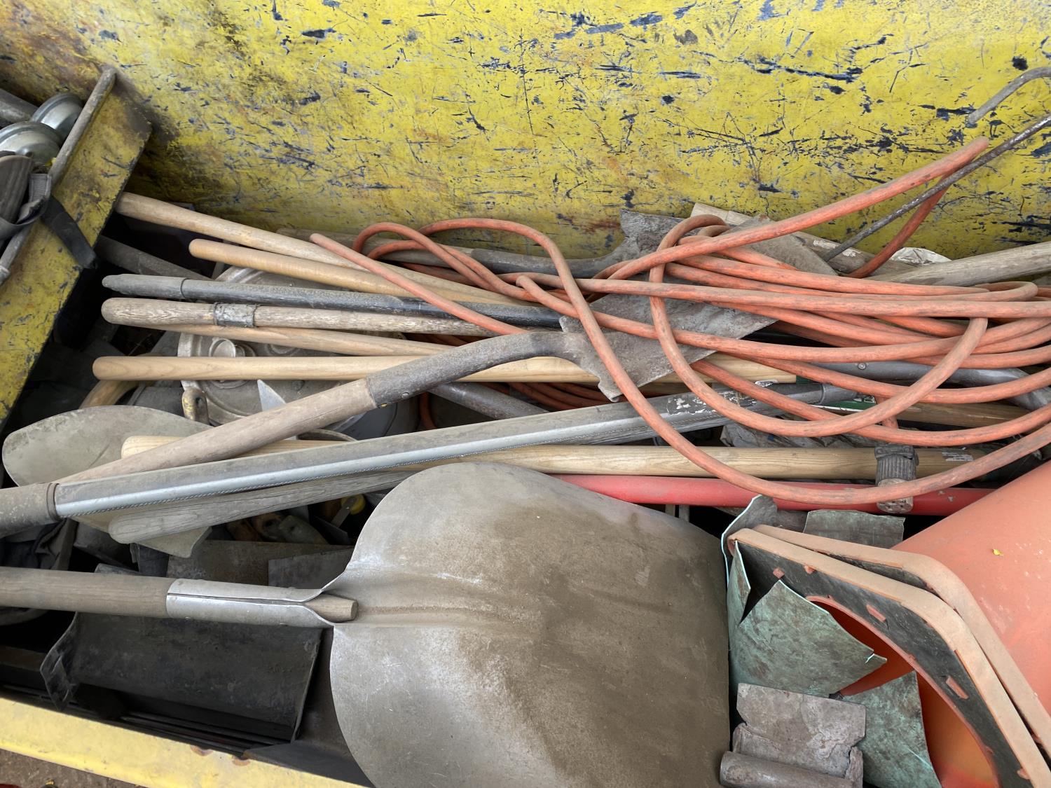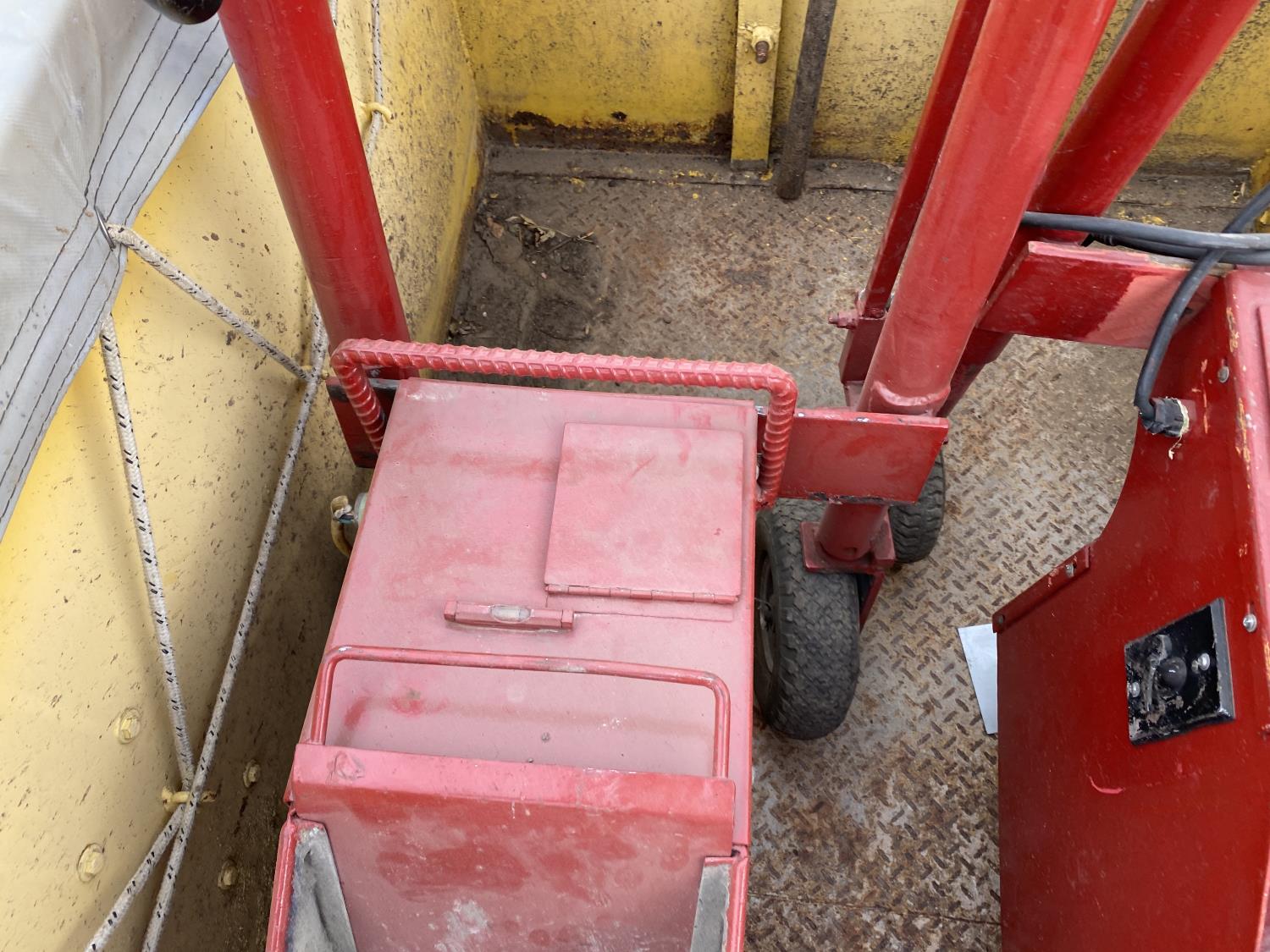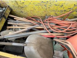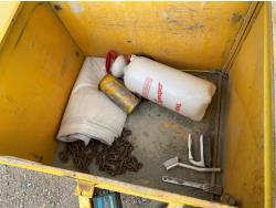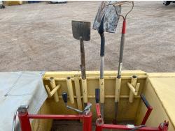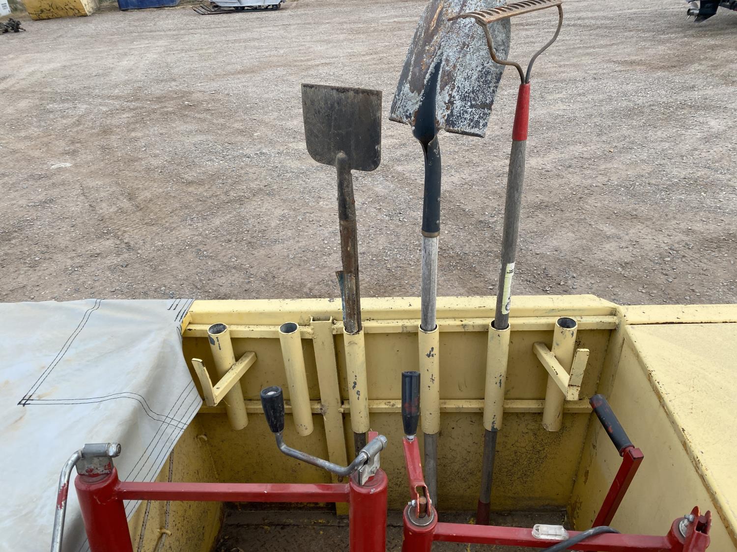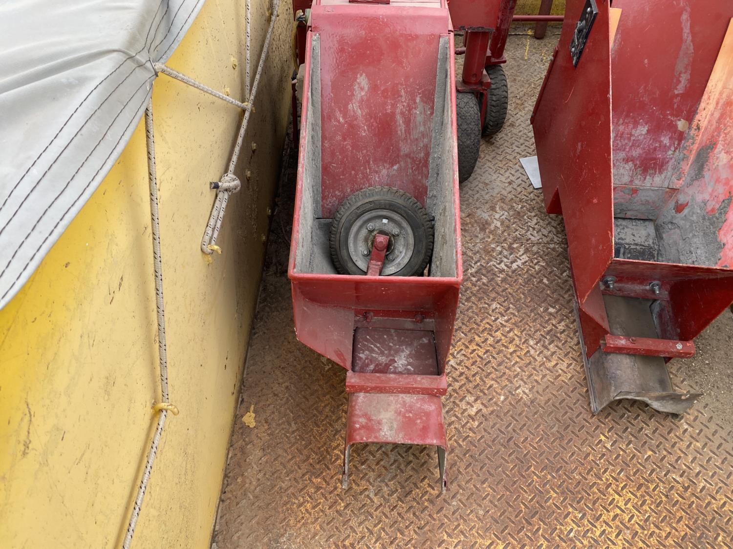 steel deck, electric brakes, spring suspension, ball hitch, tool / storage box, Whiteman 90P cement mixer, includes (2) curbing machines, misc tools, sand, 235/85R16 tires