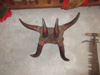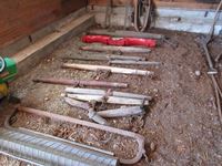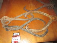 chicken feeder, stanchion, ox neck yokes, double tree, bale lifter, collar & hames, etc