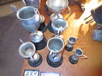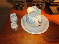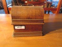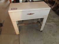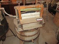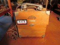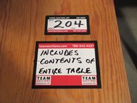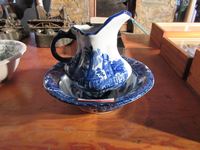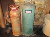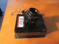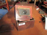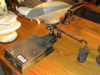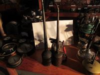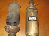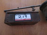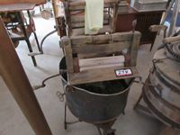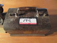 wood & leather lunch box, cast pots, asbestos shingle cutter, portable Hibachi, coal pail, lamps, assorted BC license plates, dishes, wine rack, spittoon and miscellaneous items