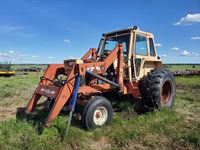 Ezee-On 2130 loader, quick attach bucket, quick attach shop built forks, duals, 12 speed powershift, cab, heat, air, 540/1000 pto, 2 hyd outlets, 50 % 14L-16.1 front rubber, 60 % 20.8-38 rear rubber/duals, new water pump, new starter, complete service filters & oils, 6445 hours