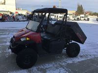 A/T, heated cab, front LED light bar, 32 in. roof LED light bar, 6 in. LED backup light, Pro HD 6000 lb front winch w. rapid rope recovery, Polaris HD 4500 lb removable rear winch, wireless winch remote, manual tilt box w. height extension, Camso UTV tracks w. Q/A kits, c/w unused tires w. rims, 3 mi showing